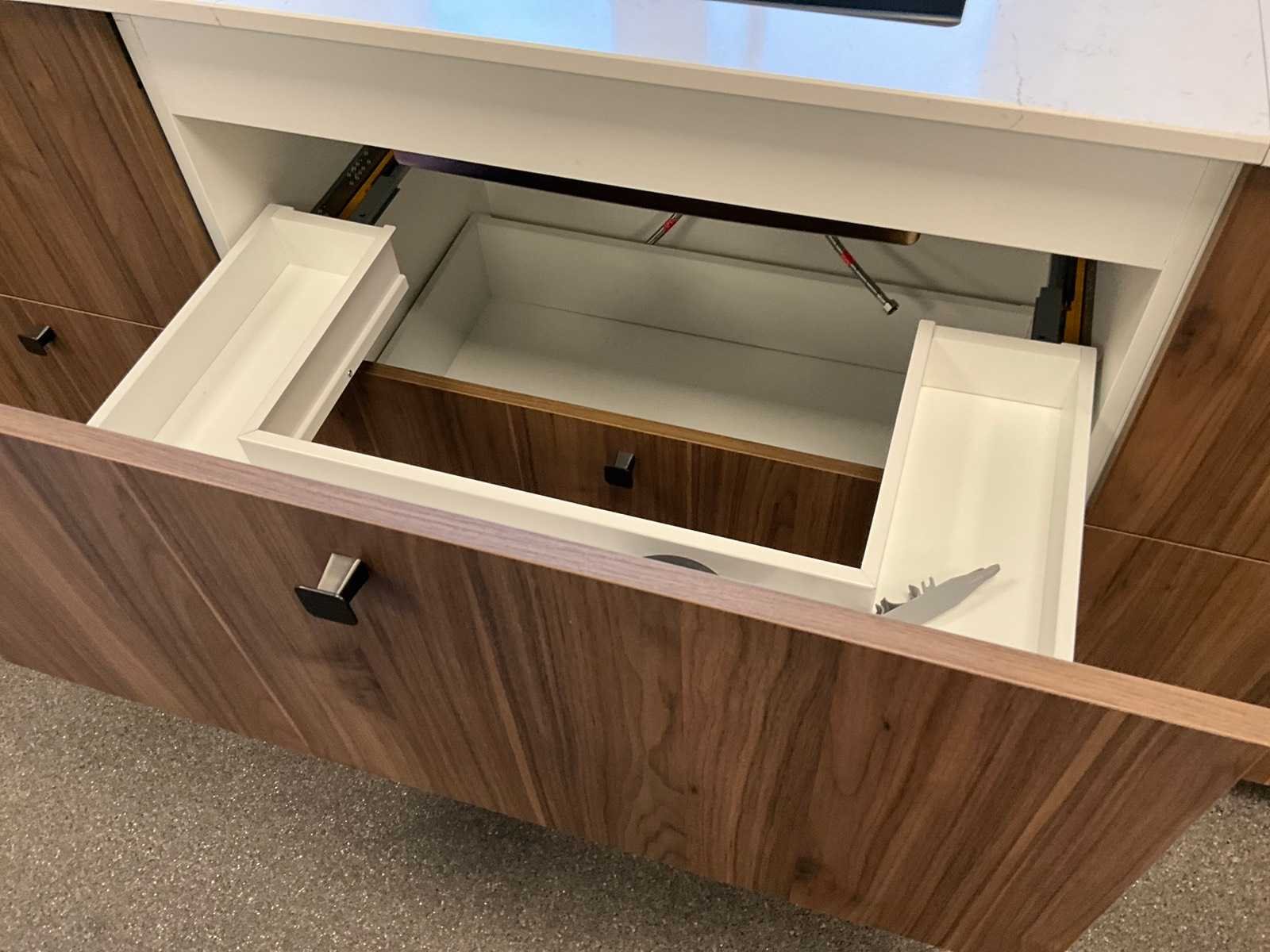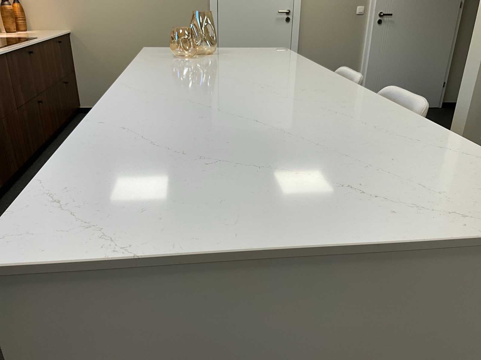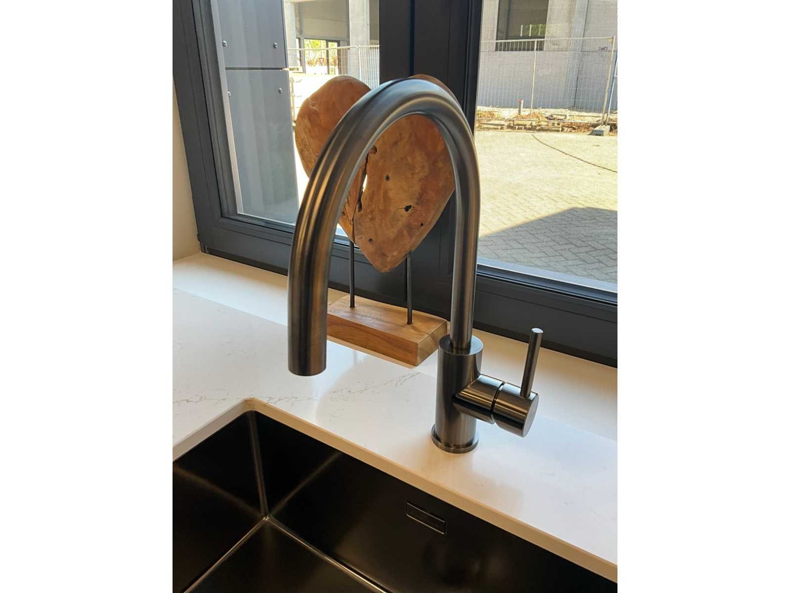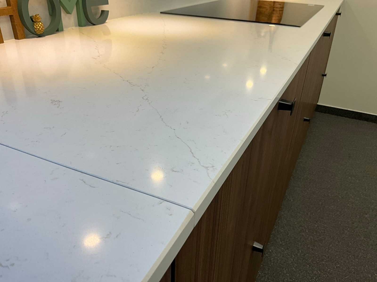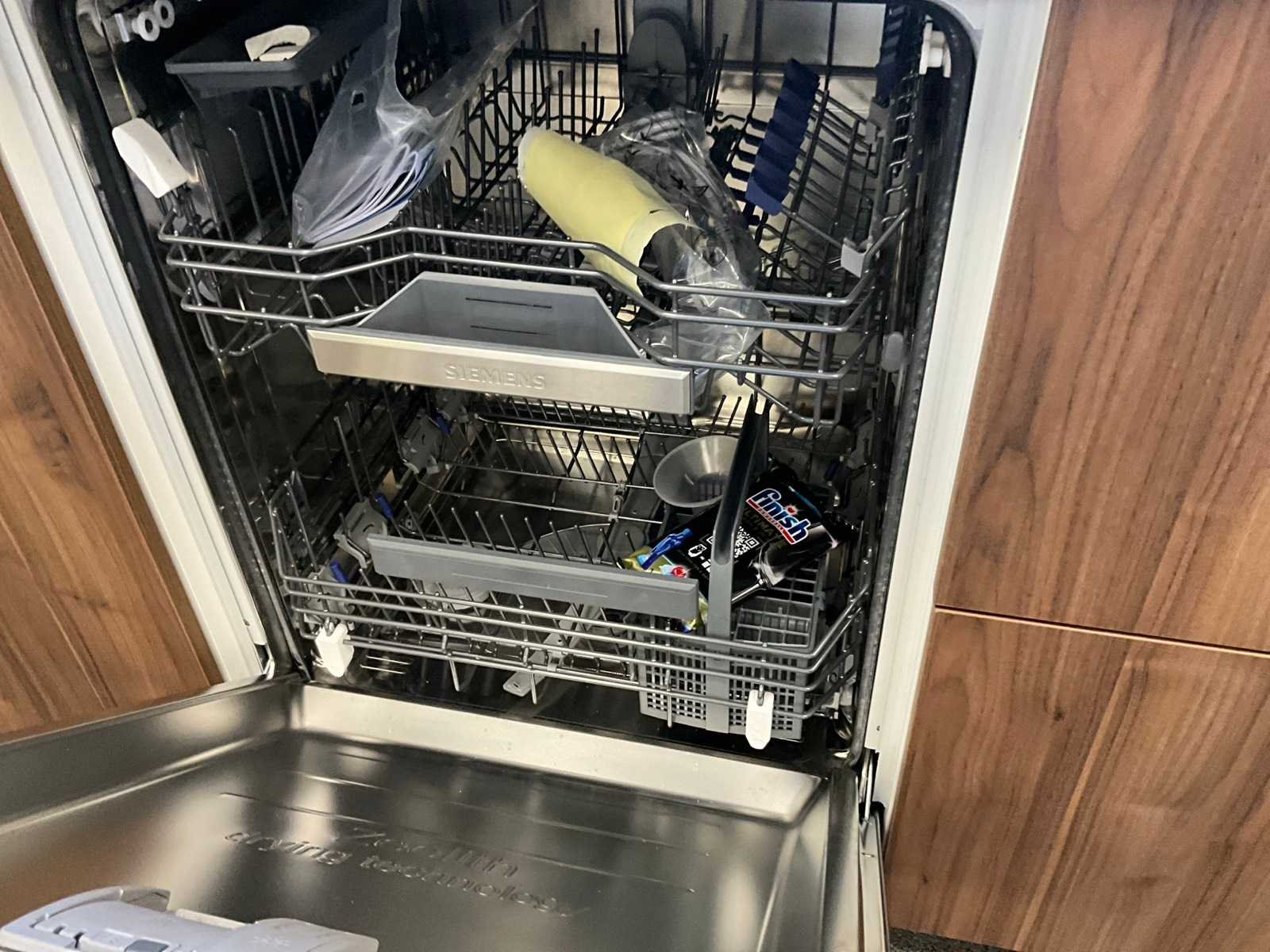 Meubelen : in houten kunststof notelaar uitvoering. Werkbladen composiet silestone Hybriq Mineral surfaces, 20 mm dik, met achterwand aan kookplaat. Inclusief diverse toestellen waaronder spoelbak Reginox 50x40x20 cm, Kraan Reginox, Inductie kookplaat Siemens, inbouw dampkap Frecan, inbouw koelkast AEG SFB612F1AF, inbouw vaatwasser SIemens SX75Z801BE en 2x oven Samsung waaronder NQ50T8939BK en NQ50T8539BK. Enkel bovenvermelde nieuwe toestellen zijn inbegrepen in deze keukenopstelling. Wel compleet met 2 zitstoelen/krukken Bronx*71 en UITGEZONDERD de decoratie alsook inhoud kasten ! Afmetingen keukeneiland circa 265 x 106 x 93 cm hoog met 8 deuren; afmetingen extra hangkast circa 245 x 40 x 92 cm hoog met 6 deuren, En wandopstelling totaal : circa 600 x 65 x 245 cm hoog, werkblad 93 cm hoog. Nee Type keukenopstelling: Keukeneiland en wandkast opstelling Lengte: 600cm Breedte: 65cm Hoogte: 245cm Kraan: Reginox Gootsteen: Reginox Werkblad hoogte: 93cm Magnetron: Samsung Fornuis: Siemens Koelkast: AEG Softclose: true Oven: Samsung Afzuigkap: Frecan Vaatwasser: Siemens Lengte kookeiland: 265cm Breedte kookeiland: 106cm Hoogte kookeiland: 93cm