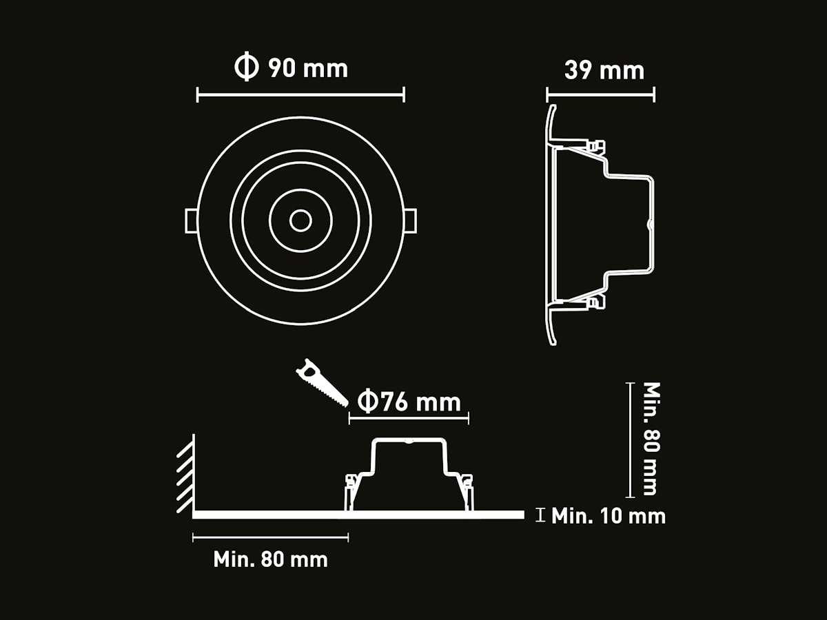 Lichtstroom 365 lumen, lichtkleur daglight 6000K, stralingshoek 38°- product kleur mat wit, rond armatuur kantelbaar, afm. ø 90 x 39 mm, materiaal PC en kunstof, bevestigingsset niet inclusief, inbouwdiameter ø76 mm, levensduur 15.000 uren, voltage 220-240V, SKU 1157 No Merk: LAMPINNO Product type: Binnen Kleur: Wit Lengte: 4.2 Breedte: 9 Materiaal: PC