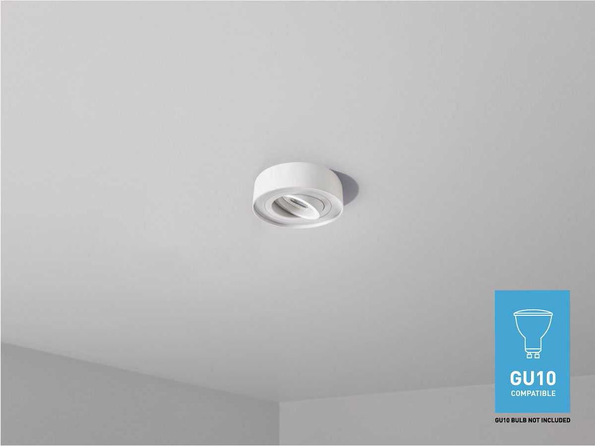 Afdichting IP20, product kleur zand wit, afm. Ø 96 x 30mm, inbouwdiameter ø 75mm, materiaal aluminium, fitting GU10, inclusief keramiek lamphouder, lichtbron bulb niet inclusief, geschikt voor binnen, een bulb invoer, voltage 220-240V, SKU 00841 No Merk: LAMPINNO Product type: Binnen Verstelbaar: true Fitting: GU10 Kleur: Wit Lengte: 3cm Breedte: 9.6cm Materiaal: Aluminium