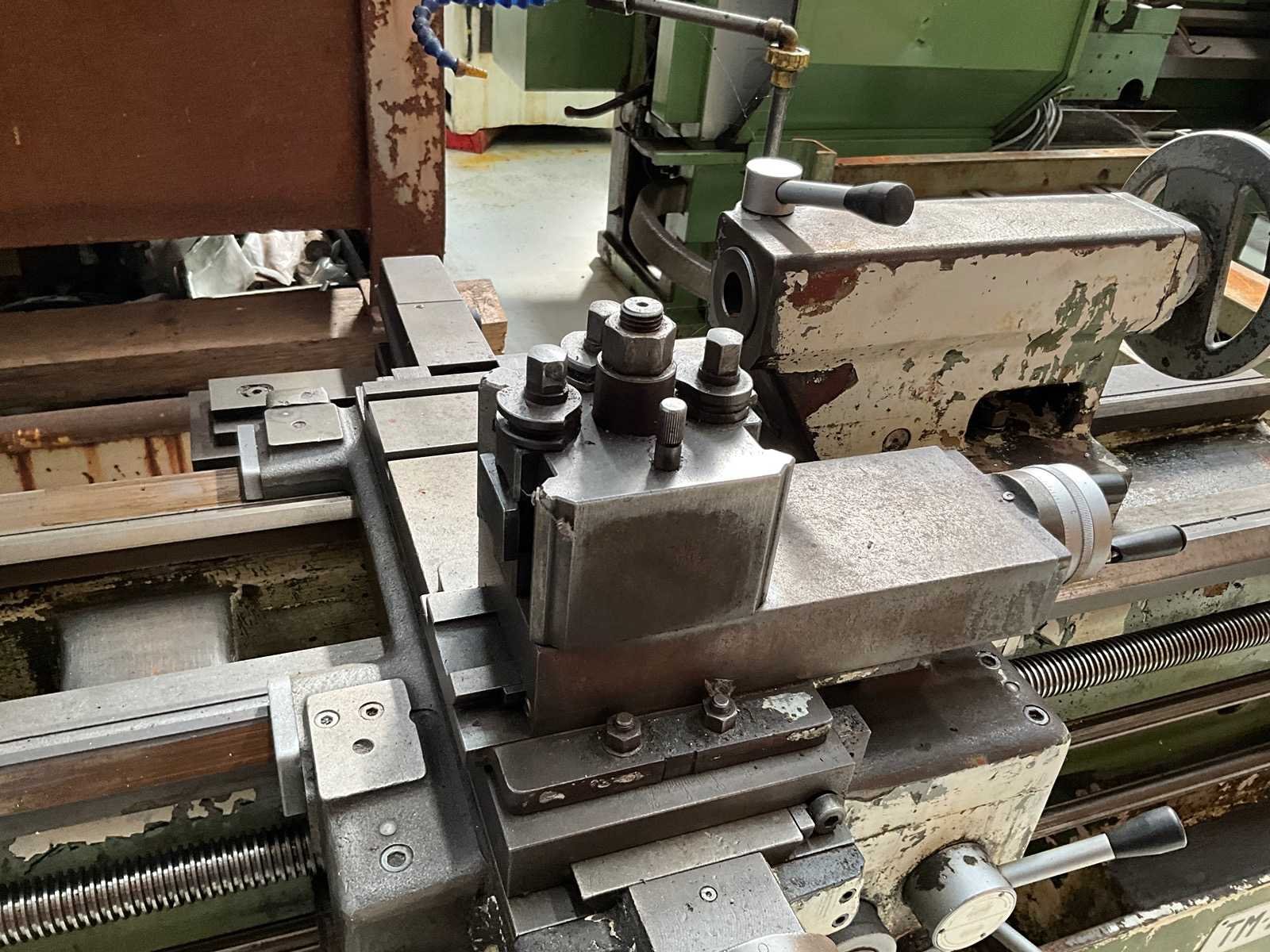 Make PBR Model TM200P Centre distance 1.250 mm Max. Swing over Bed Ø 400 mm Max. Swing over Cross-slide Ø 210 mm Max. Swing in Gap Ø 600 mm Spindle bore Ø 55 mm R.P.M. 33 – 1.500 (12x) kW 4 Volts 380 Cycles 50 Accessoiries: Taper turning attachment Quick change toolpost Coolant Nee Merk: PBR Type: TM200P Draailengte: 1250mm Draai: 400mm Holle spil Ø: 55mm Aantal snelheden: 12 Snelheid van n =: 33rpm Snelheid tot n =: 1500rpm Aansluiting: 380V GS Code: 84581900 Leveringsvoorwaarden: Geladen op vrachtwagen