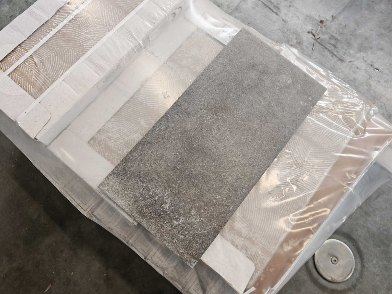 No Merk: Grandeur Kleur: Antraciet Afwerking: Mat R9 Lengte: 300mm Breedte: 600mm Dikte: 9mm Materiaal: Keramiek Type: Vloertegel Model: Semento Dakse436 Aantal m² per verpakking: 1.08m² Aantal pakken: 48 Totaal oppervlakte: 51.84m² Totaal gewicht: 1040kg