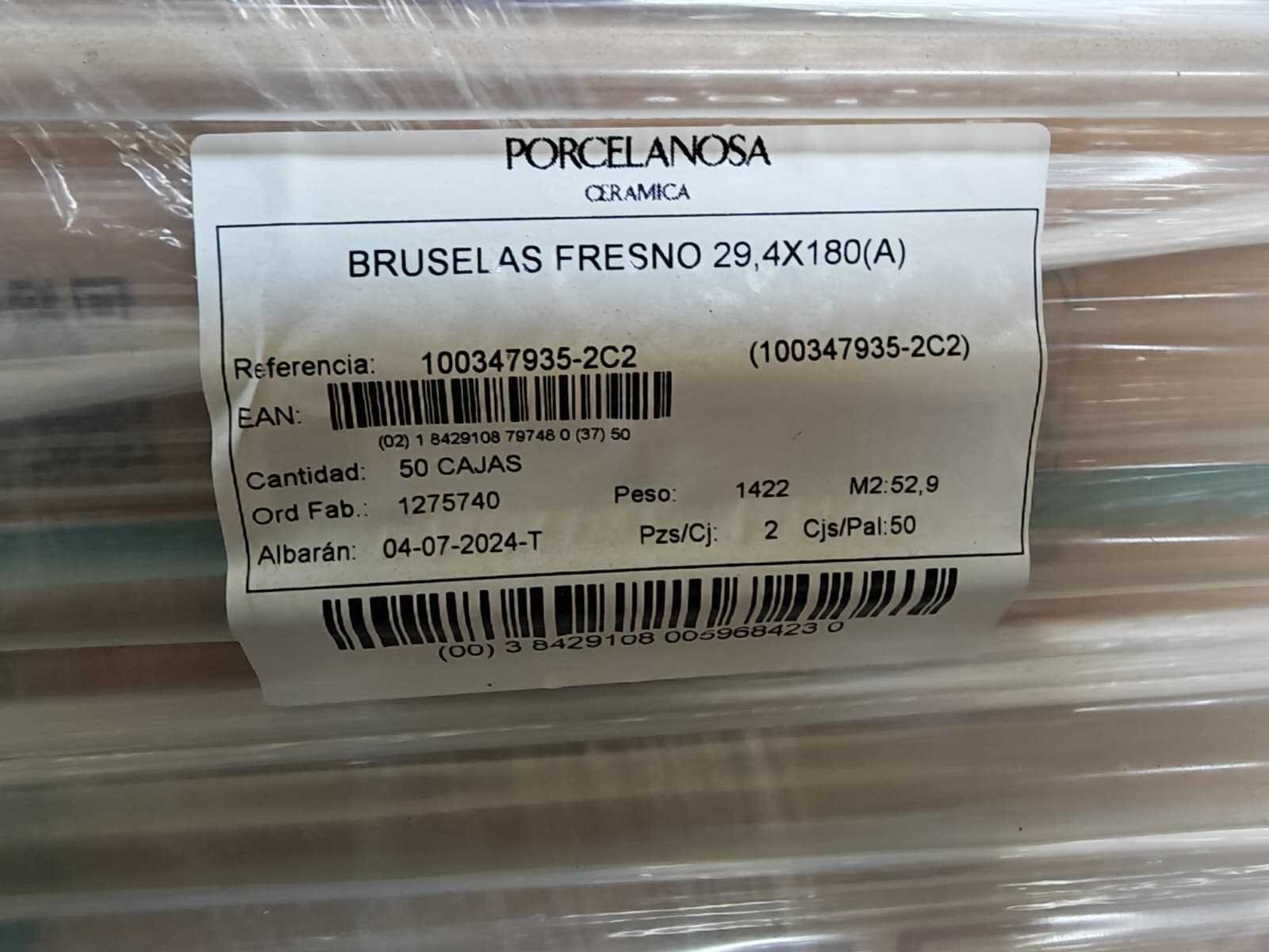 Nee Merk: Porcelanosa Kleur: Fresno Afwerking: Mat Lengte: 294mm Breedte: 1800mm Dikte: 12mm Materiaal: Keramiek Type: Vloertegel Model: Bruselas 100347935 Aantal m² per verpakking: 1.06m² Aantal pakken: 50 Totaal oppervlakte: 52.91m² Totaal gewicht: 1100kg