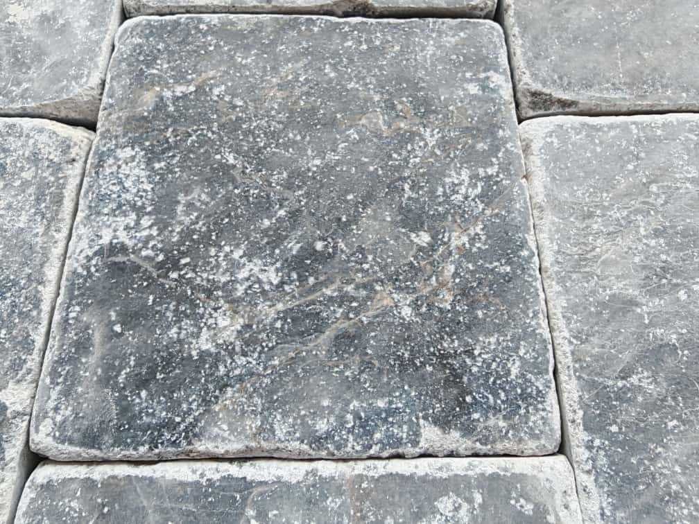 5 kratten Nee Merk: Natuursteen Kleur: Blauw Afwerking: Gezoet en Getrommeld Lengte: 120mm Breedte: 120mm Dikte: 50mm Materiaal: Hardsteen Type: Vloertegel Aantal m² per verpakking: 10,08m² Aantal pakken: 5 Totaal oppervlakte: 50.4m² Totaal gewicht: 7500kg