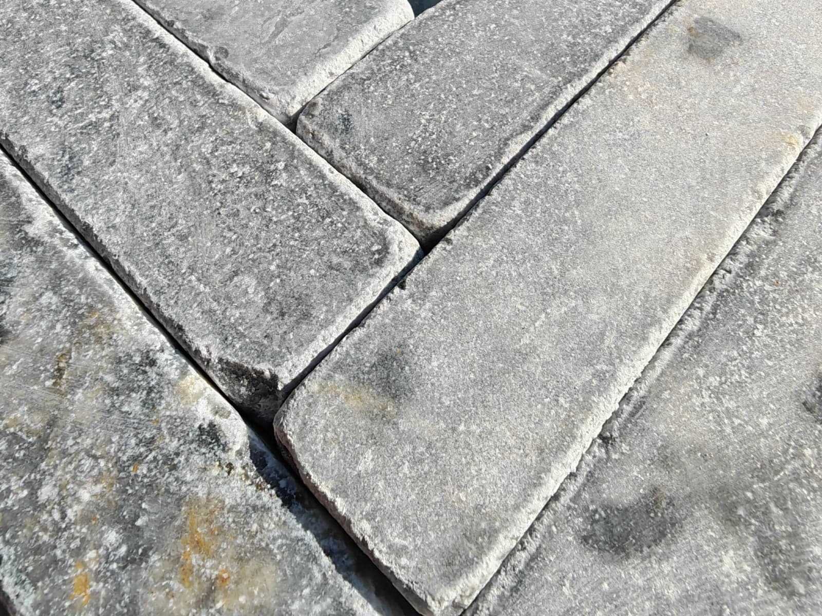 6 kratten No Merk: Natuursteen Kleur: Blauw Afwerking: Gezoet en Getrommeld Lengte: 50mm Breedte: 200mm Dikte: 50mm Materiaal: Hardsteen Type: Vloertegel Aantal m² per verpakking: 9.6m² Aantal pakken: 6 Totaal oppervlakte: 57.6m² Totaal gewicht: 6500kg