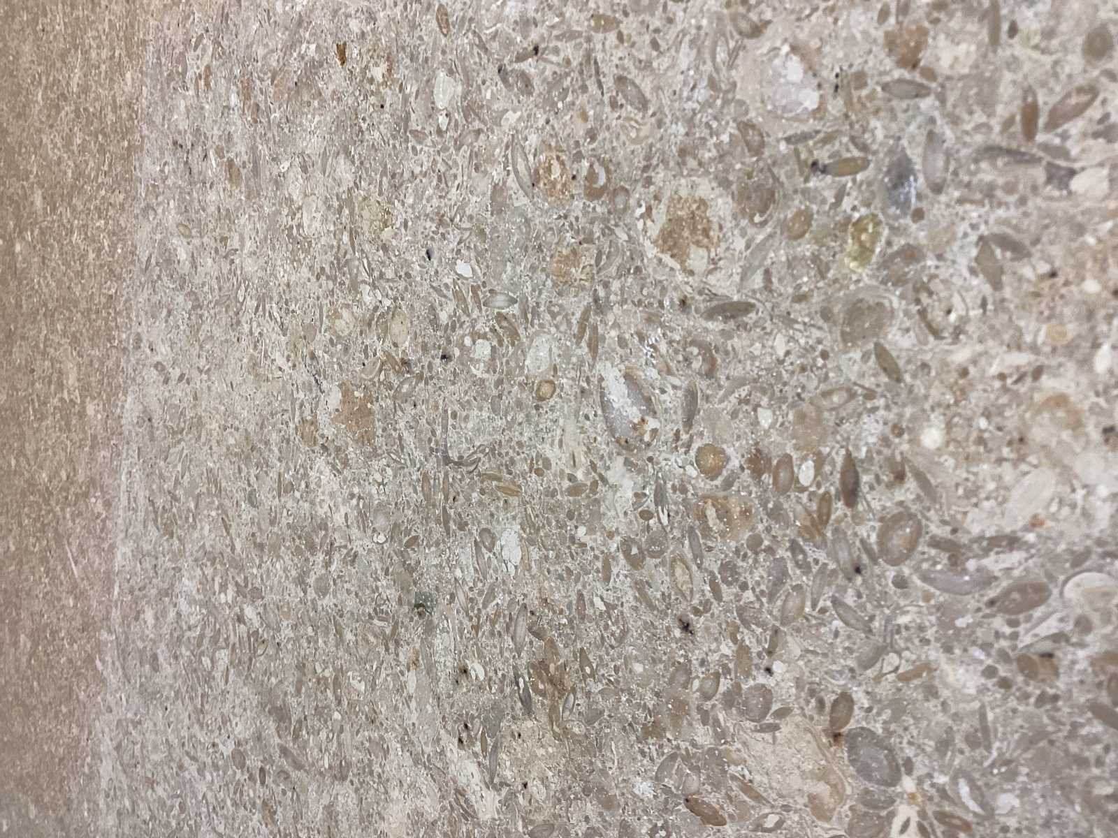 No Merk: Natuursteen Kleur: Beige Afwerking: Mat Getrommeld Lengte: 406mm Breedte: 610mm Dikte: 12mm Materiaal: Limestone Type: Vloertegel Model: Seashell Aantal m² per verpakking: 1m² Aantal pakken: 21 Totaal oppervlakte: 21.05m² Totaal gewicht: 550kg