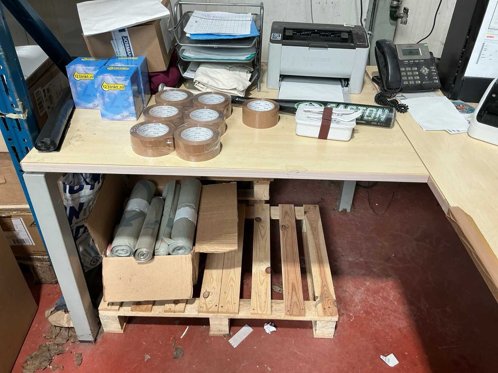 Bestaande uit: hoekbureau 200x175x72cm, desktop Chantal A320-H, bureaustoel, 2 diverse monitors en toebehoren, labelprinter Brother QL-1100C en printer Samsung Xpress M2022W, resterende inhoud bureau niet inclusief Nee