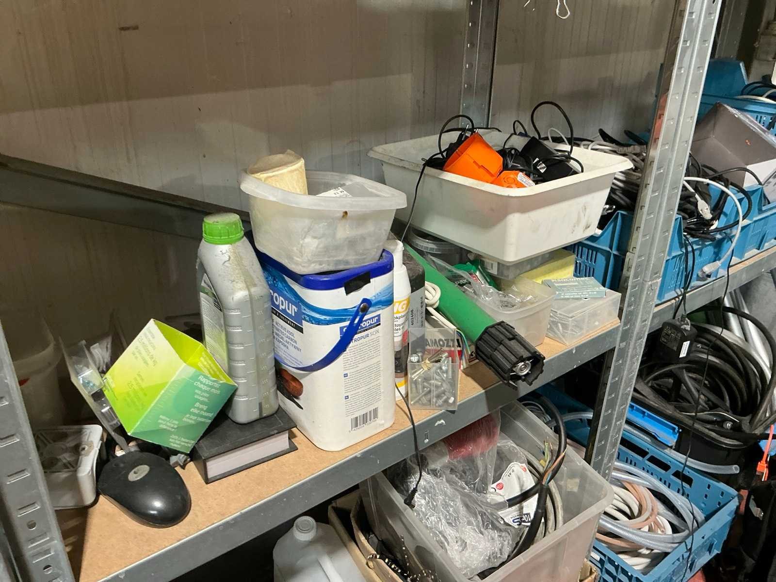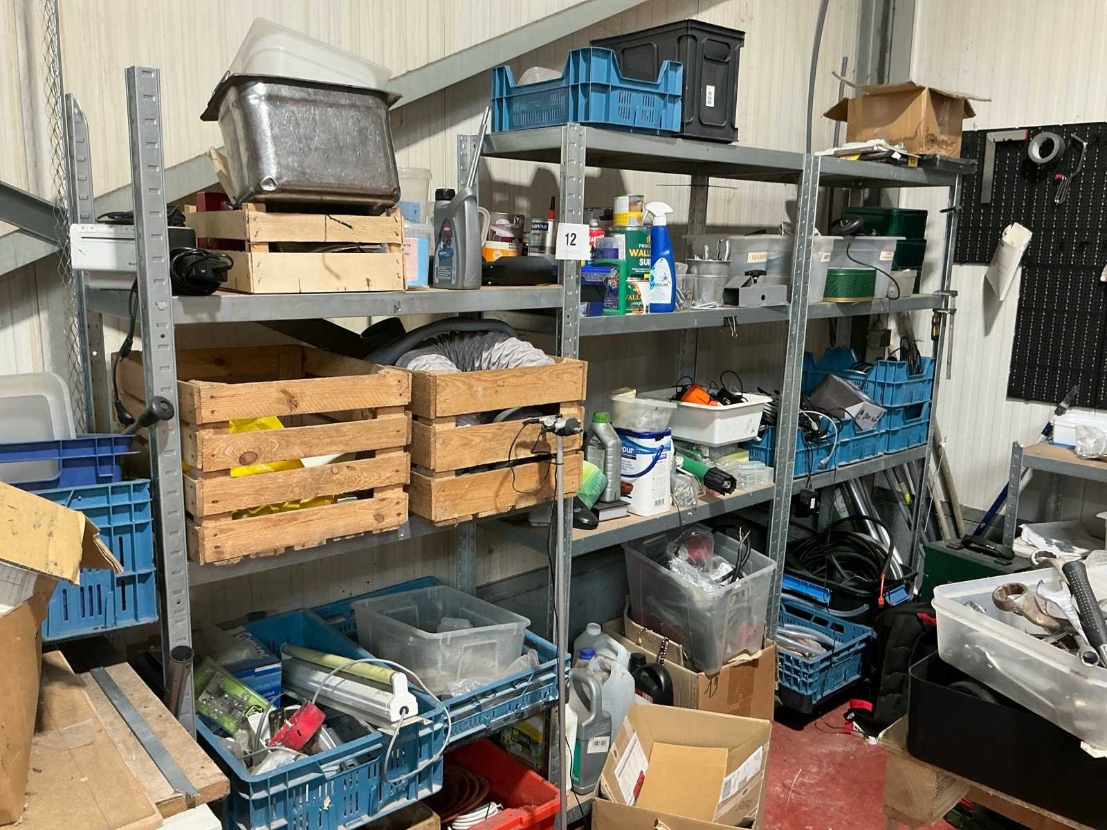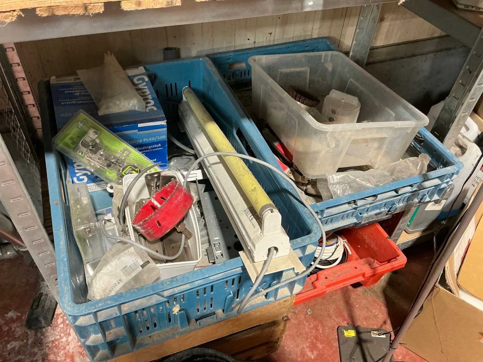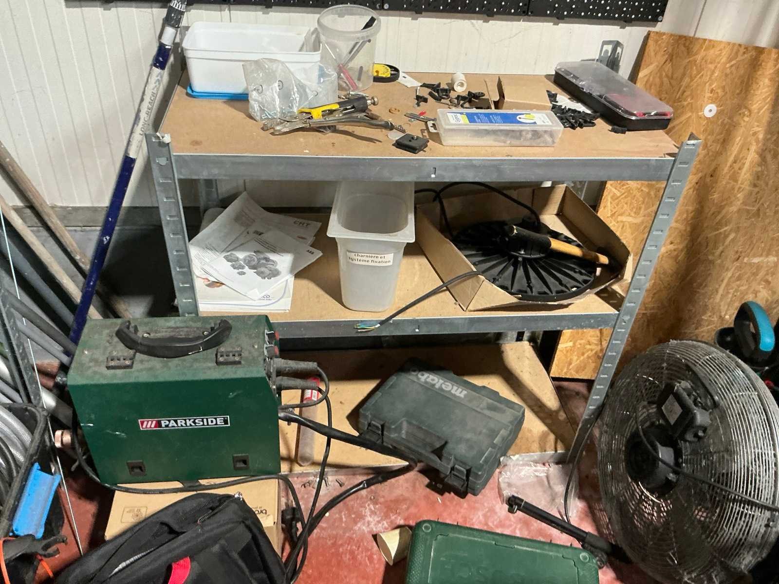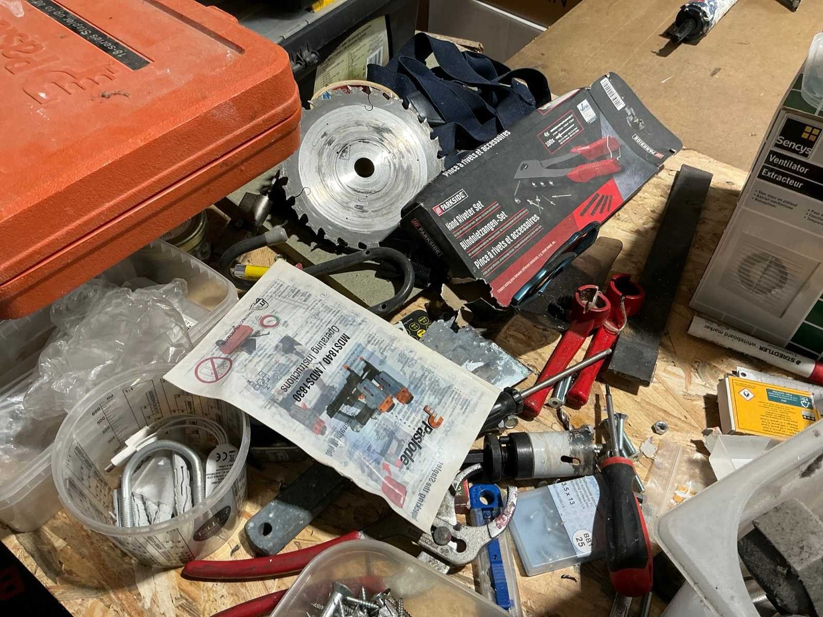 Inhoudende diverse bekabeling, enige verf en lijmtoebehoren, enig deurbeslag, lasapparaat Parkside, 2 diverse boorschroefmachines Bosch waaronder PSB750-2RE en PSB 1000-2 RE, Waterslanghaspel, drukspuit, pneumatisch nietjespistool Paslode, enig handgereedschap, pneumatische slagmoersleutel Metabo Nee Diepte: 40cm Breedte: 90 Hoogte: 180cm