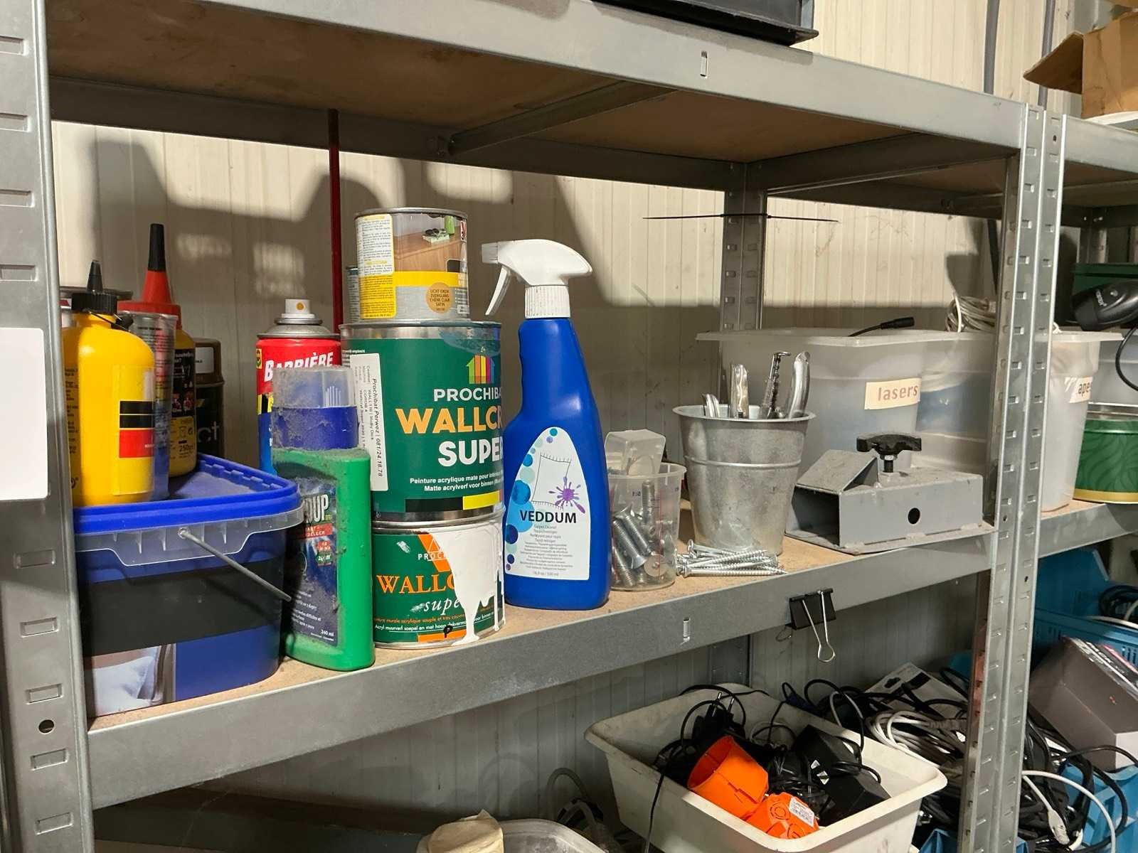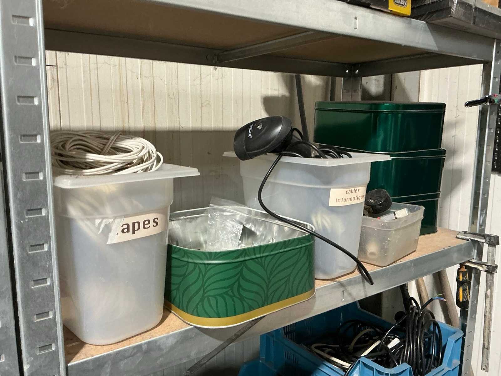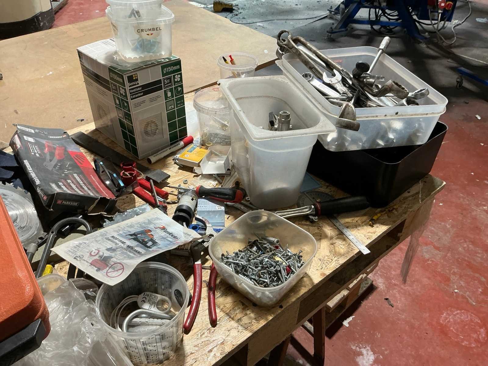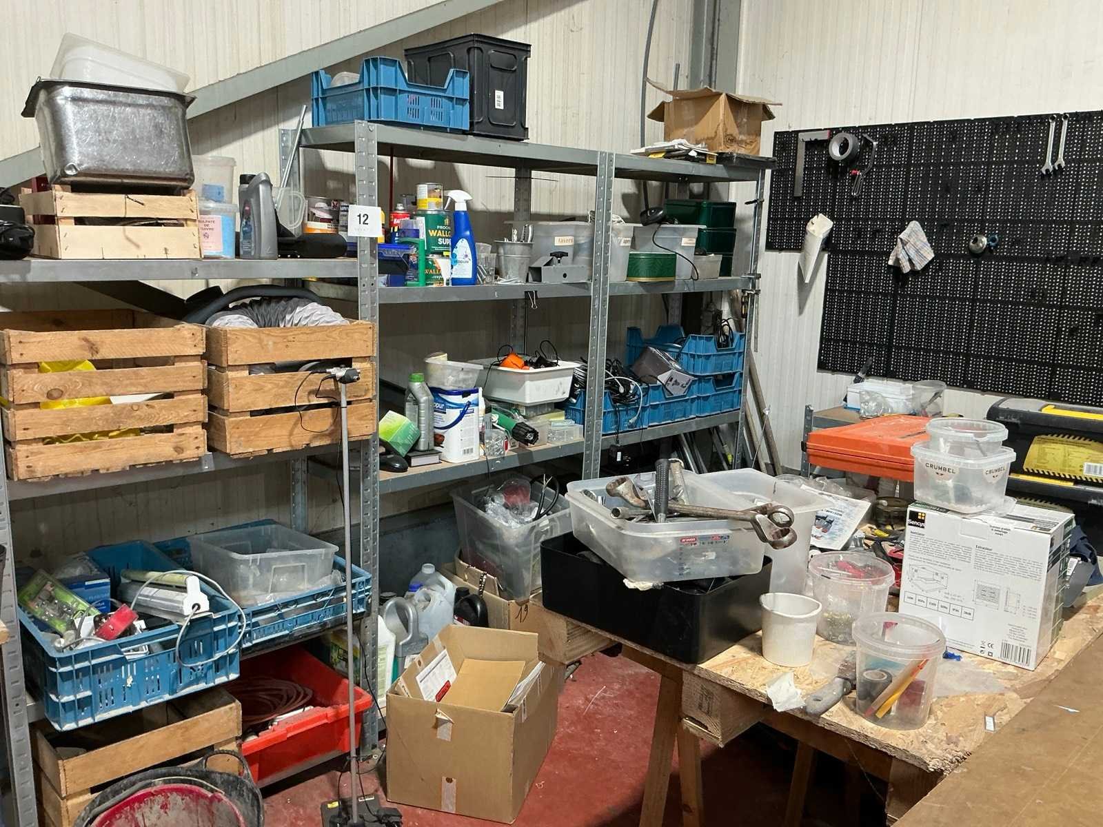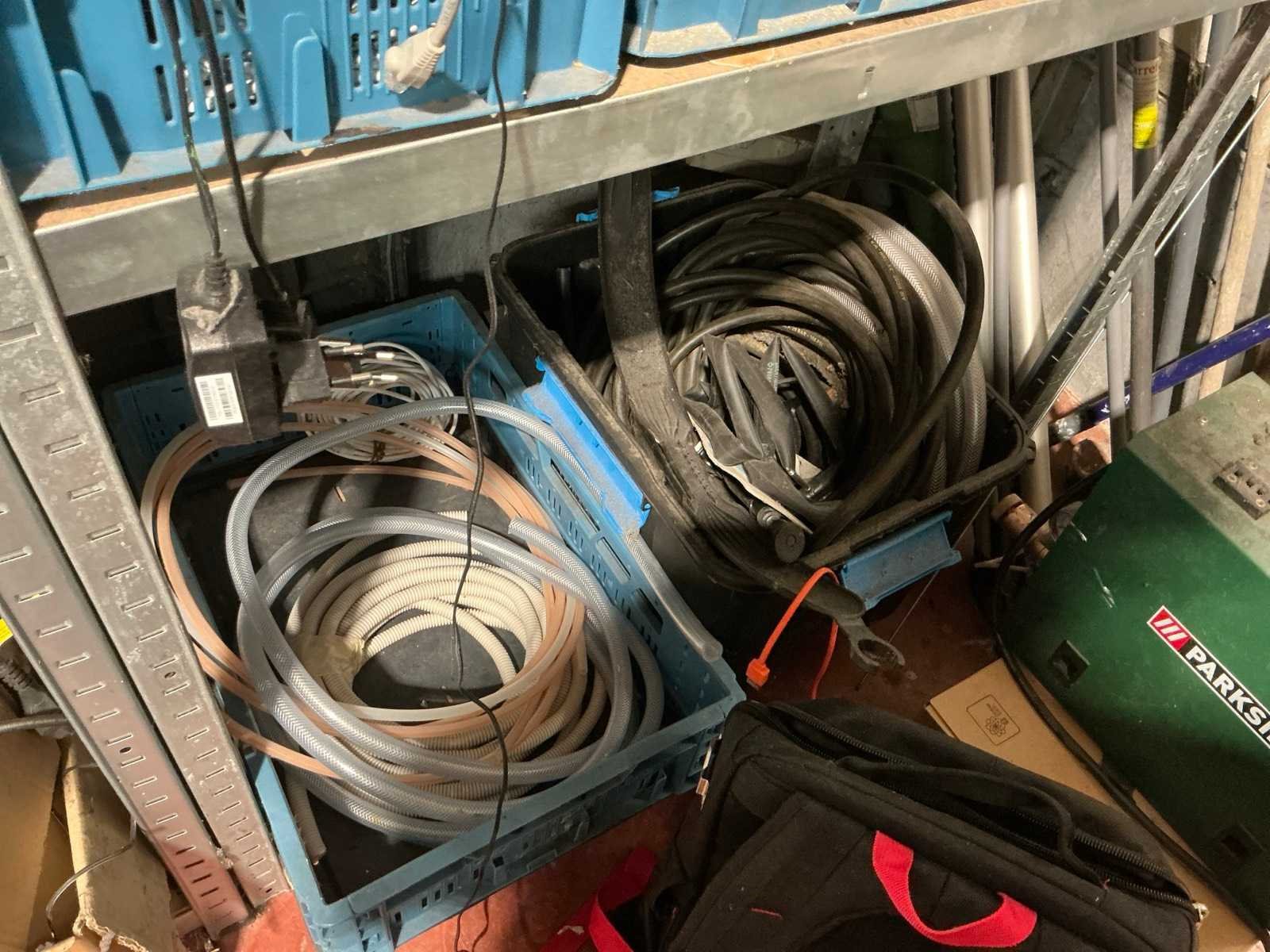 Inhoudende diverse bekabeling, enige verf en lijmtoebehoren, enig deurbeslag, lasapparaat Parkside, 2 diverse boorschroefmachines Bosch waaronder PSB750-2RE en PSB 1000-2 RE, Waterslanghaspel, drukspuit, pneumatisch nietjespistool Paslode, enig handgereedschap, pneumatische slagmoersleutel Metabo Nee Diepte: 40cm Breedte: 90 Hoogte: 180cm