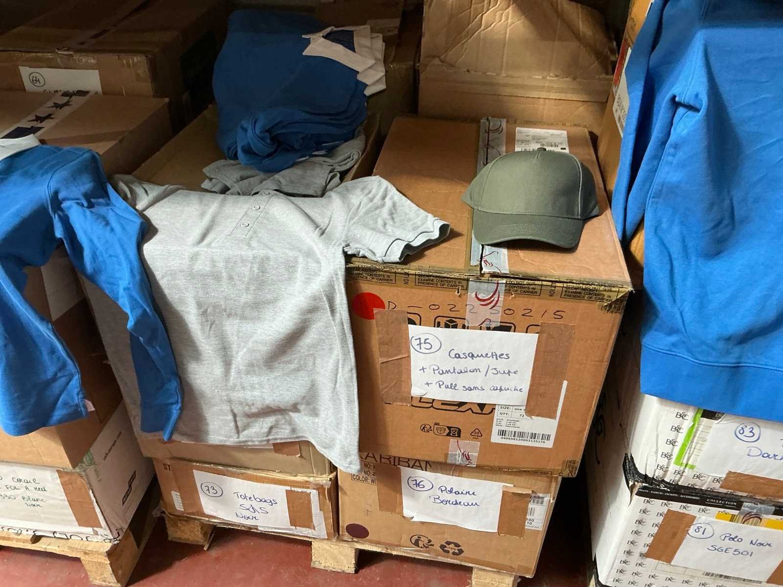 Waaronder Payper, Kariban, Yupoong, B&C,.., waaronder petten, polo’s, shirts, pulls, T-shirts, zweetbanden,…, allen in diverse maten en kleuren Nee