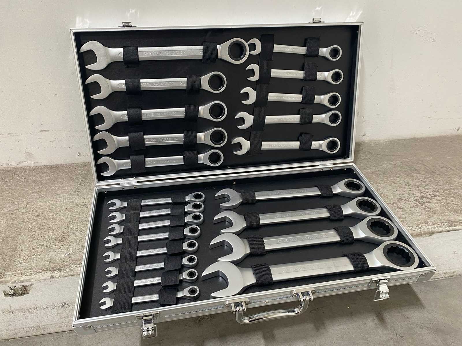 <li><b>22-delige set</b></li> <li><b>Merk:</b> Stahlgruppe</li> <li><b>Sleutel maten:</b> 6, 7, 8, 9, 10, 11, 12, 13, 14, 15, 16, 17, 18, 19, 20, 21, 22, 23, 24, 27, 30 en 32 mm</li> <li><b>Koffer:</b> in robuuste aluminium koffer</li> <li><b>Staat:</b> ongebruikt, in de originele verpakking</li> Nee Merk: Stahlgruppe