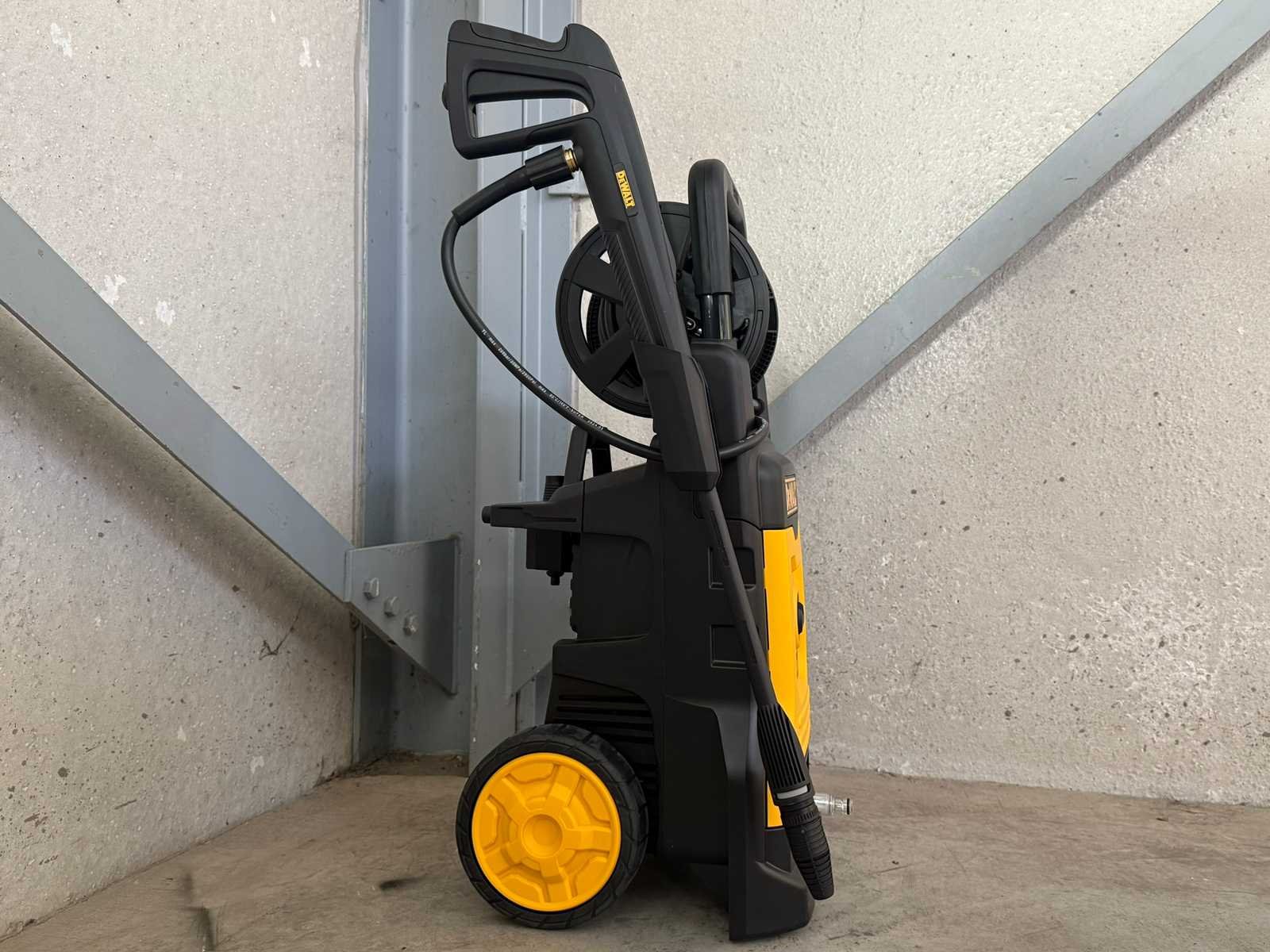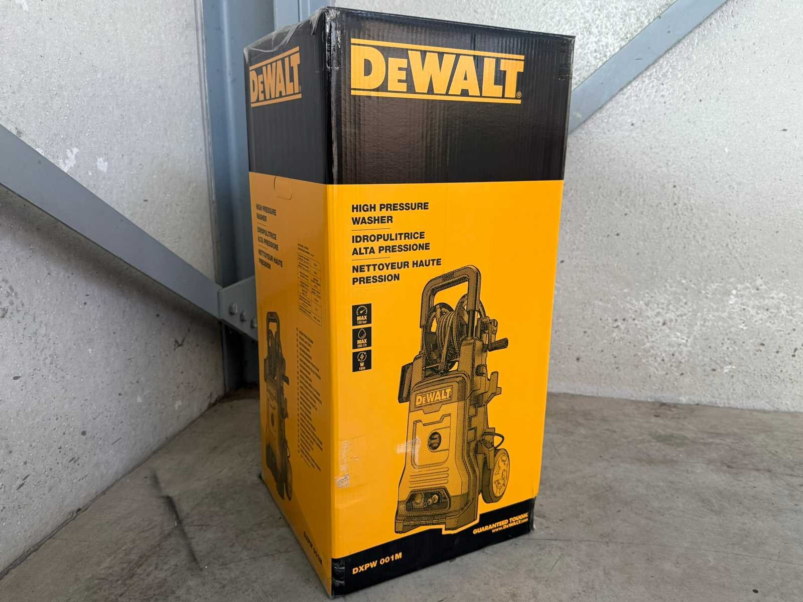 <ul> <li><strong>hogedrukreiniger</strong></li> <li><strong>merk:</strong> DeWalt</li> <li><strong>model:</strong> DXPW001M</li> <li><strong>type:</strong> koudwater hogedrukreiniger</li> <li><strong>werkdruk:</strong> 130 bar</li> <li><strong>wateropbrengst:</strong> 390 liter/uur (6,5 l/min)</li> <li><strong>motorvermogen:</strong> 1800 Watt (1,8 kW)</li> <li><strong>aansluiting:</strong> 230 Volt</li> <li><strong>pomp:</strong> HRM.A wobbleplate – aluminium pompkop met 3 RVS axiale zuigers</li> <li><strong>slang:</strong> 10 meter hogedrukslang met geïntegreerde haspel</li> <li><strong>lans:</strong> spuitlans (met lanshouder aan zijkant)</li> <li><strong>frame:</strong> gepoedercoat stalen frame</li> <li><strong>kappen:</strong> slagvaste BASF kunststof kappen</li> <li><strong>wielen:</strong> duurzame rubberen wielen Ø185 mm</li> <li><strong>accessoirehouder:</strong> stevig ingebouwde houder</li> <li><strong>total stop:</strong> ja</li> <li><strong>thermische beveiliging:</strong> ja</li> <li><strong>zelfaanzuigend:</strong> ja</li> <li><strong>max. watertemperatuur:</strong> 50 °C</li> <li><strong>gebruik:</strong> medium duty – geschikt voor wekelijks gebruik / 4 uur per dag</li> <li><strong>gewicht:</strong> 15,9 kg</li> <li><strong>staat:</strong> ongebruikt, in de originele verpakking</li> </ul> Nee Merk: DeWalt Type: DXPW001M