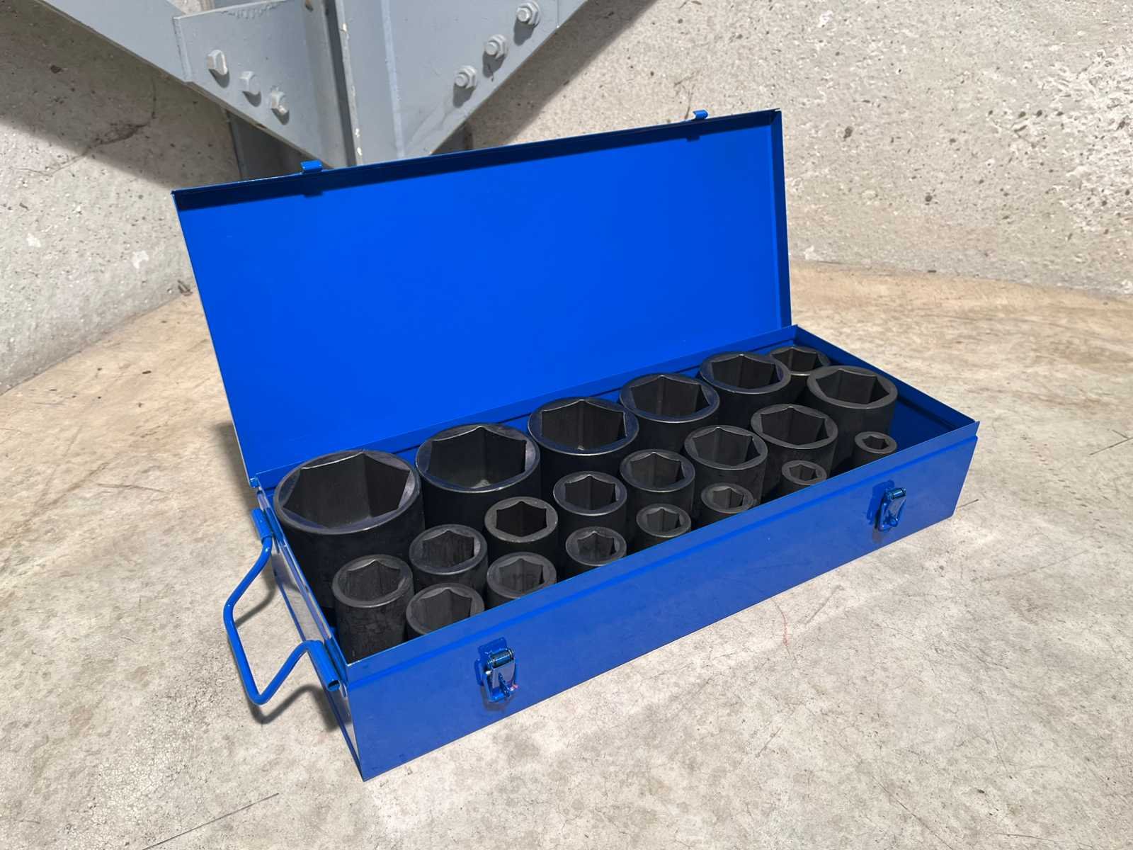 <li><b>21-delige set krachtdoppen</b></li> <li><b>materiaal:</b> ChromeMolybdeen (CrMo / CroMo / Chromoly)</li> <li><b>koffer:</b> metalen koffer met handvaten</li> <li><b>opname doppen:</b> 1” inch</li> <li><b>metrische maten:</b> 17 / 19 / 21 / 22 / 24 / 27 / 30 / 32 / 33 / 34 / 36 / 38 / 41 / 46 / 50 / 52 / 55 / 60 / 65 / 70 / 75</li> <li><b>staat:</b> ongebruikt in de originele verpakking</li> Nee Merk: Stahlgruppe Met koffer: true Delig: 21 Opname “: 1'' Krachtdop uitvoering: true