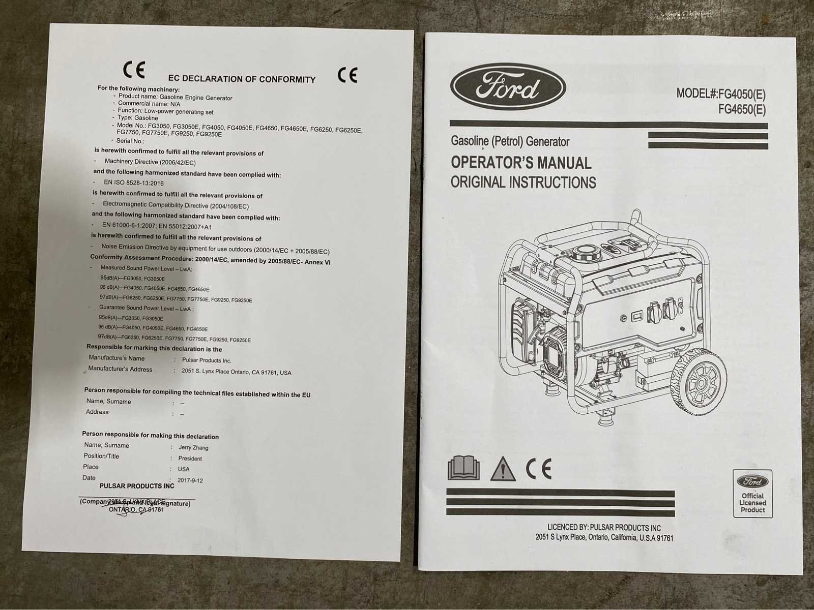 <li><b>merk:</b> Ford</li> <li><b>type:</b> FG4050</li> <li><b>vermogen:</b> 2800 watt</li> <li><b>motor:</b> 208 cc, 4-takt benzinemotor</li> <li><b>starten:</b> trekstarter</li> <li><b>stopcontacten:</b> 2 x 230 Volt (CEE 7/3 – Schuko)</li> <li><b>beveiliging:</b> zekeringautomaat</li> <li><b>eigenschappen:</b> digitale multimeter display</li> <li><b>mobiel:</b> 2 wielen en uitklapbaar handvat</li> <li><b>milieuklasse:</b> euro 5</li> <li><b>gewicht:</b> 45 kg</li> <li><b>beschermingsgraad:</b> IP44</li> <li><b>staat:</b> ongebruikt en in de originele verpakking</li> Nee Merk: Ford Type: FG4050