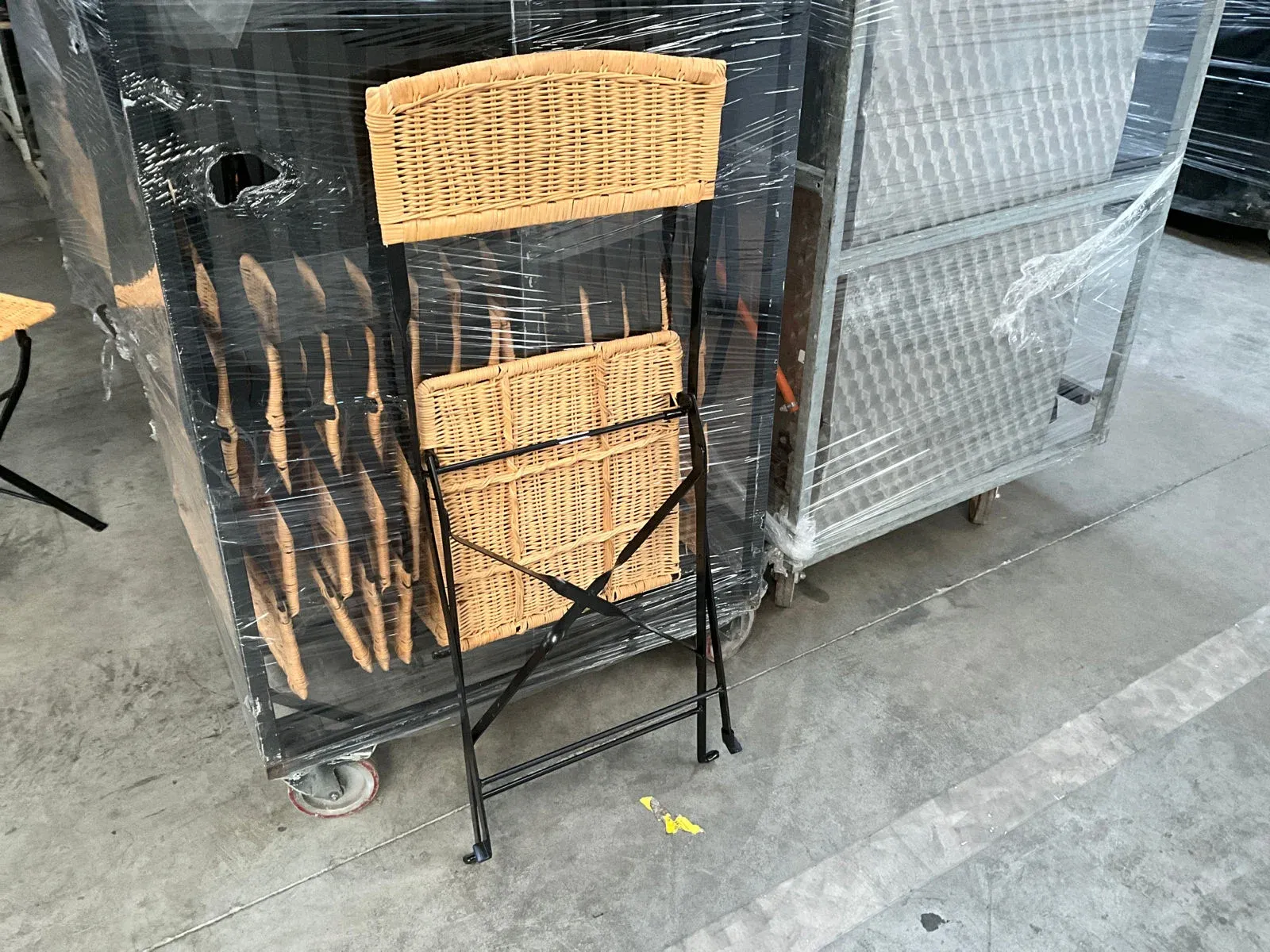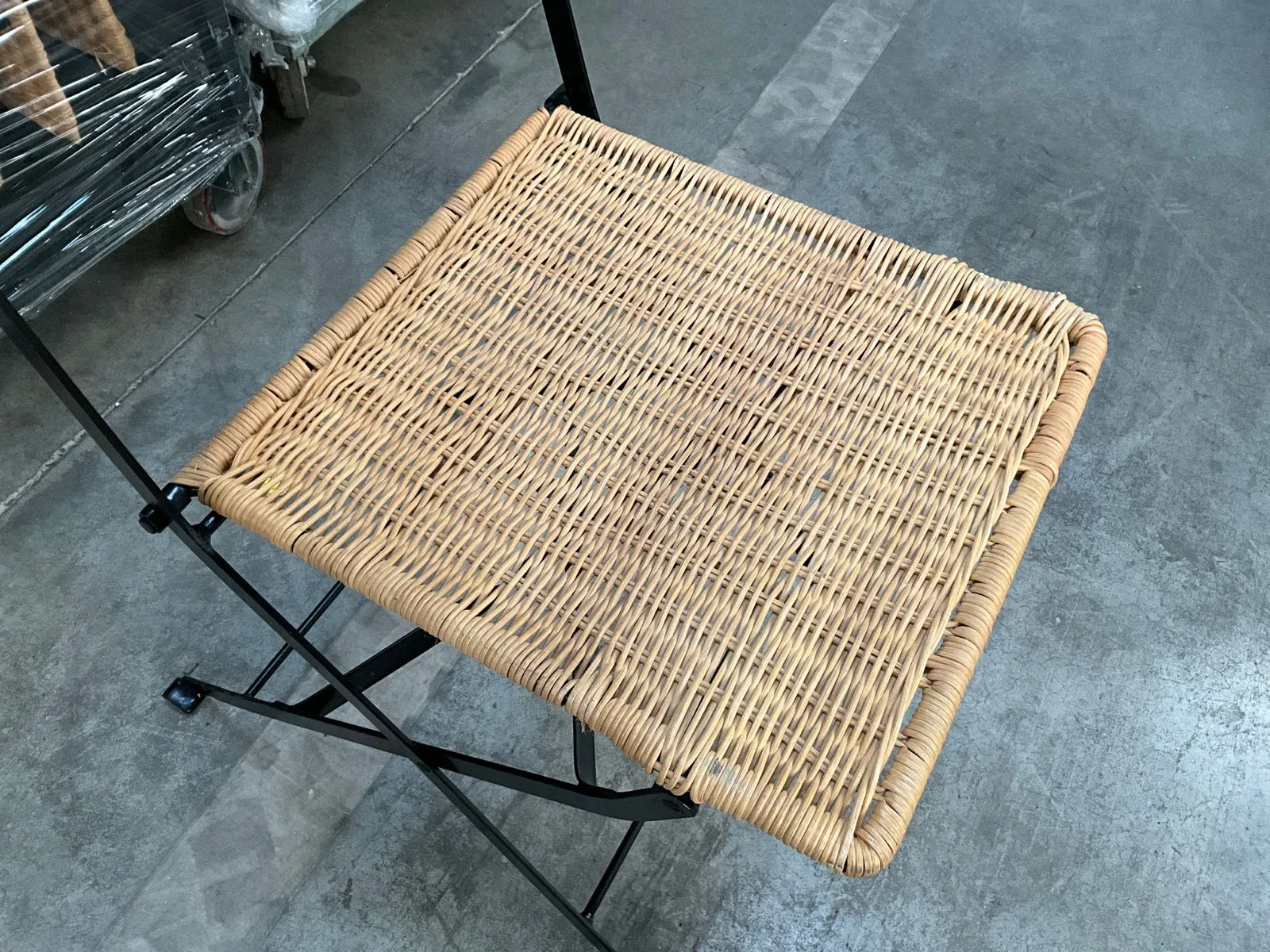Liggende in verrijdbare metalen kar, afm 95 x 75 x 230cm Nee Materiaal: Metalen frame met rieten zitting Breedte: 39cm Lengte: 54cm Hoogte: 84cm
