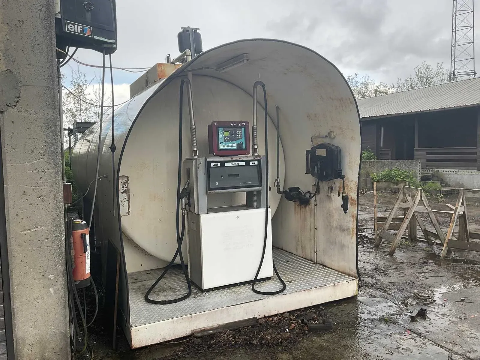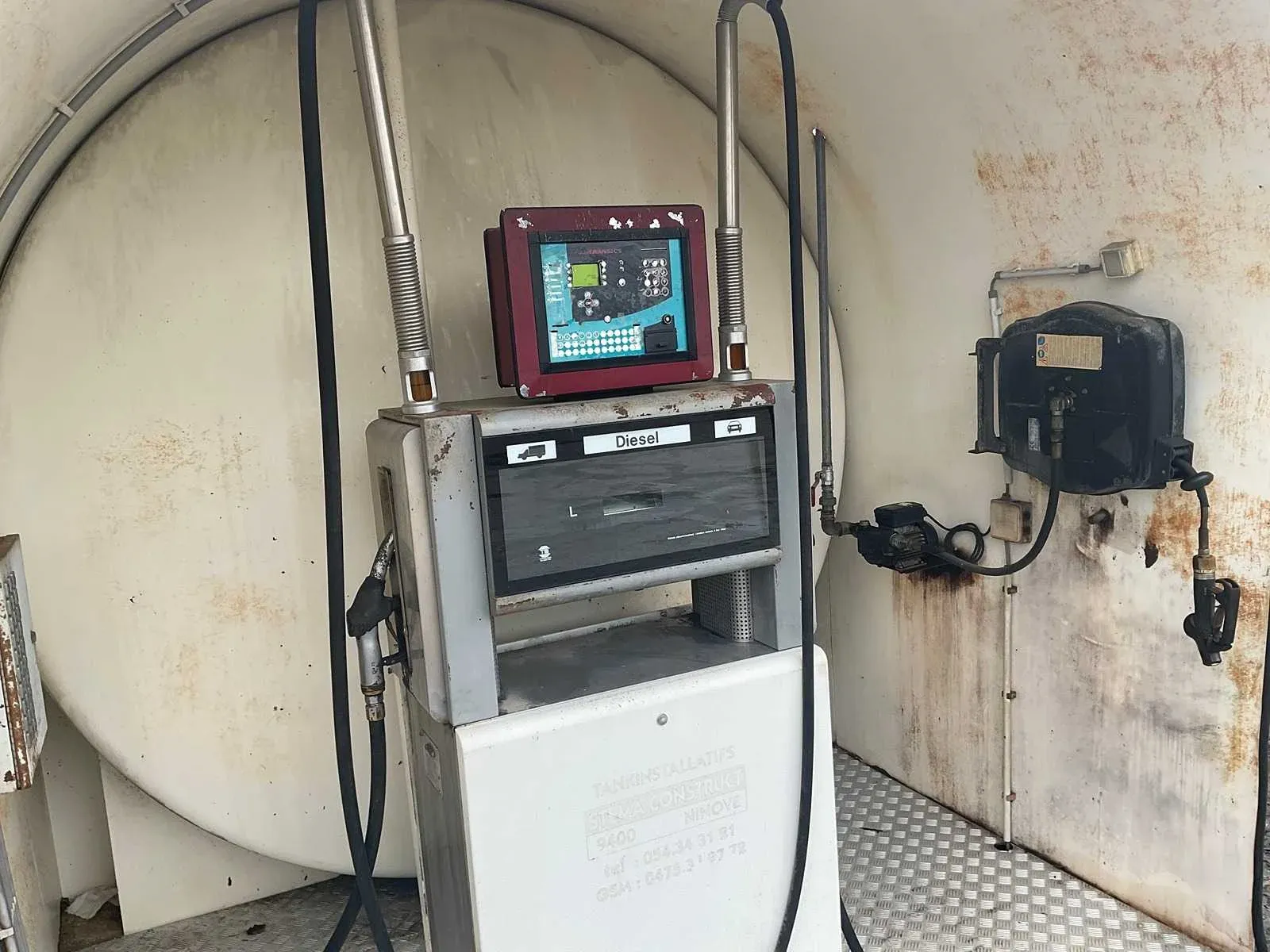 Brandstoftank. Dubbelwandig. 2 reservoirs. Tank 1 Diesel : 25000L Tank 2 Gasoil: 5000L verplaatsbaar . Haken bovenaan . Inclusief pomp en haspels. Nee Merk: Hebo Type: NBN I03-004 Bouwjaar: 2000 Inhoud: 30m³ Serienummer: 200100599 Totale afmeting Lengte: 6950mm