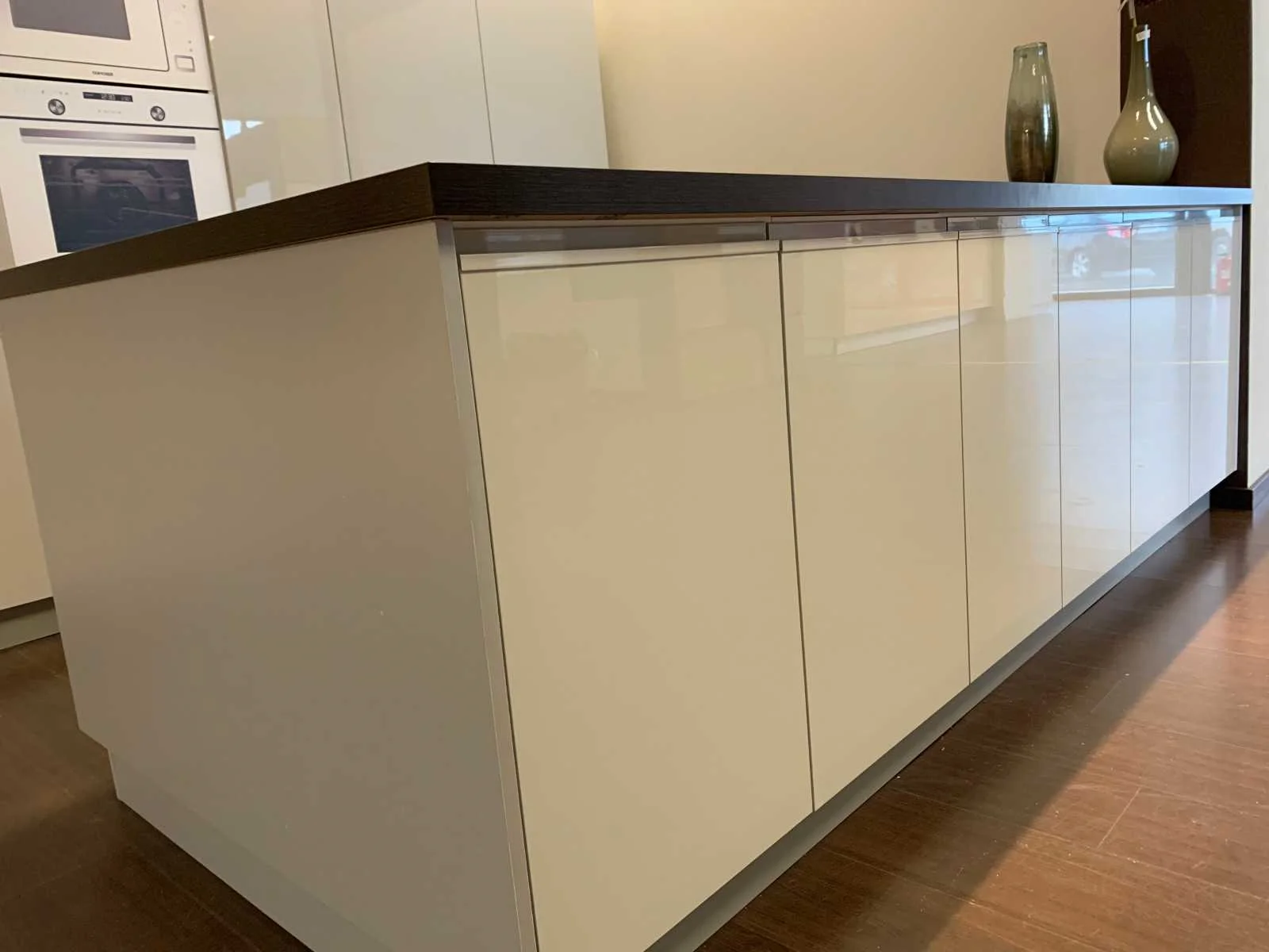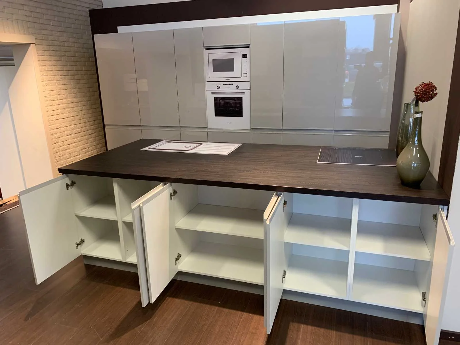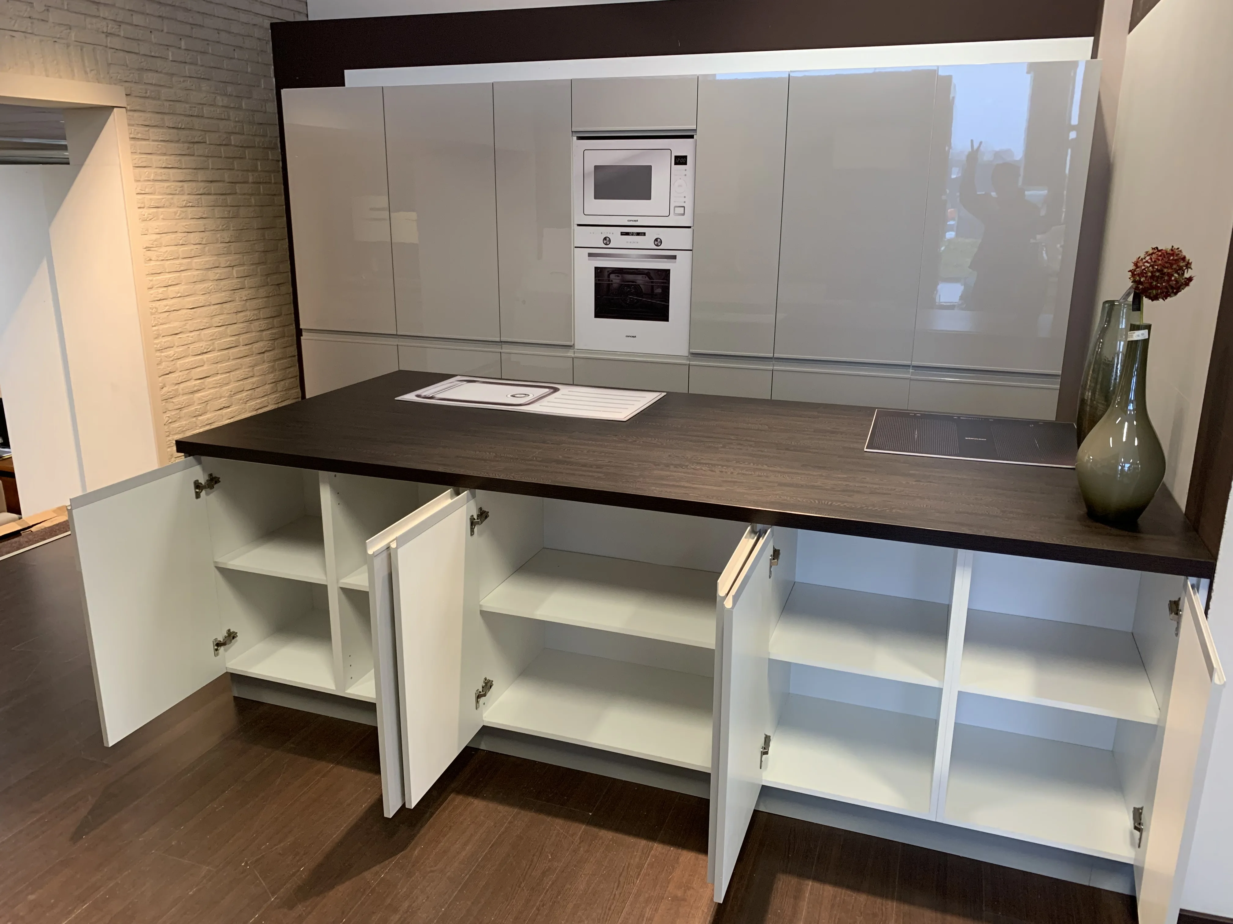 Toonzaalkeuken expo 35 in BOUWPAKKET: Bestaande uit kook-/werkeiland, ingemaakte kast. Voorzien van: - Formica werkblad, dikte 38 mm, - Deuren en laden in MDF met afgerond laminaat 19mm, - Soft close sluitingen, Totale afmetingen: - Eiland: 1200 x 2648 mm, - Inbouwkast: 3815 x H 2066 mm. Zonder keukentoestellen, decoratie, verlichting, barstoelen en kookgerei. Inclusief: plinten, plinthouders, verstelbare pootjes, softclose SAMET scharnieren, deurtjes 19mm, kasten 16mm, werkblad 38mm, kunstof handvaten. Elke kast is apart dus de opstelling kan gemakkelijk aangepast worden, werkblad is niet uitgezaagd dus de koper kan zelf bepalen waar de kookplaat en spoelbak wordt geplatst. Gemakelijk om te monteren met montage-instructies https://www.youtube.com/shorts/NmspbV-G1Lc Nee