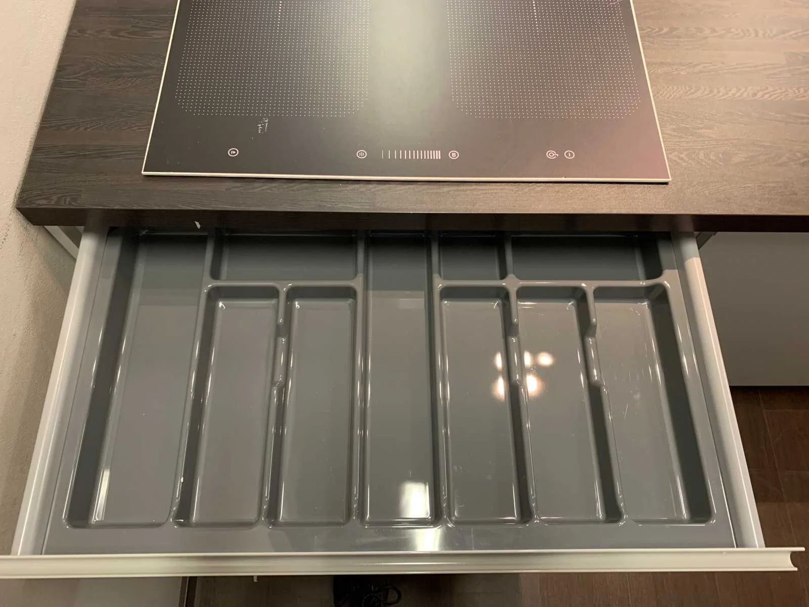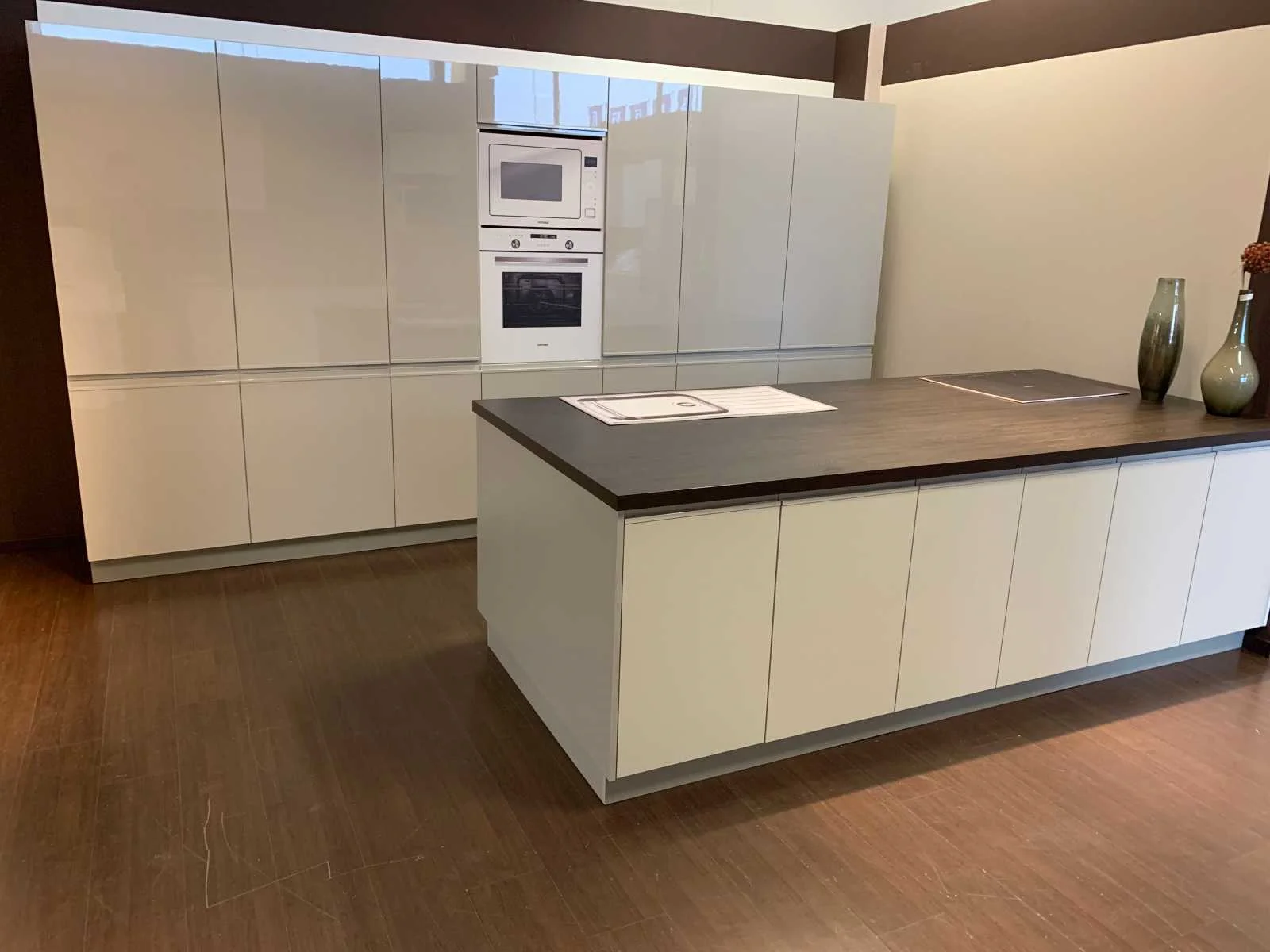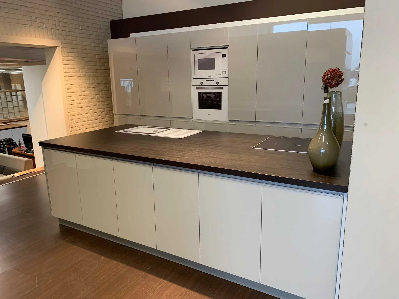 Toonzaalkeuken expo 35 in BOUWPAKKET: Bestaande uit kook-/werkeiland, ingemaakte kast. Voorzien van: - Formica werkblad, dikte 38 mm, - Deuren en laden in MDF met afgerond laminaat 19mm, - Soft close sluitingen, Totale afmetingen: - Eiland: 1200 x 2648 mm, - Inbouwkast: 3815 x H 2066 mm. Zonder keukentoestellen, decoratie, verlichting, barstoelen en kookgerei. Inclusief: plinten, plinthouders, verstelbare pootjes, softclose SAMET scharnieren, deurtjes 19mm, kasten 16mm, werkblad 38mm, kunstof handvaten. Elke kast is apart dus de opstelling kan gemakkelijk aangepast worden, werkblad is niet uitgezaagd dus de koper kan zelf bepalen waar de kookplaat en spoelbak wordt geplatst. Gemakelijk om te monteren met montage-instructies https://www.youtube.com/shorts/NmspbV-G1Lc Nee