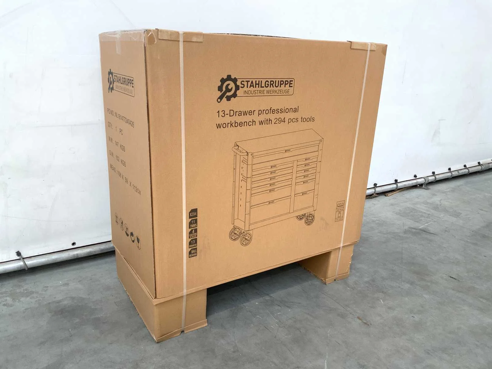 Houten werkblad; verrijdbaar; remmen; 2 delen afsluitbaar; Ongebruikt in doos; 7484 Nee Merk: Stahlgruppe Model: SG24 Type: 294delig Lengte: 106cm Breedte: 57cm Hoogte: 110cm
