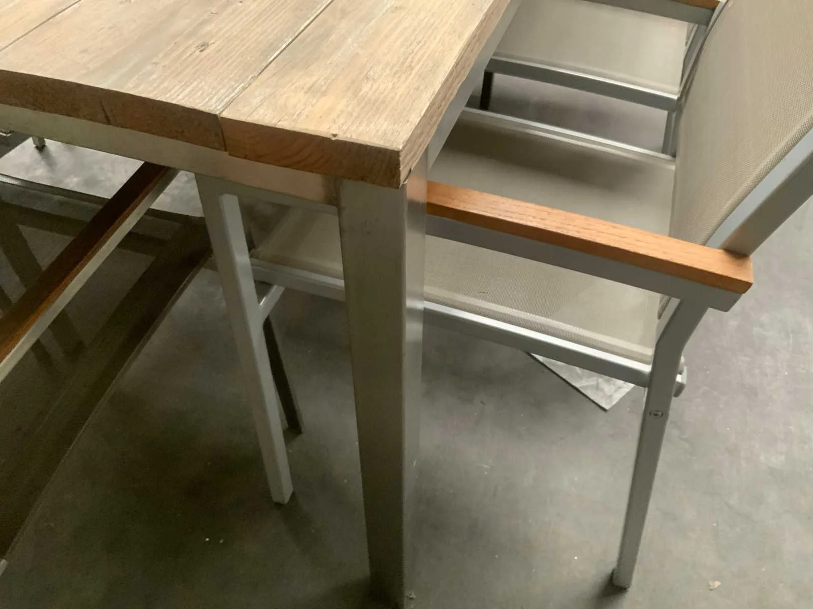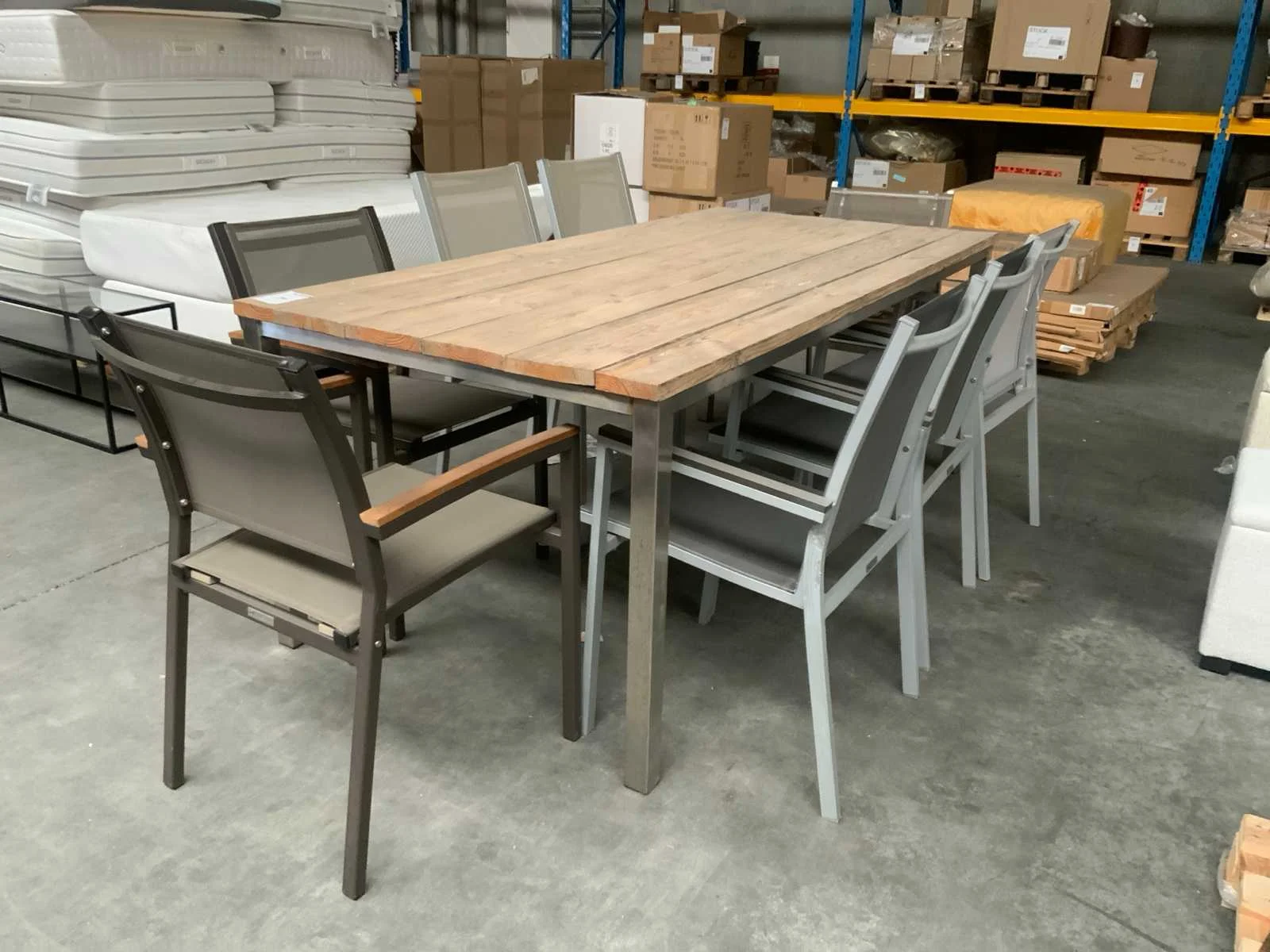 Inclusief 8 diverse stoelen No Lengte: 210cm Breedte: 100cm Hoogte: 79cm