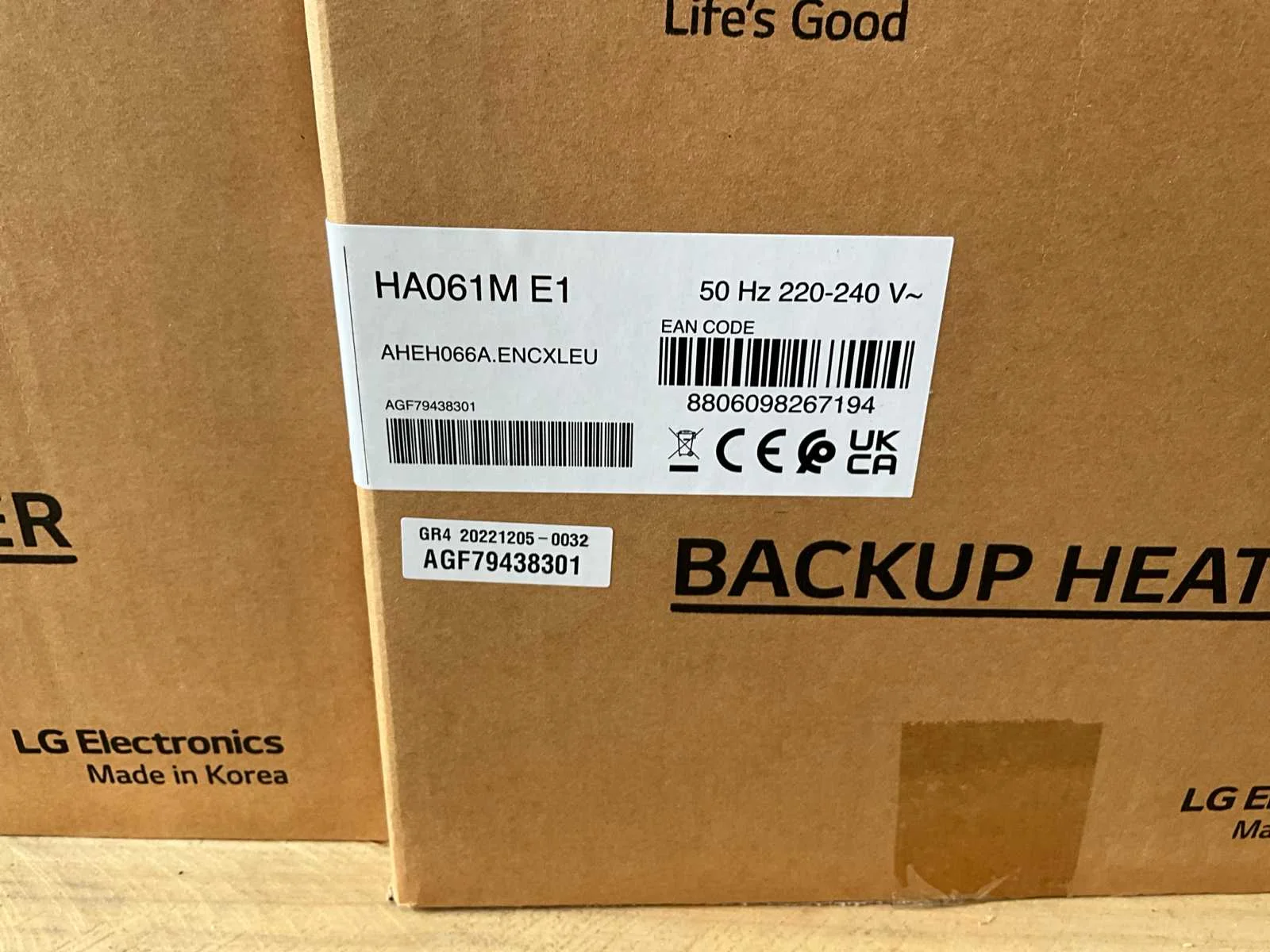 Nieuw. 4 dozen. HA061M.E1 LG Acces Monobloc S Back up\Heater 6 kW (3+3) - monofase 230V -\enkel voor ondersteuning CV-circuit Nee