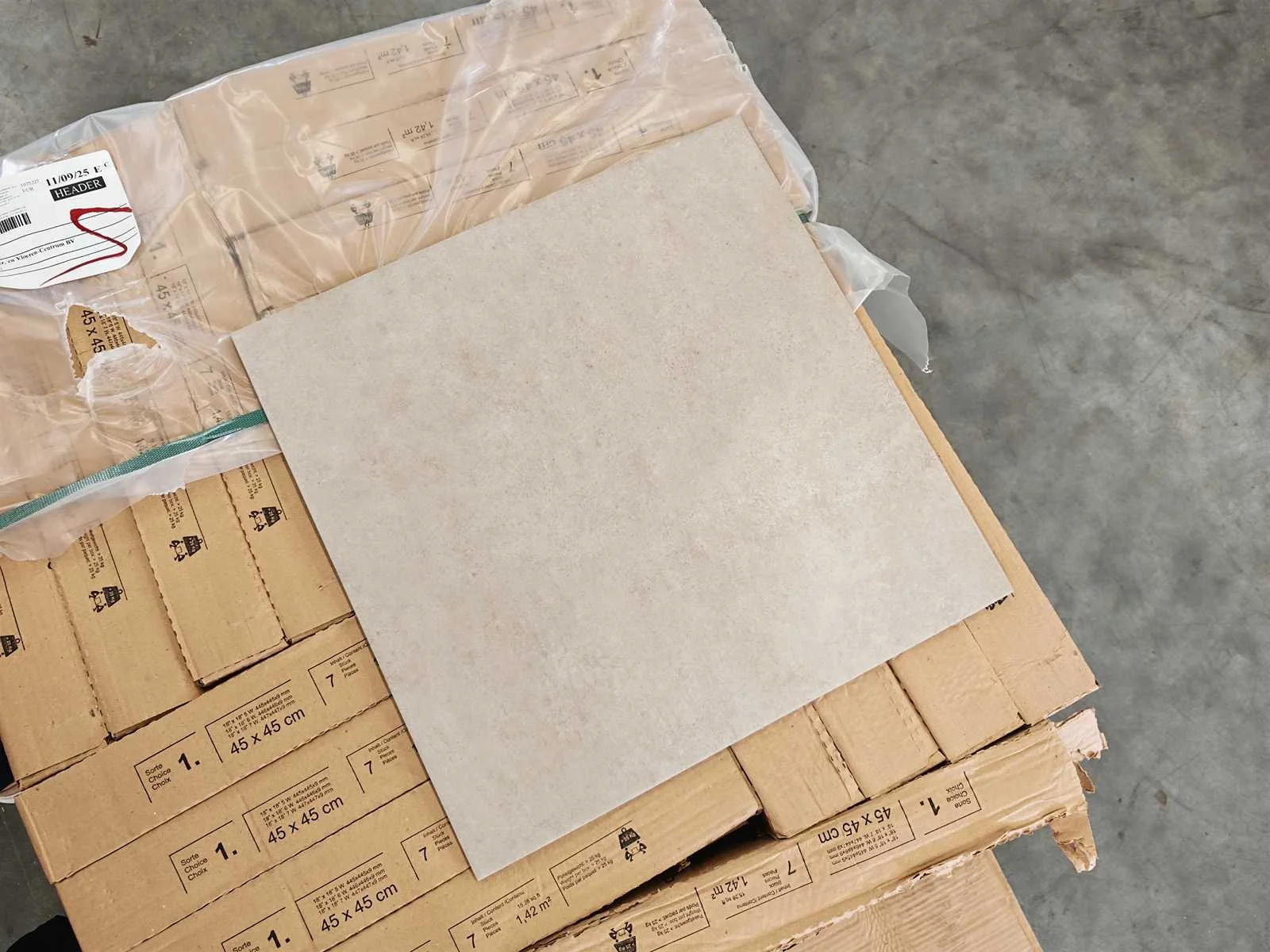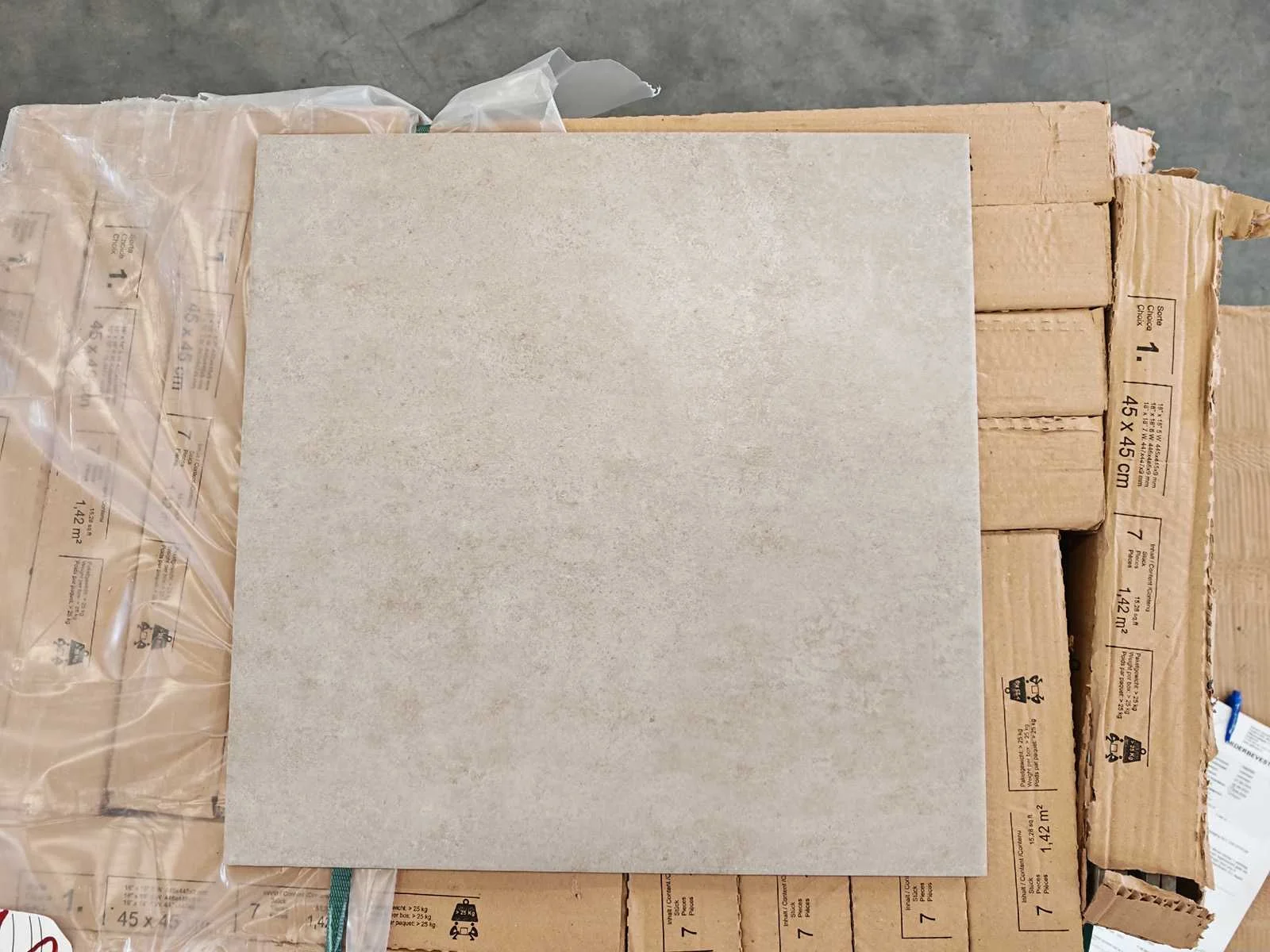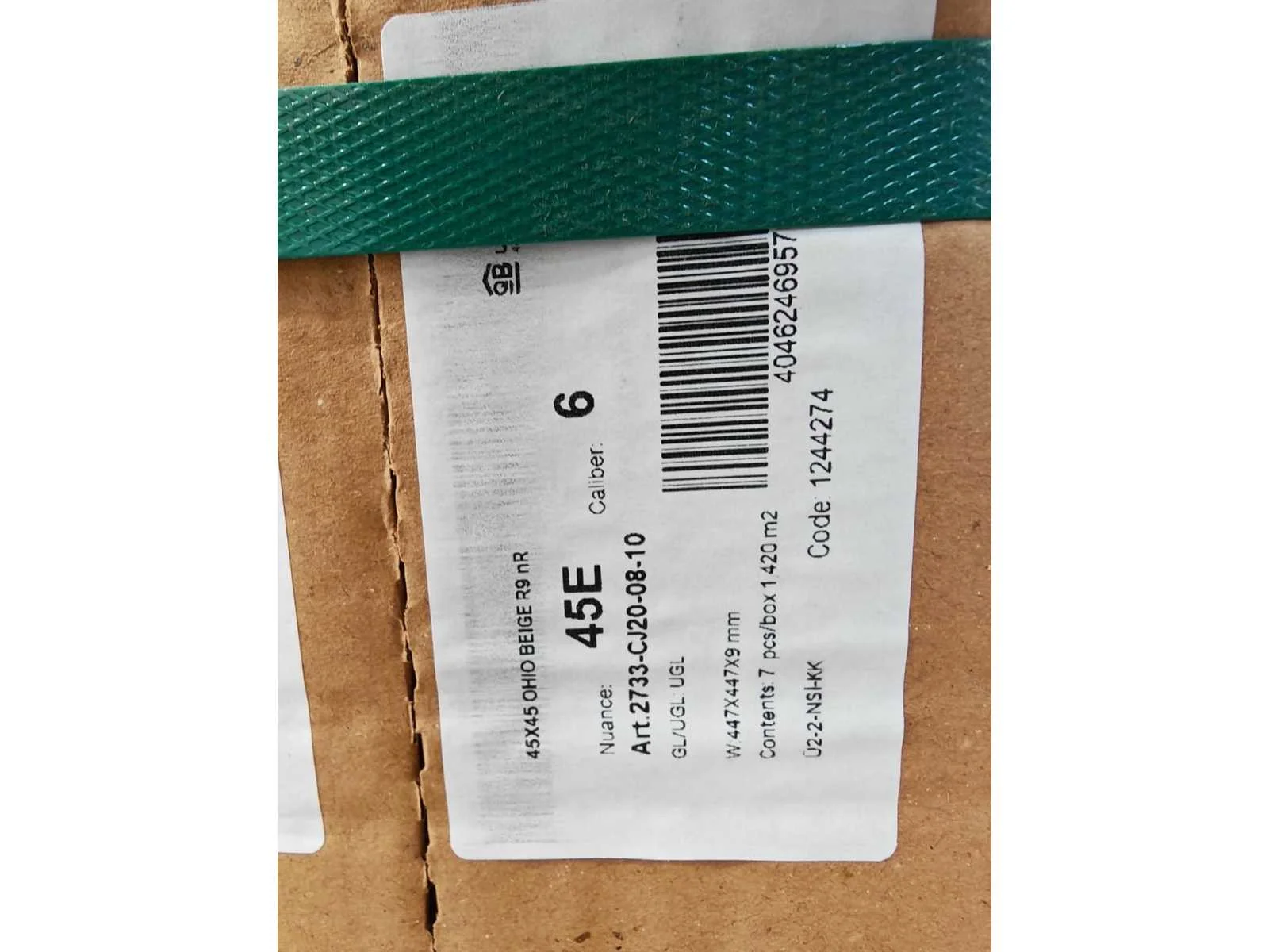 Nee Merk: Villeroy&Boch Kleur: Beige Afwerking: Mat R9 Lengte: 450mm Breedte: 450mm Dikte: 9mm Materiaal: Keramiek Type: Vloertegel Model: Ohio 2733 CJ20 Aantal m² per verpakking: 1.42m² Aantal pakken: 17 Totaal oppervlakte: 24.09m² Totaal gewicht: 490kg
