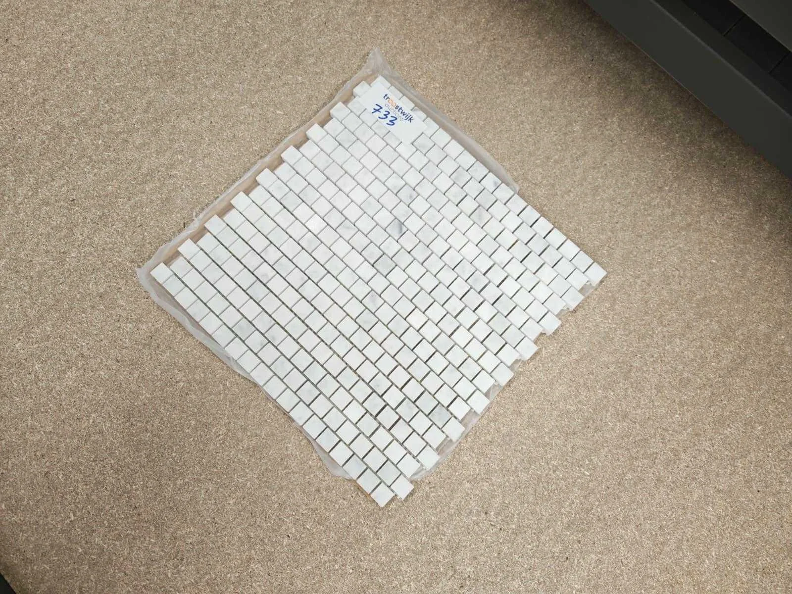 No Merk: Natuursteen Kleur: Wit Afwerking: Mat Lengte: 30cm Breedte: 30cm Materiaal: Marmer Dikte: 10mm Type: Mozaïektegel Totaal oppervlakte: 13.5m² Totaal gewicht: 3400g