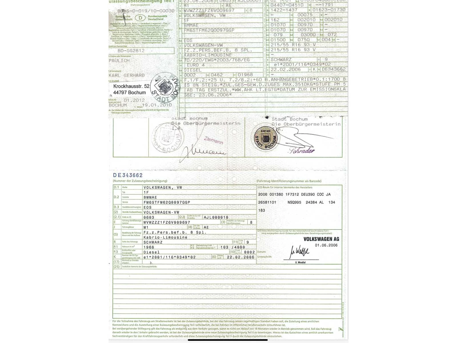 Voorzien van: lederen zetelbekleding, elektrisch verstelbare zetels, dakraam boorddocumenten: Duits inschrijvingsbewijs, attest gevalideerde e705 Opmerking: dak vouwt niet open, na te kijken Nee Merk: Volkswagen Model: Cabrio Type: EOS Bouwjaar: 2006 Afgelezen kilometerstand: 182469km Cilinderinhoud: 1968cc Vermogen (kW): 103kW Brandstof: diesel Chassisnummer: WVWZZZ1FZ6V009697 Aantal zitplaatsen: 4 Kleur: Zwart Transmissie: Handgeschakeld Stuurwiel: Multifunctioneel Emissieklasse: Euro 4 Aantal deuren: 2 Aantal sleutels: 1 Velgmaat: 16 Nationaliteit documenten: Duits startinformatie : Start en rijdt
