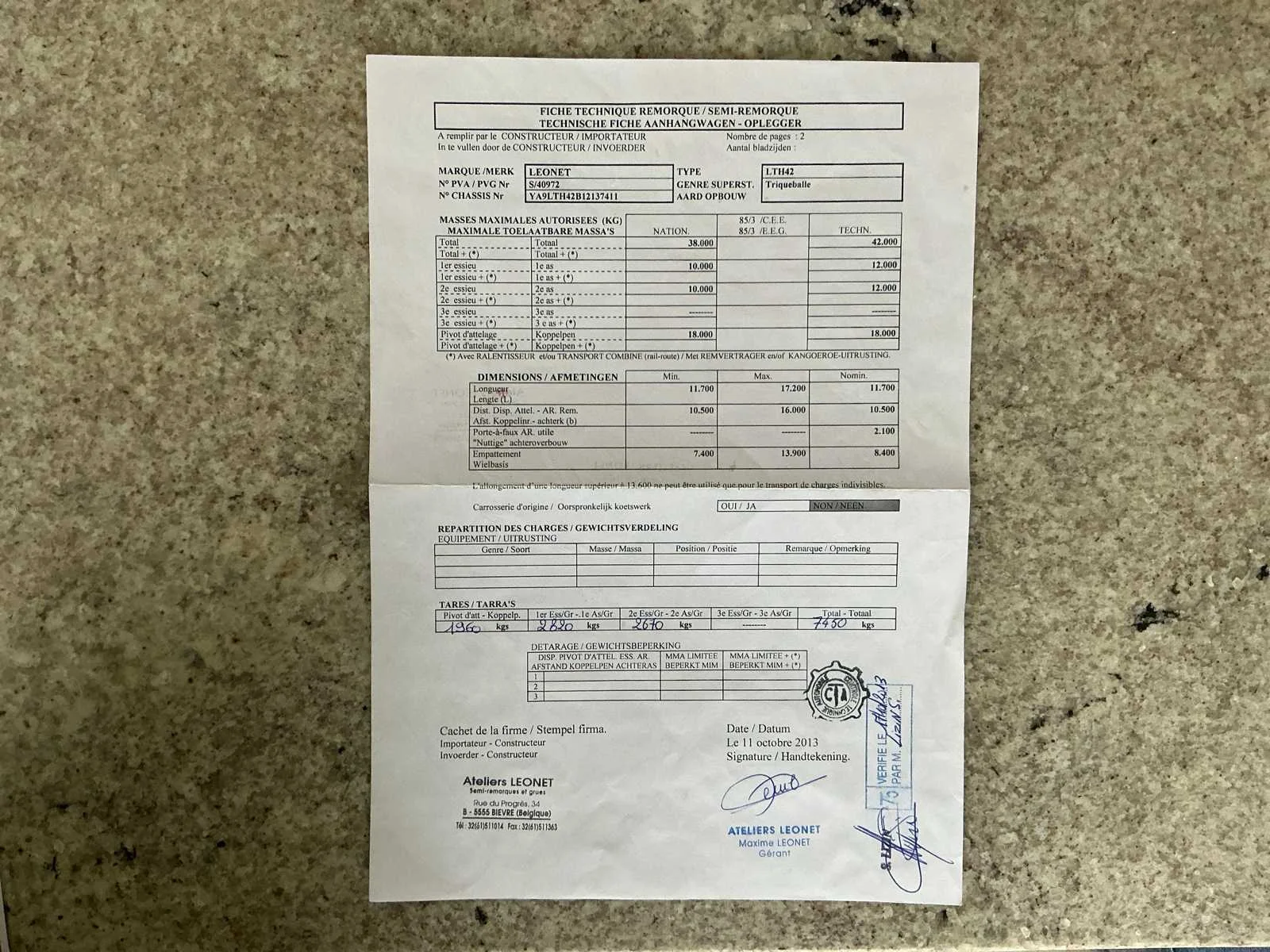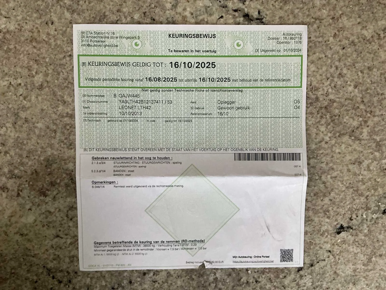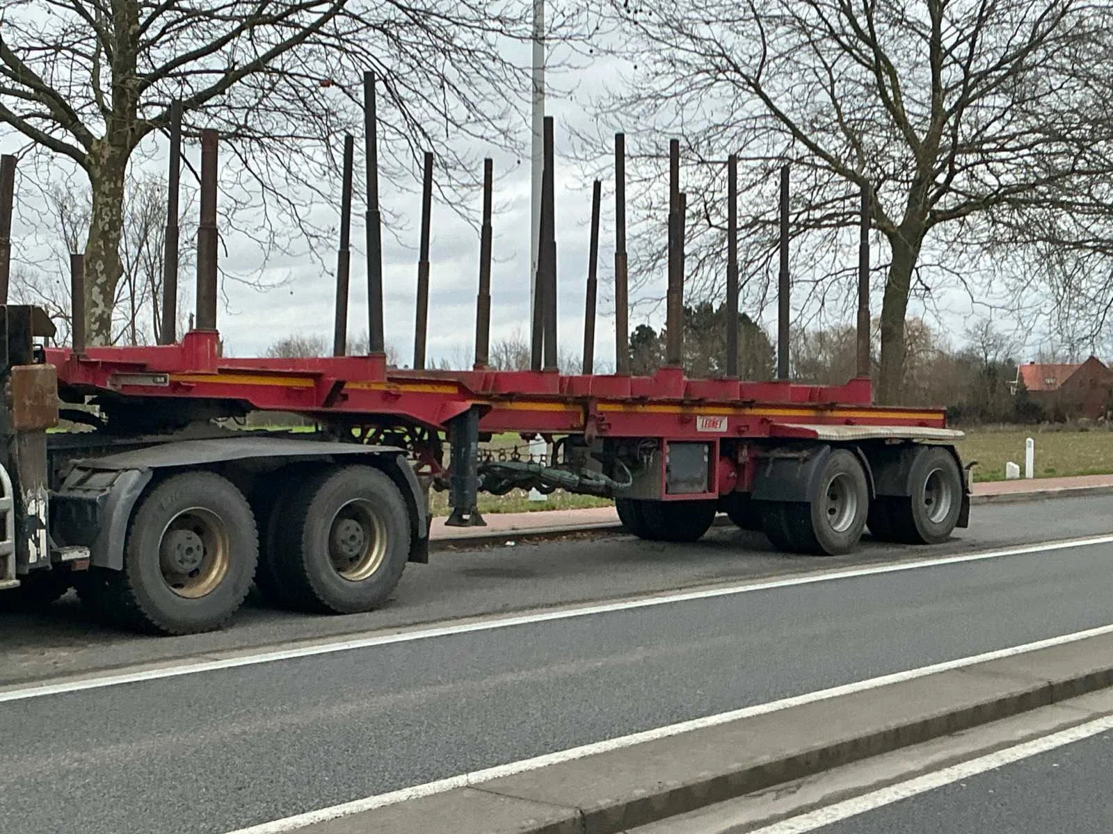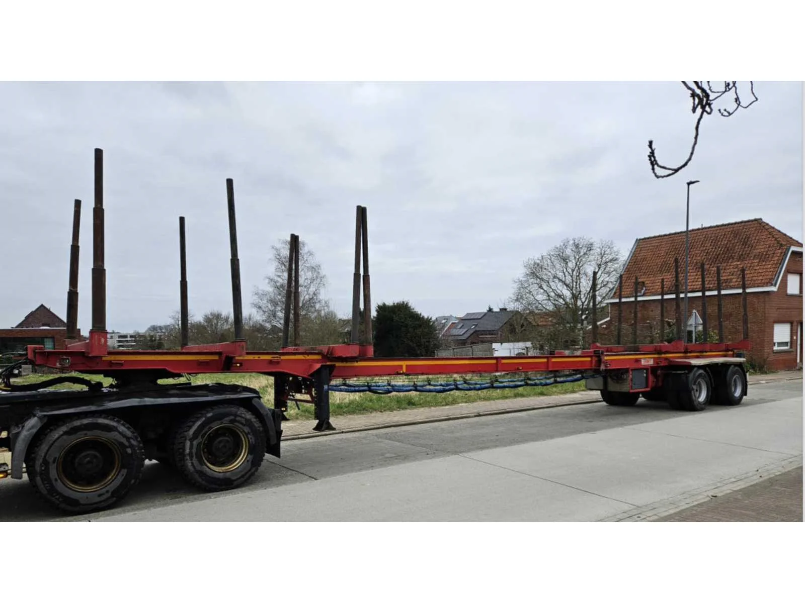 2013 Leonet LTH42 Oplegger - 2 hydraulische meesturende assen. - Boompalen In perfecte en recht staat. - telescopisch uitschuifbaar van 11,7M tot 17,2. - Technische aslast tot 12T. - Pneumatische ophanging - Beschikt over meerdere handige materiaalkoffers Deze praktische oplegger voor bomentransport is in uitstekende en perfect werkende staat, meteen inzetbaar voor het zware werk. Aangekoppelde vrachtwagen niet inbegrepen in dit lot. No Merk: Leonet Type: LTH42 Bouwjaar: 2013 Chassisnummer VIN: YA9LTH42B12137411 APK vervaldatum: 16/10/2025 Aantal assen: 2 Laadvermogen: 26910kg Eigen gewicht: 11090kg Totale afmeting L: 17200mm