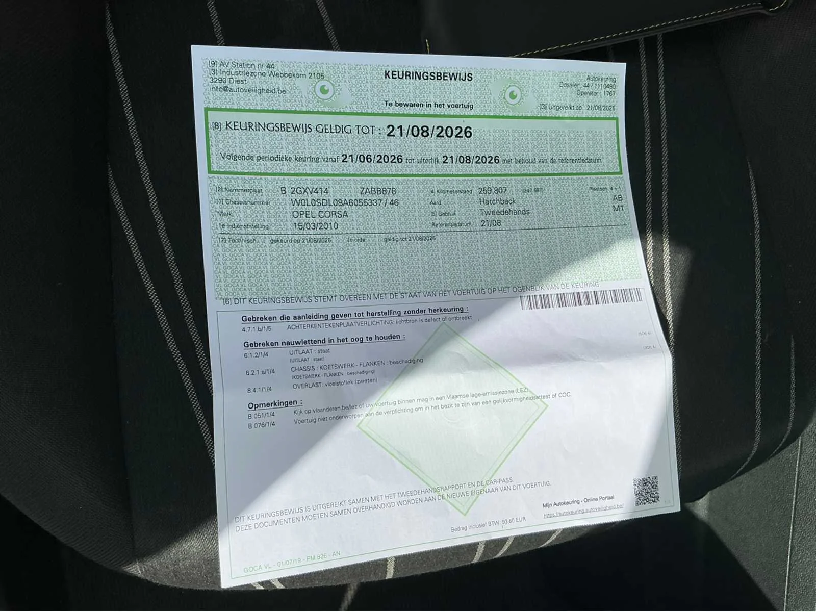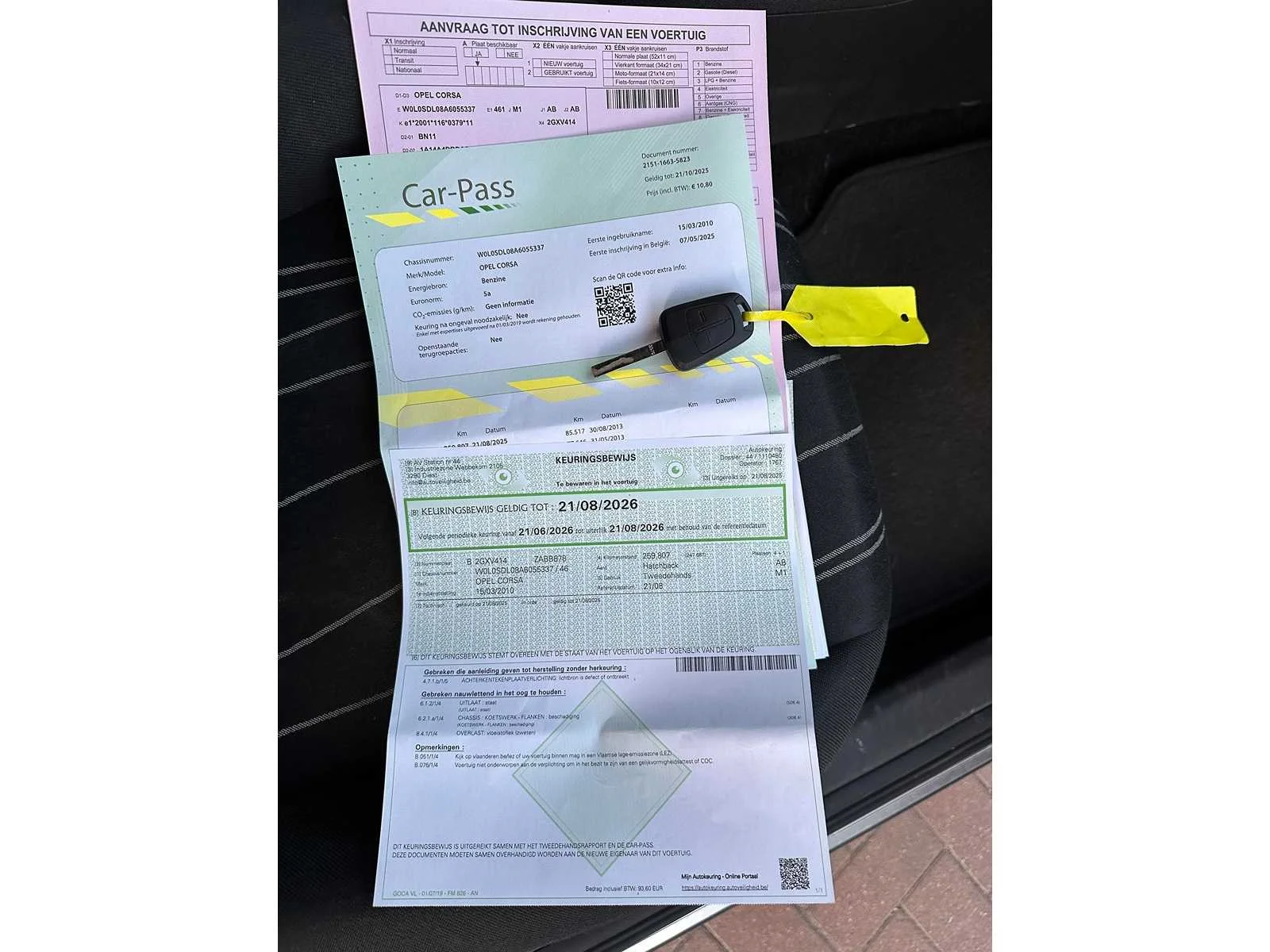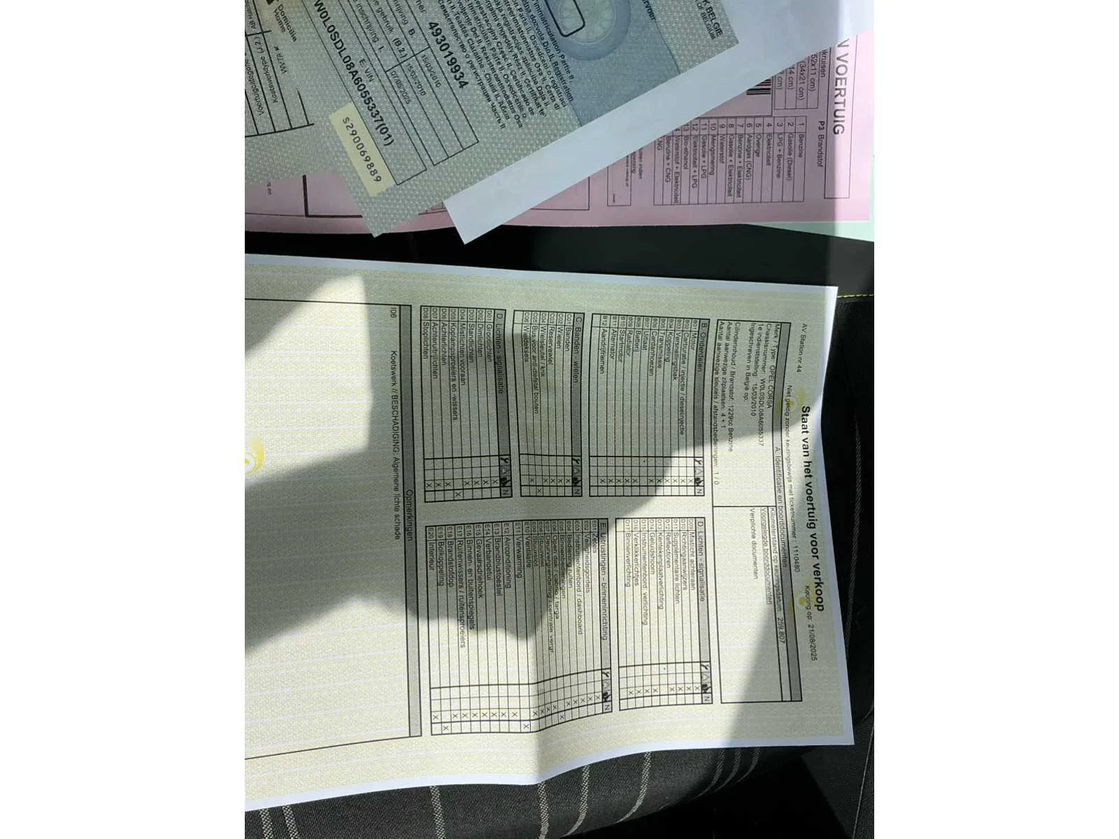 Reeds gekeurd voor verkoop op 21/08/2025 =klaar voor inschrijving Nee Merk: Opel Model: Corsa Bouwjaar: 2010 Afgelezen kilometerstand: 259815km Cilinderinhoud: 1229cc Vermogen (kW): 63kW Brandstof: benzine Datum eerste toelating: 15/03/2010 Aantal zitplaatsen: 5 Transmissie: Handgeschakeld Emissieklasse: 5 Aantal deuren: 3 Aantal sleutels: 1 Gelijkvormigheidsattest aanwezig: true Carpass: true Start en rijdt: start en rijdt Keuringsrapport geldig tot: 21/08/2026 Andere boorddocumenten: roze inschrijvingsformulier Inschrijvingsbewijs - deel 1 : aanwezig Inschrijvingsbewijs - deel 2: aanwezig
