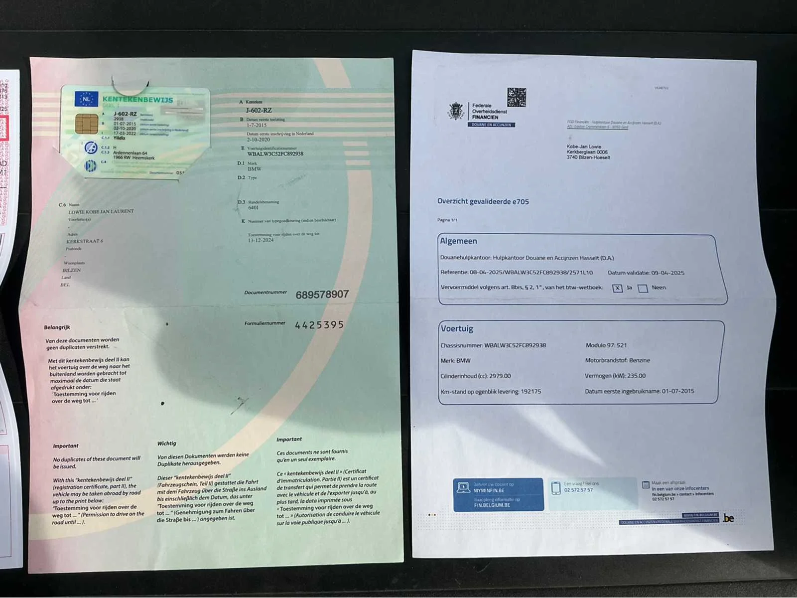 Zeer sportieve en luxueuze coupé in alpine witte kleur, met zwart M-interieur en vele opties. Uitgerust met krachtige 3.0 liter zes in lijn benzinemotor, TwinPower Turbo (235 kW / 320 pk bij 5800 R/min) gekoppeld aan een automatische (8-traps ZF) transmissie. Kilometerstand ±192.000 km. Nog extra voorzien van downpipe en Akrapovic uitlaatpunten. De wagen is voorzien van zwarte M-velgen,sportstoelen met memory, groot navigatiescherm, HUD Head Up Display, automatische airco, parkeersensoren en achteruitrijcamera. Zowel exterieur als interieur in nette staat, met gebruikssporen passend bij de leeftijd en kilometerstand. Gebreken die aanleiding geven tot herkeuring 1. 6.2.1.1.a/3 • Sproeiers, glas en elektrische ontsteking defect. • Opmerking: uitlaatemissies elektrische ontsteking → door defect kunnen emissiegrenzen overschreden worden. 2. 8.2.1.2/h/2 • Uitlaatemissies elektrische ontsteking – overschrijding emissiewaarden. 3. B. T05/1/2 • OBD (On-Board Diagnostics): MIL (storingslampje motor) duidt op een fout. 4. QH3 • Identificatie voertuig – identificatieplaat ontbreekt of is onleesbaar. Gebreken die aanleiding geven tot herstelling zonder herkeuring • 8.2.1.2/k/5 Uitlaatemissies elektrische ontsteking (MIL duidt op een storing). Opmerkingen • 5.2.3.1/a/4: Linkse achterste en voorste banden 30% verschil in omtrek. • 8.5.1/h/4: OBD – foutcodes opgeslagen (emissie gerelateerd). • B. O6/1/4: OBD – foutcodes in verband met ontstekings-/verbrandingssystemen en EDC. • B. O6/1/14: OBD – foutcodes in verband met adaptieve systemen. Nee Merk: BMW Model: 640i M pakket Bouwjaar: 2015 Afgelezen kilometerstand: 197060km Cilinderinhoud: 2979cc Vermogen (kW): 235kW Brandstof: benzine Chassisnummer: WBALW3C52FC892938 Laadvermogen: 450kg Vermogen (pk): 320hp Aandrijving: RWD Aantal zitplaatsen: 4 Kleur: Wit Transmissie: Automaat USA titel: Ja Stuurwiel: Multifunctioneel Aantal deuren: 3 Ledig gewicht: 1745kg Aantal cilinders: 6 Carrosserie: Coupé Nationaliteit documenten: Amerika- Nederland Start en rijdt: Ja Keuringsrapport geldig tot: 30/05/2025 Self drive export possible : true Vavato voert geen technische keuring uit.: true Airconditioning: true Navigatie: true Xenon verlichting: true LED-koplampen: true Leder bekleed: true