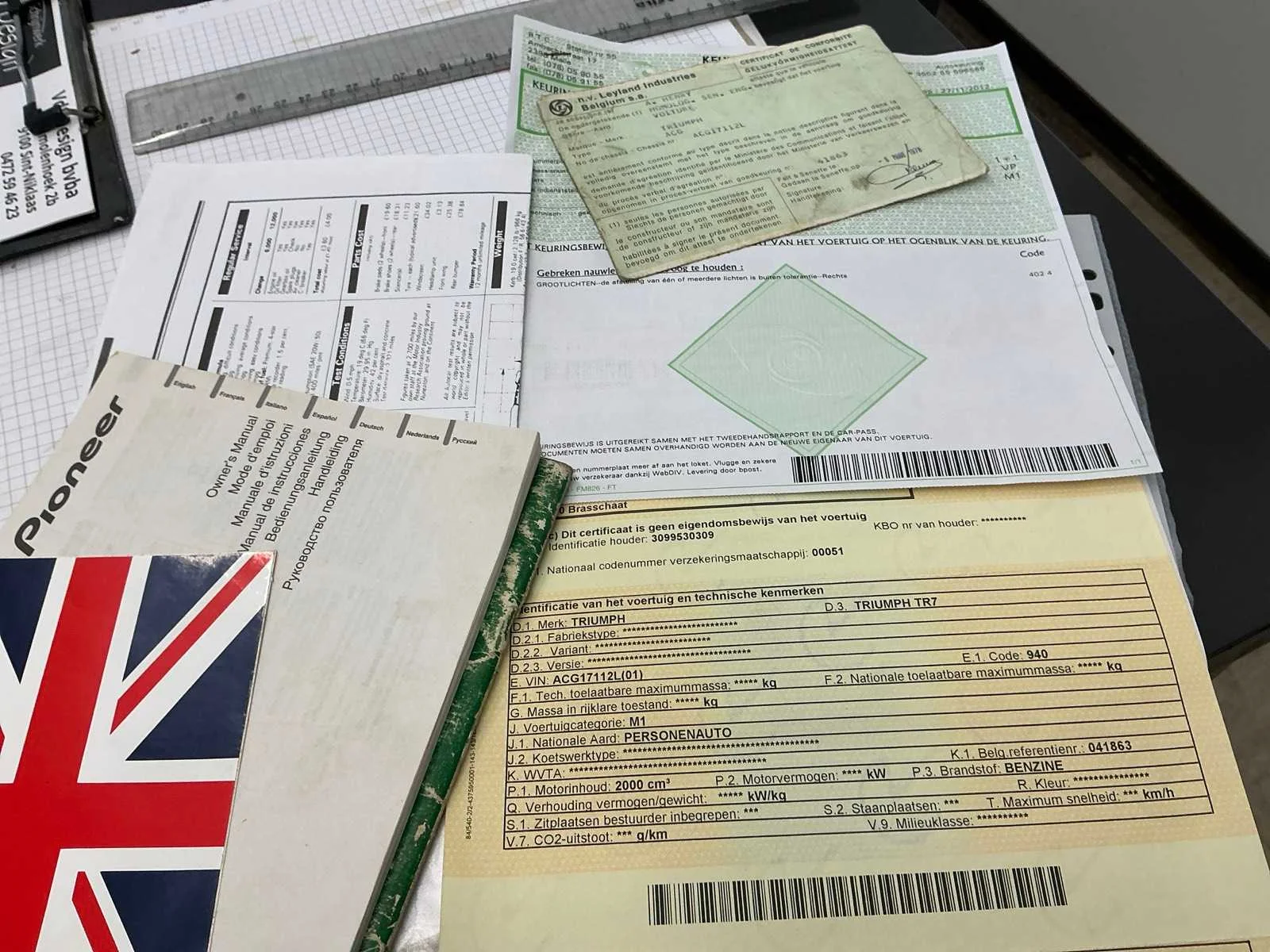 Sleutel niet aanwezig; bevat carrosserieschade Nee Merk: Triumph Type: TR7 Bouwjaar: 1978 Chassisnummer: ACG17112L Afgelezen kilometerstand: 74125 Brandstof: Benzine Datum eerste toelating: 10/04/1978 Boorddocumenten aanwezig?: true Nationaliteit documenten: Belgisch Kentekenpapieren compleet?: true Transmissie: Handgeschakeld Aantal deuren: 2 Aantal zitplaatsen: 2 Aantal sleutels: 0 Cilinderinhoud: 2000 Inschrijvingsbewijs - deel 1 : Aanwezig Gelijkvormigheidsattest aanwezig: true