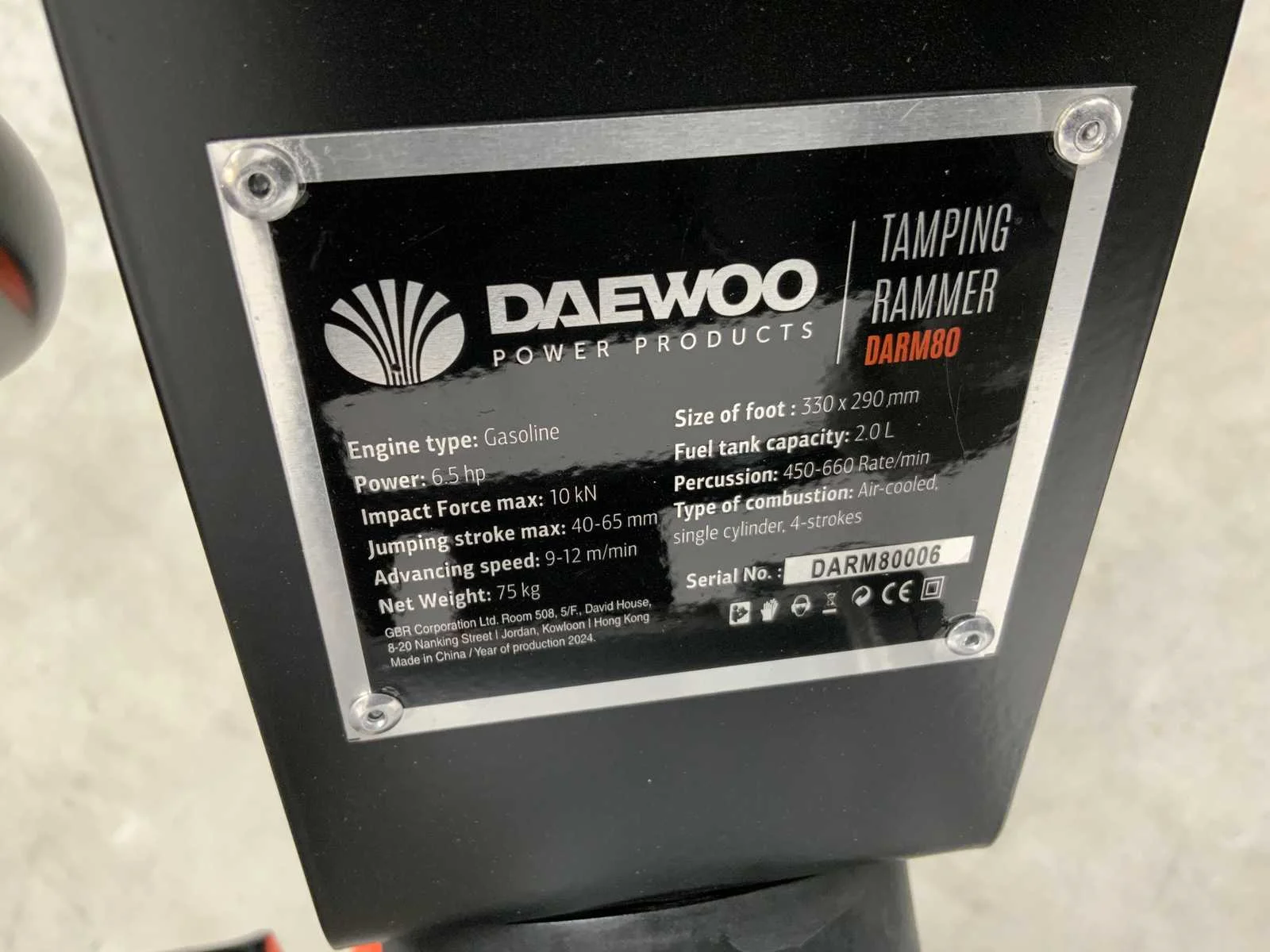Ongebruikt in de verpakking; 6.5PK; jumping stoke Max 40-65mm; aircooled; 2.0L tank; advancing speed 9-12m/min; 6528 Nee Merk: Daewoo Type: DARM80 Bouwjaar: 2025 Grondplaat afm. l: 330mm Grondplaat afm. b: 290mm Centrifugale kracht: 10kN Merk motor: Loncin Brandstof: benzine Eigen gewicht: 62kg Totale afmeting L: 750mm Totale afmeting Breedte: 480mm Totale afmeting Hoogte: 1080mm