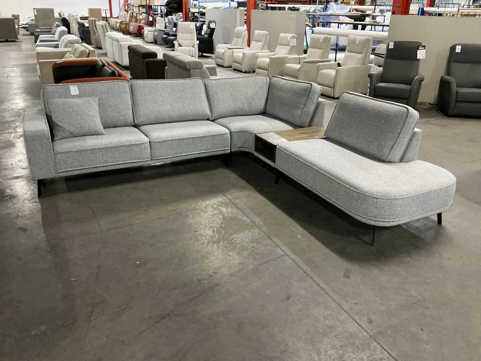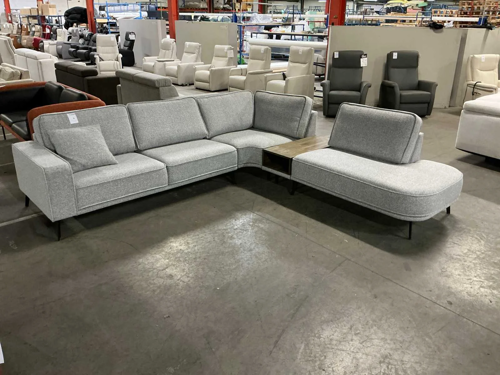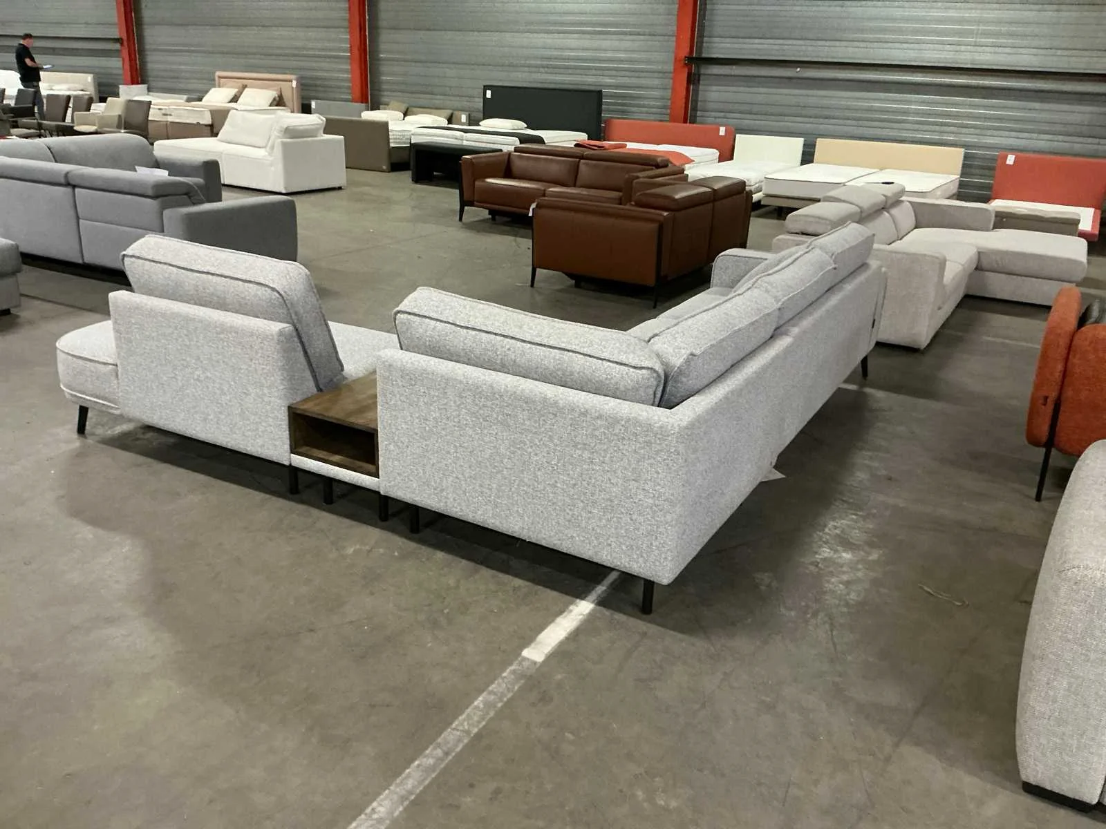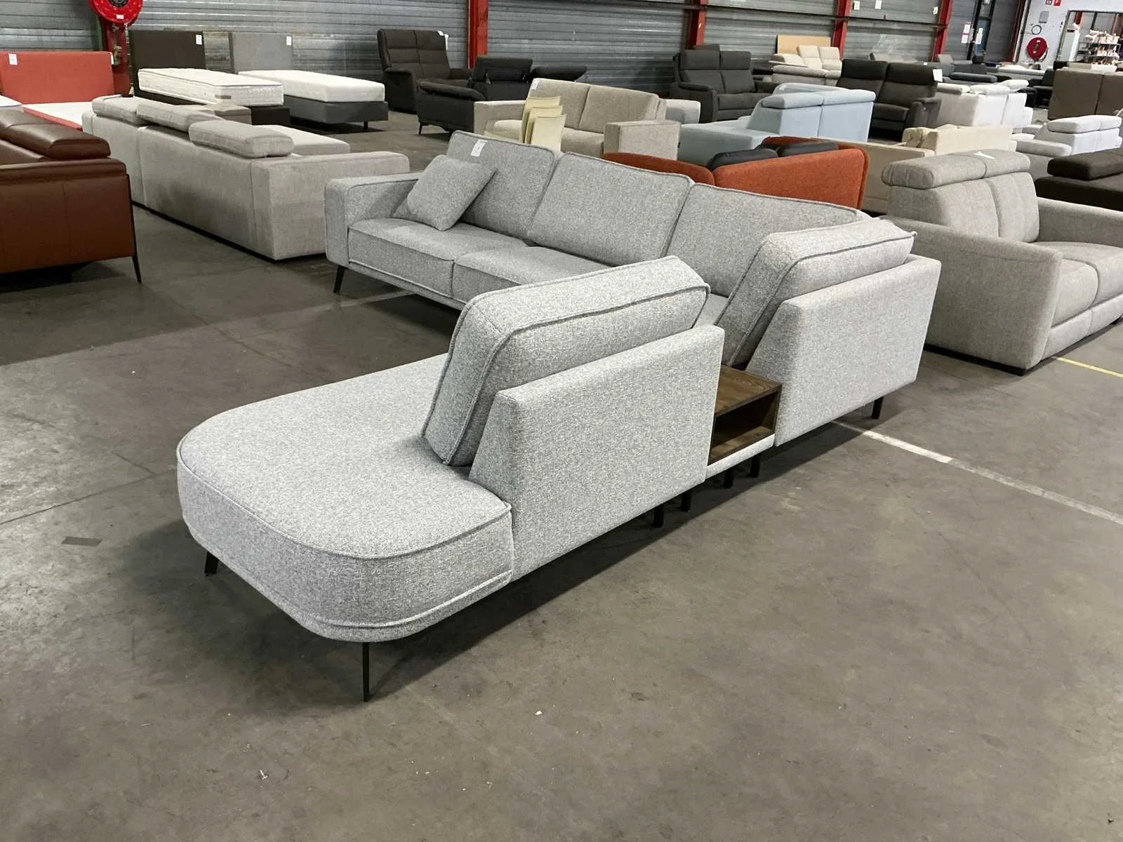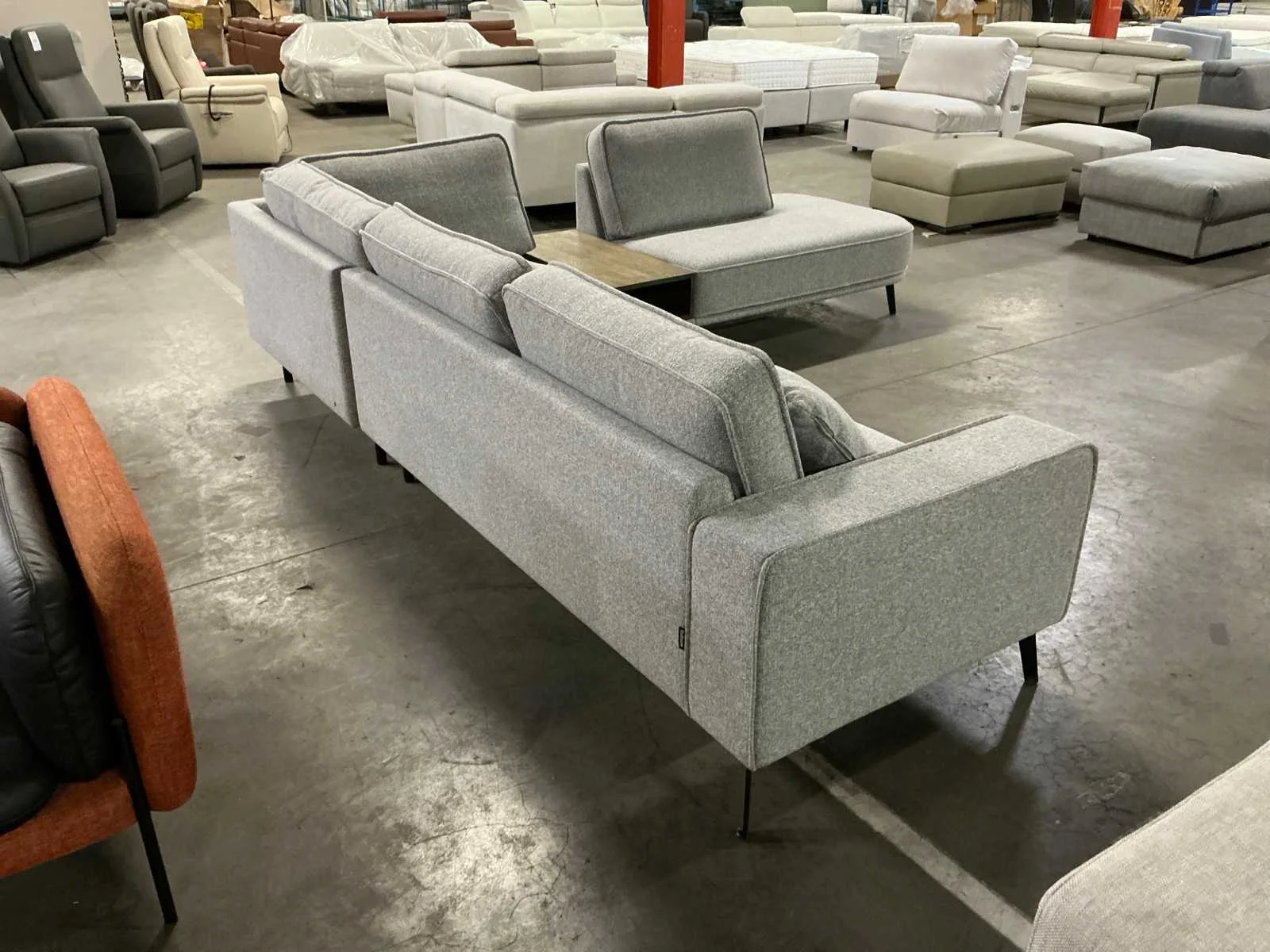 Toonzaalmodel; Deze stijlvolle hoekbank biedt voldoende zitruimte voor het hele gezin. De stevige kussens zorgen voor optimaal comfort, en het ingebouwde tablet is een handig accessoire voor drankjes, boeken of je laptop. Dankzij de neutrale kleur is de bank veelzijdig en eenvoudig te combineren met elk interieur. No Merk: Belform Lengte: 290cm Breedte: 300cm Hoogte: 85cm Materiaal: gestoffeerd