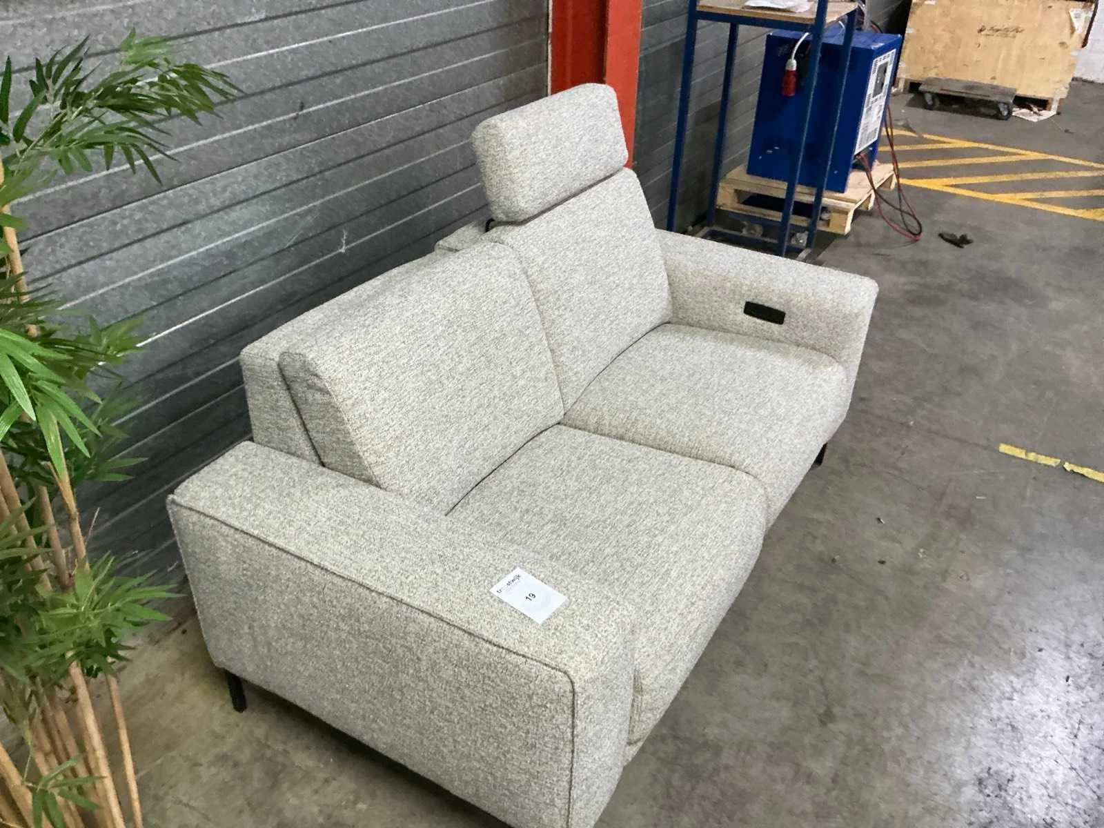 Stijlvol en comfortabele bank met rechts een verstelbare hoofdsteun en elektrische relaxfunctie voor extra comfort. No Merk: Belform Lengte: 89cm Breedte: 168cm Zithoogte: 47cm Materiaal: gestoffeerd