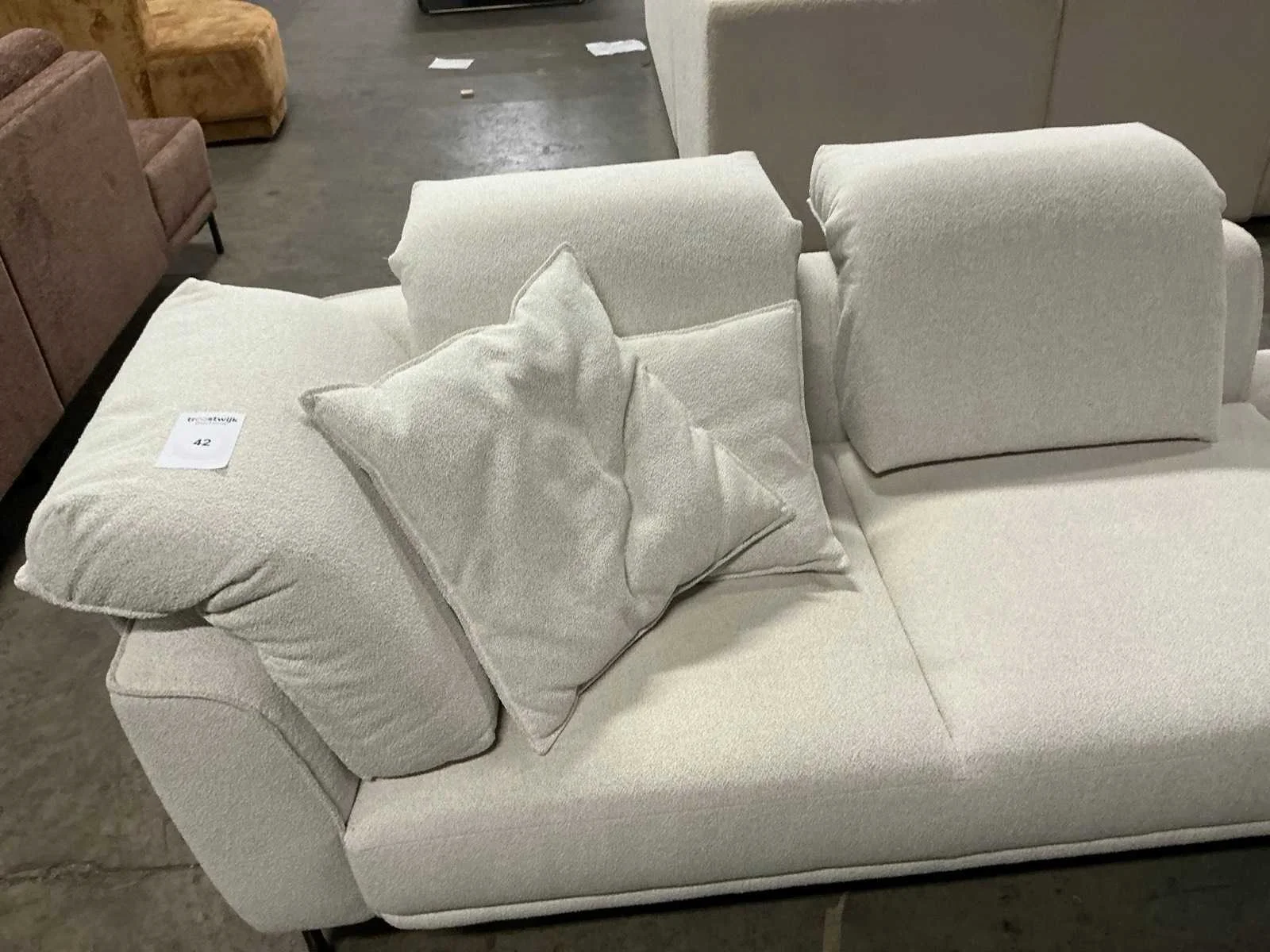 Met manueel verstelbare hoofdsteunen No Merk: Recor Lengte: 190cm Breedte: 340cm Zithoogte: 48cm Materiaal: gestoffeerd