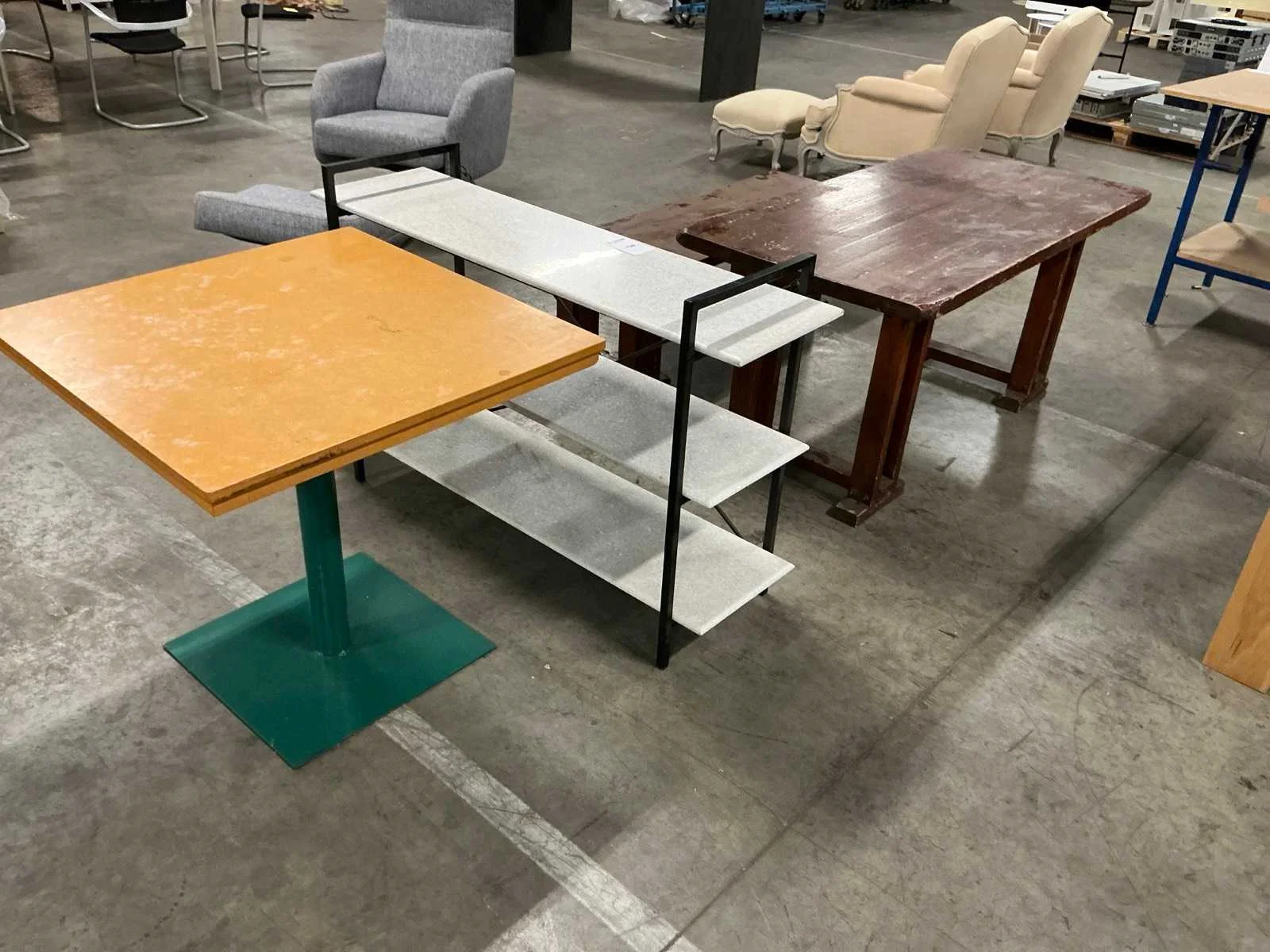Tafel met zitbank 149x73xH70cm , rekje 40x130xH85cm met marmeren legborden en tafeltje 80x80xH75cm Nee