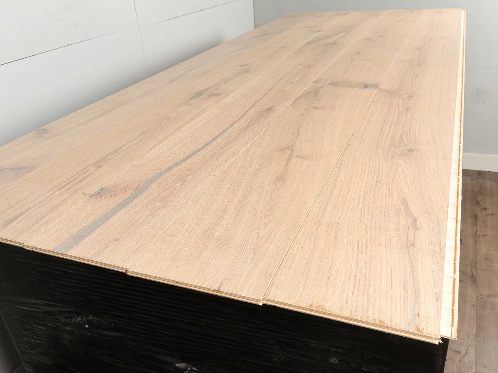 Gemakkelijk te leggen wegens clicksysteem, geschikt voor alle soorten vloer en koelverwarmingen, kwaliteits parketvloer, vloer is van hoogwaardig Europees eiken hout, kant en klaar behandeld, dikte 14 mm, toplaag 3 mm, 53 pakken a 2,72 m2 Nee Merk: Angelwood TR Product type: Parket Oppervlakte: 144m² Geschikt voor vloerverwarming: Ja V-groef: Ja Afwerking: Geolied, voelbaar structuur, rustiek, Eiken toplaag, met v-groef Aantal m² per verpakking: 2.72m² Kleur: Country mat 254-4 Gewicht: 1165kg Lengte: 2420mm Breedte: 187mm Materiaal: Eiken multiplank