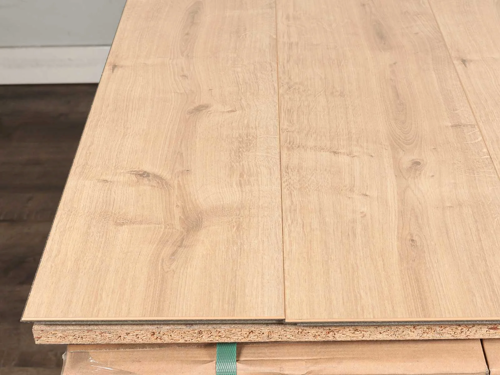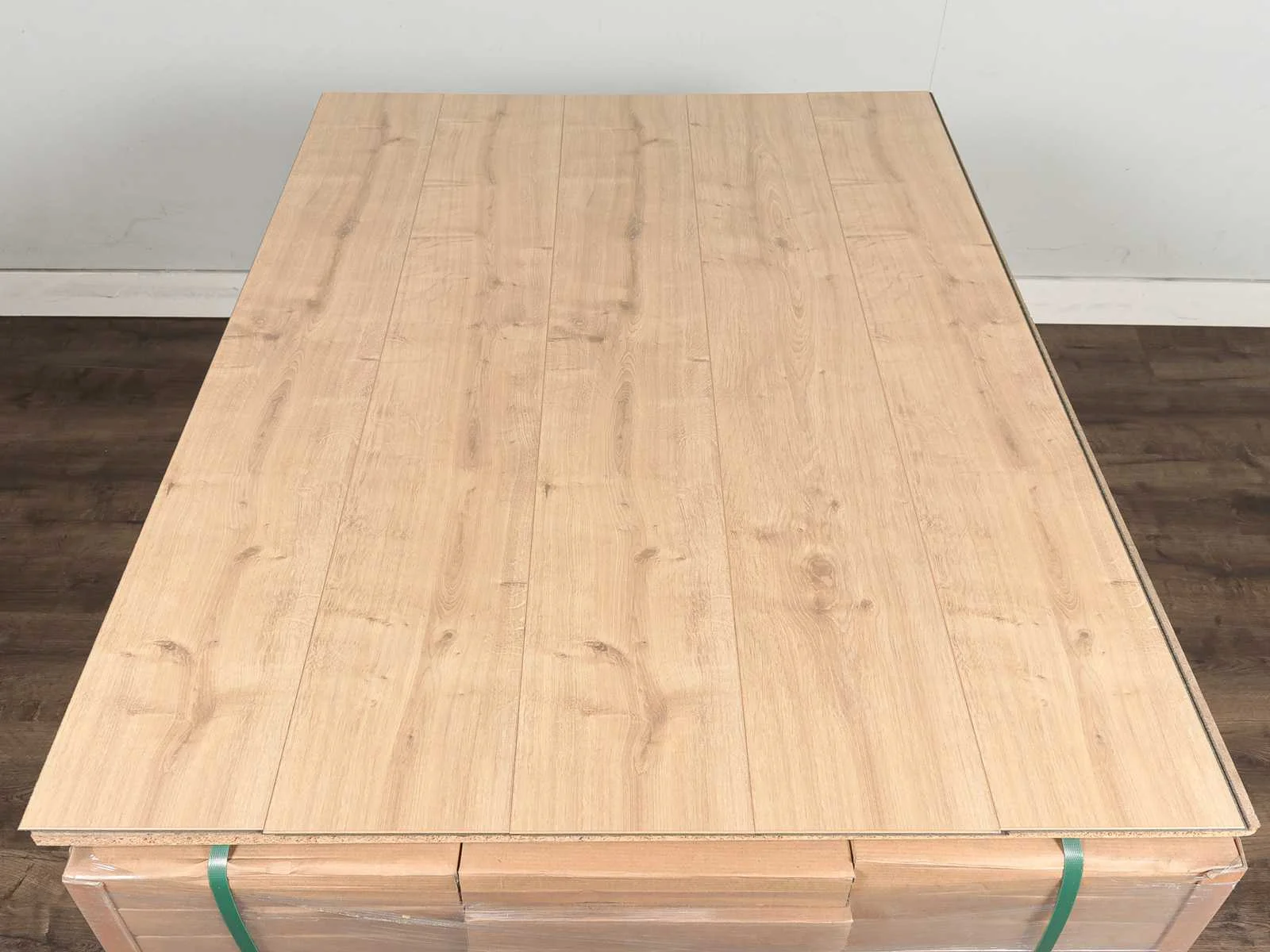 Kwaliteits laminaat vloer, dikte 12 mm, voorzien van clicksysteem, goed te combineren met vloerverwarming, kras en slijtvast, anti slip, gemakkelijk schoon te maken, warm en comfortabel, 22 pakken a 1,48 m2 Nee Merk: Krono flooring Product type: Laminaat Oppervlakte: 32m² Geschikt voor vloerverwarming: Ja V-groef: Ja Afwerking: Voelbaar structuur, anti slip, met v-groef Aantal m² per verpakking: 1.48m² Kleur: Sahara beige Gewicht: 330kg Lengte: 1285mm Breedte: 192mm Materiaal: HDF/MDF
