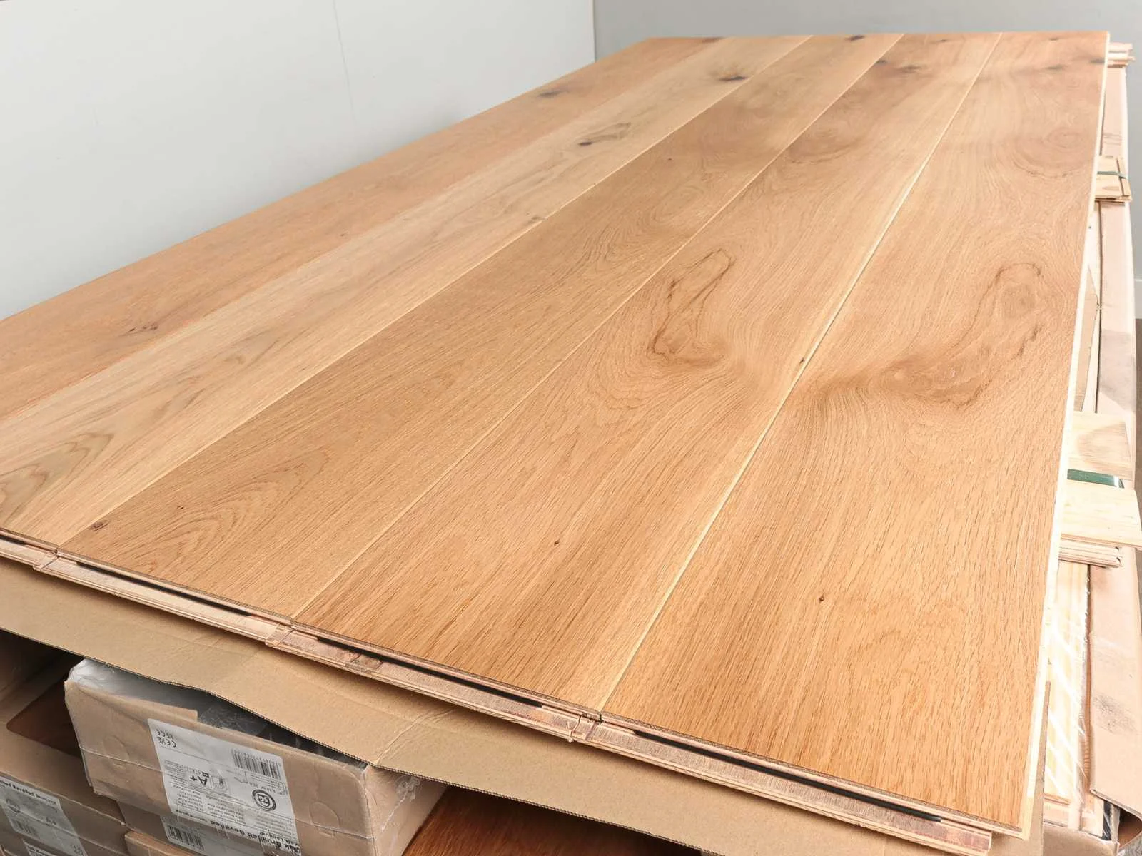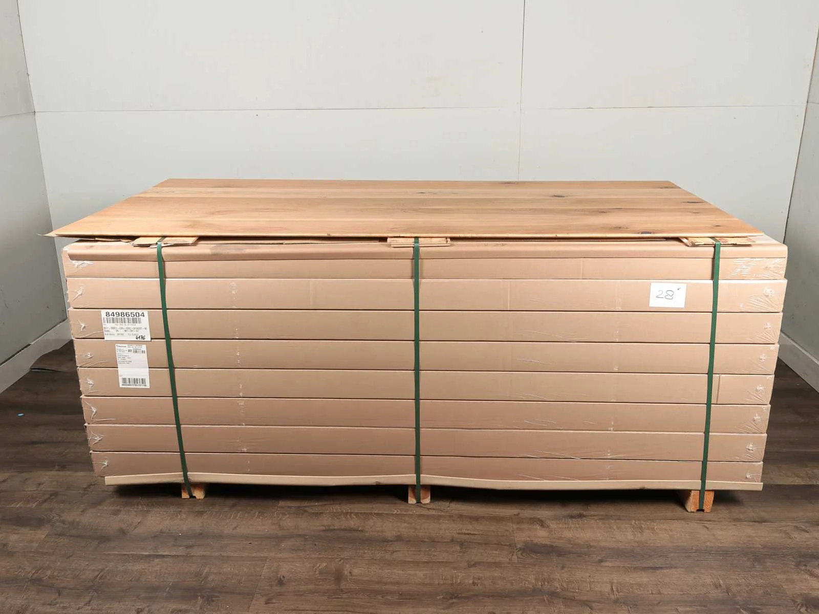 Gemakkelijk te leggen wegens 5G clicksysteem, geschikt voor alle soorten vloer en koelverwarmingen, kwaliteits parketvloer, vloer is van hoogwaardig Europees eiken hout, kant en klaar behandeld, dikte 14 mm, toplaag 3 mm, 35 pakken a 3,18 m2 Nee Merk: Ambiance Product type: Parket Oppervlakte: 111m² Geschikt voor vloerverwarming: Ja V-groef: Ja Afwerking: Mat gelakt, geborsteld, met v-groef Aantal m² per verpakking: 3.18m² Kleur: Trend oak wide 744 Gewicht: 910kg Lengte: 2200mm Breedte: 207mm Materiaal: Eiken multiplank