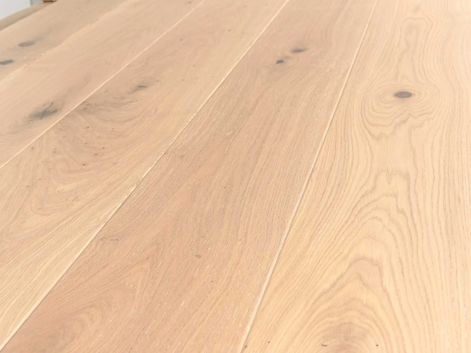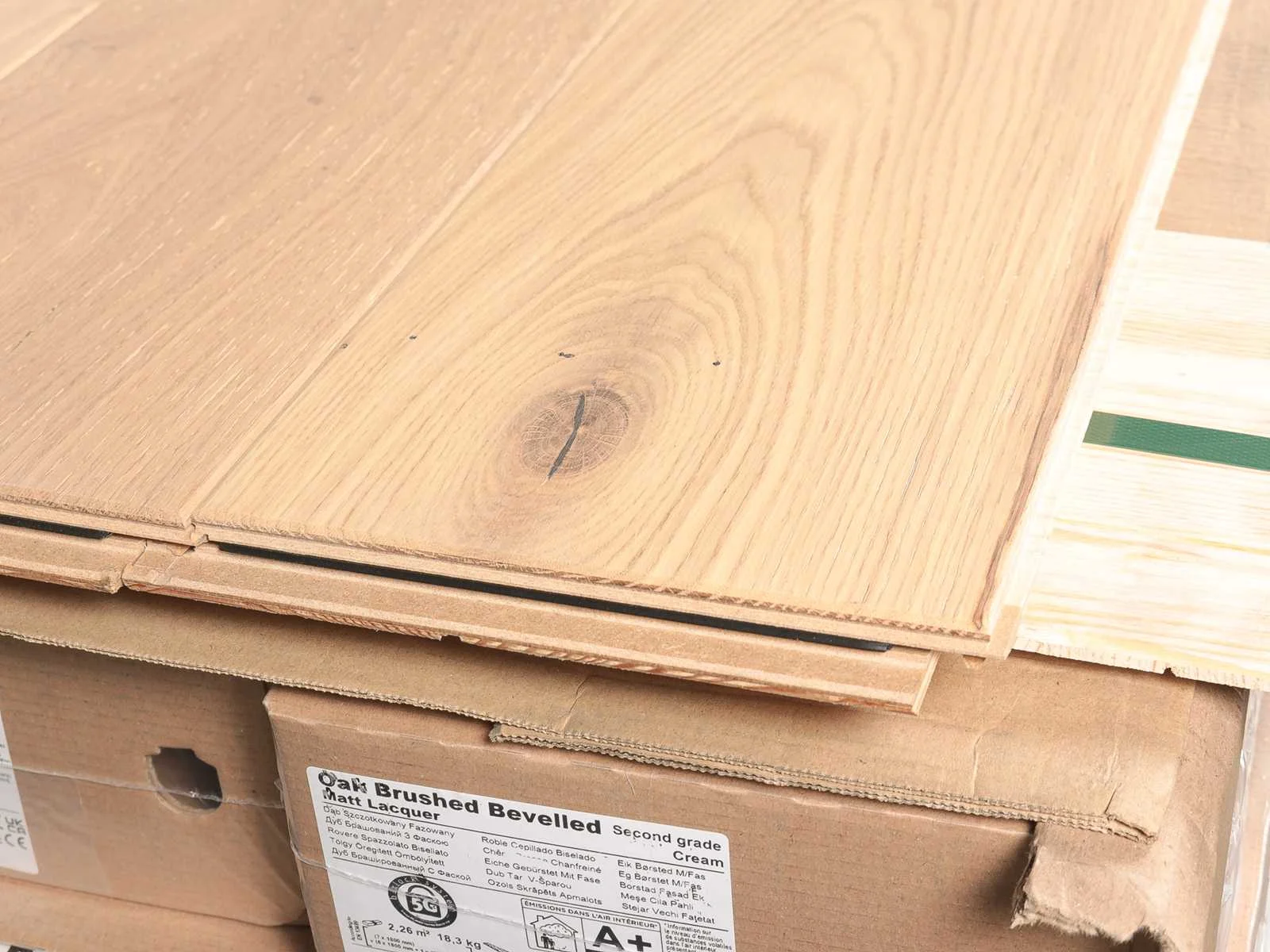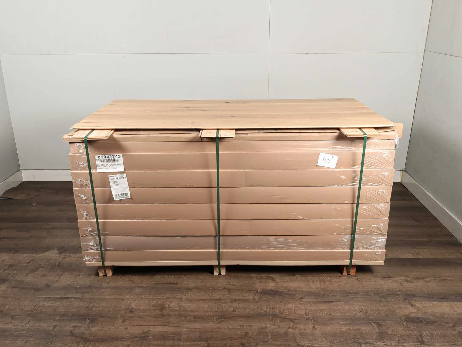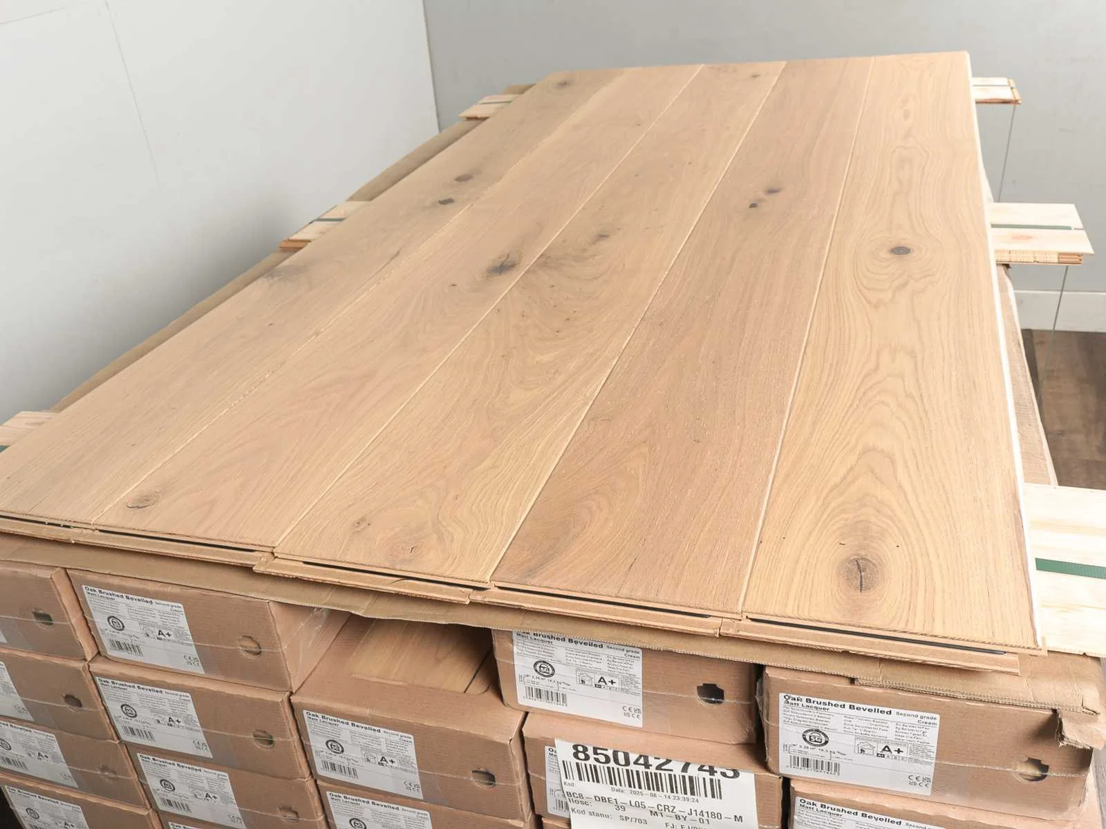 Gemakkelijk te leggen wegens 5G clicksysteem, geschikt voor alle soorten vloer en koelverwarmingen, kwaliteits parketvloer, vloer is van hoogwaardig Europees eiken hout, kant en klaar behandeld, dikte 14 mm, toplaag 3 mm, 38 pakken a 2,26 m2 Nee Merk: Ambiance Product type: Parket Oppervlakte: 85m² Geschikt voor vloerverwarming: Ja V-groef: Ja Afwerking: Mat gelakt, voelbaar structuur, met v-groef Aantal m² per verpakking: 2.26m² Kleur: Cream mat lacquer 462 Gewicht: 725kg Lengte: 1800mm Breedte: 180mm Materiaal: Eiken multiplank