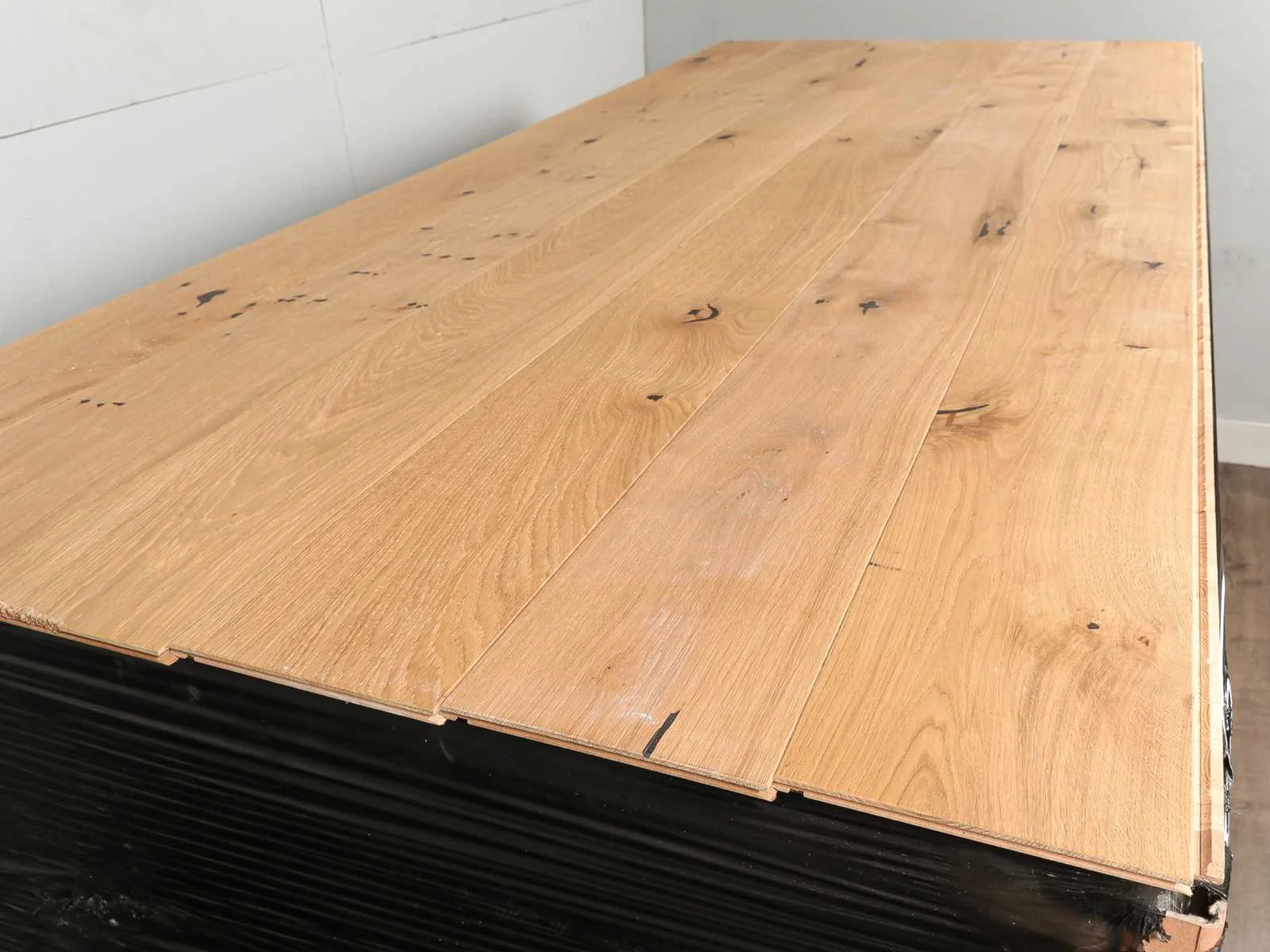 Gemakkelijk te leggen wegens 5G clicksysteem, geschikt voor alle soorten vloer en koelverwarmingen, kwaliteits parketvloer, vloer is van hoogwaardig Europees eiken hout, kant en klaar behandeld, dikte 14 mm, toplaag 3 mm, 12 pakken a 2,38 m2 Nee Merk: Ambiance Product type: Parket Oppervlakte: 28m² Geschikt voor vloerverwarming: Ja V-groef: Ja Afwerking: Geolied, geoxideerd, geborsteld, eiken toplaag, met v-groef Aantal m² per verpakking: 2.38m² Kleur: Raw effect 806 Gewicht: 225kg Lengte: 2200mm Breedte: 155mm Materiaal: Eiken multiplank