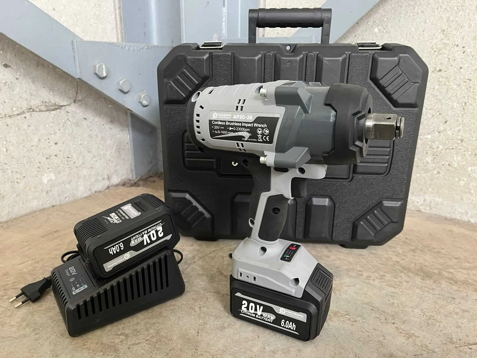 <li><b>Accu slagmoersleutel</b></li> <li><b>Koppel:</b> 1600 Nm</li> <li><b>Voltage:</b> 20 volt</li> <li><b>Accu:</b> 6.0 Ah accu</li> <li><b>dopmaat:</b>geschikt voor 3/4” doppen</li> <li><b>Toeren per minuut:</b> 1600 RPM</li> <li><b>slagen per minuut:</b> 2300 BPM</li> <li><b>Aantal accu’s:</b> 2 accu’s</li> <li><b>Acculader:</b> Acculader inbegrepen</li> <li><b>Staat:</b> Ongebruikt, in de originele verpakking</li> Nee Merk: Stahlgruppe
