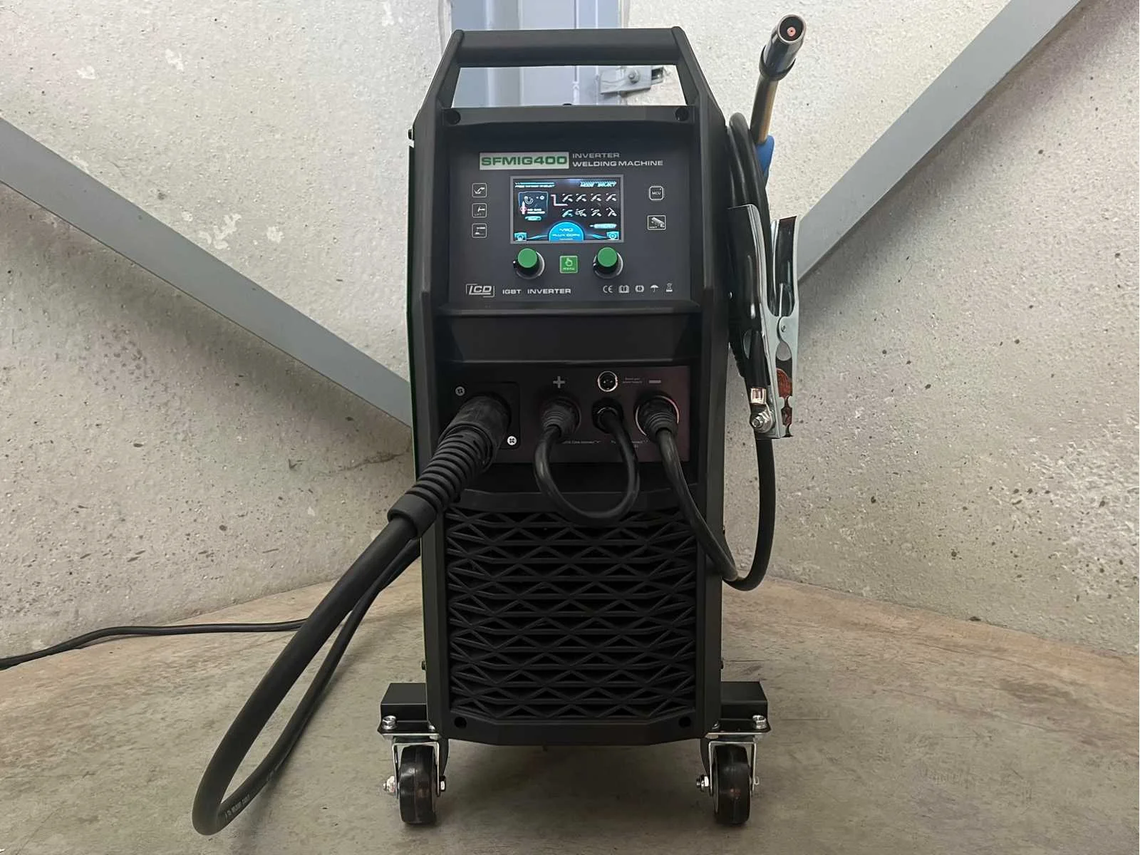 <li><b>multi-proces lasmachine</b></li> <li><b>functies:</b> MIG/MAG, TIG & MMA</li> <li><b>regelbare stroomsterkte:</b> 30-400 ampère</li> <li><b>inschakelduur:</b> 100% inschakelduur bij 221 Ampère</li> <li><b>voorzien van:</b> LCD kleurendisplay</li> <li><b>voorzien van:</b> draadaanvoer unit</li> <li><b>inclusief:</b> MIG/MAG-toorts</li> <li><b>inclusief:</b> MMA-toorts</li> <li><b>inclusief:</b> elektronische gasregelaar</li> <li><b>aansluiting:</b> 380 volt (stekker niet inbegrepen)</li> <li><b>technologie:</b> IGBT-technologie</li> <li><b>beveiliging:</b> zekeringautomaat</li> <li><b>inclusief:</b> handleiding</li> <li><b>staat:</b> ongebruikt, reeds gemonteerd, verpakking en alle accessoires aanwezig</li> Nee Merk: Stahlfest Type: SFMIG400