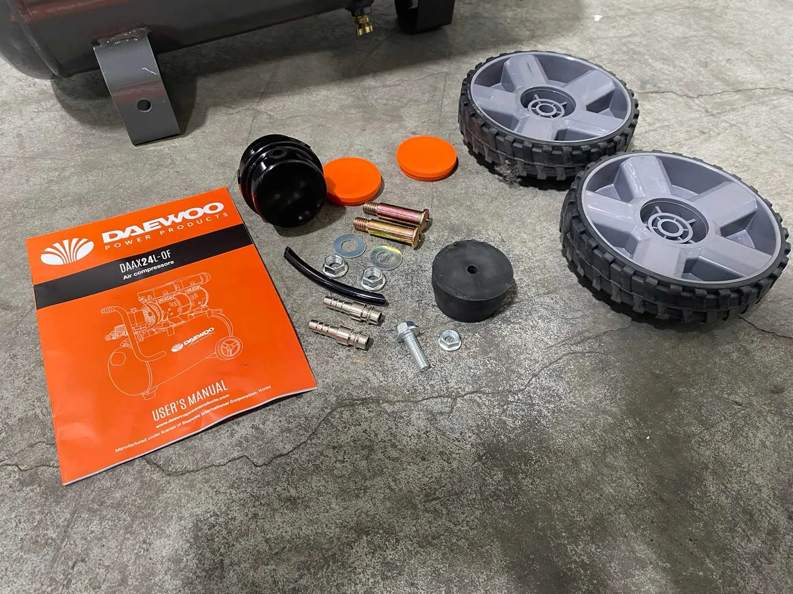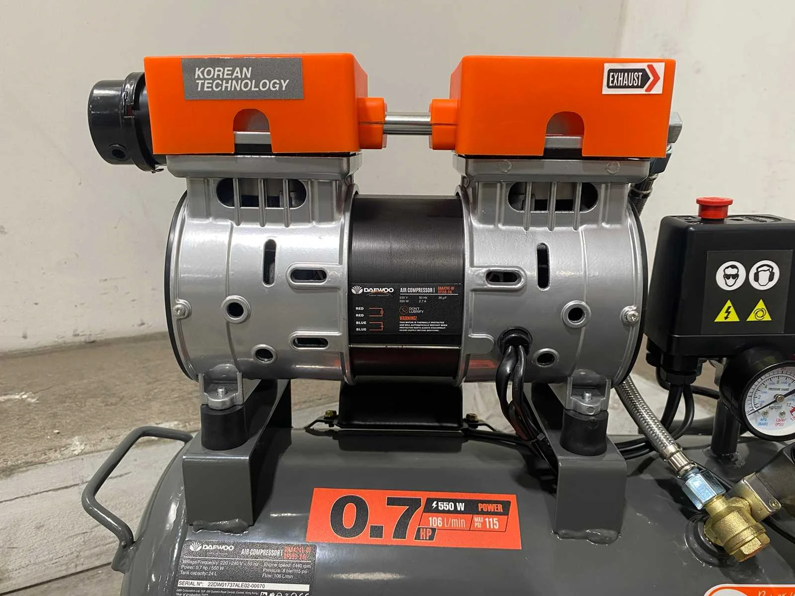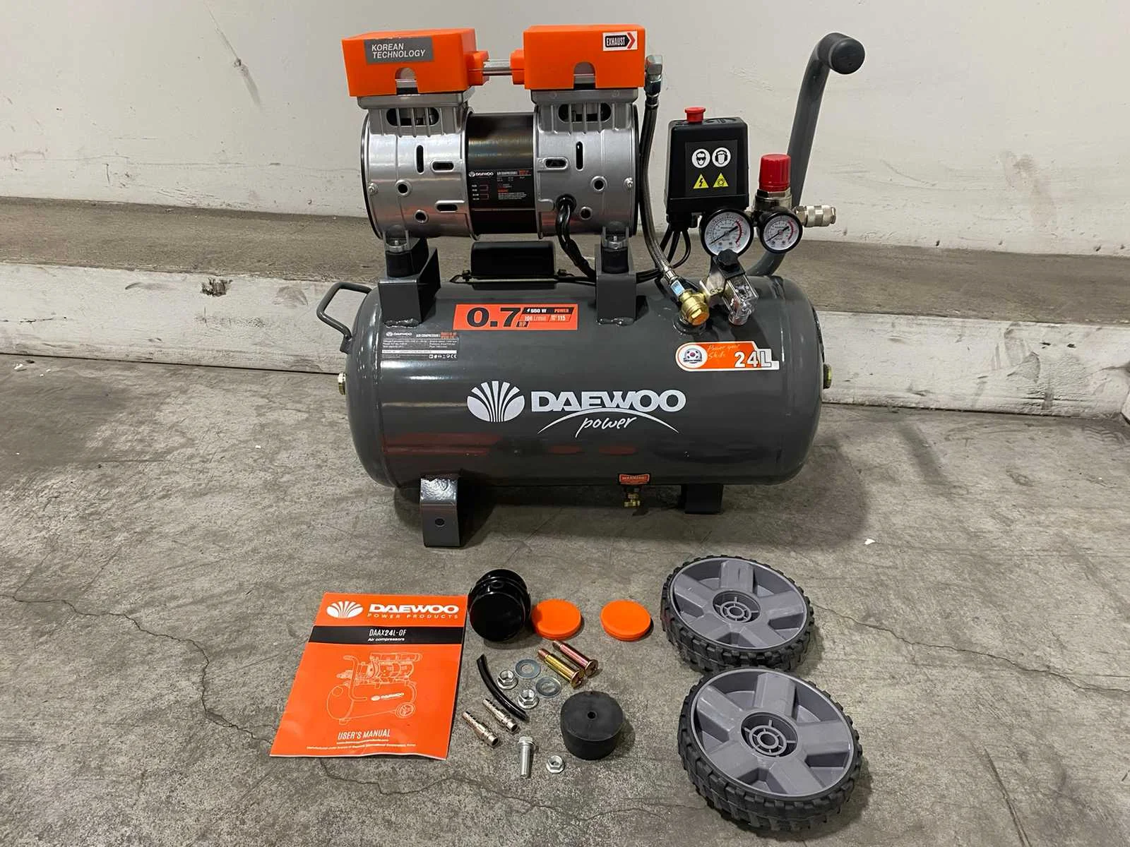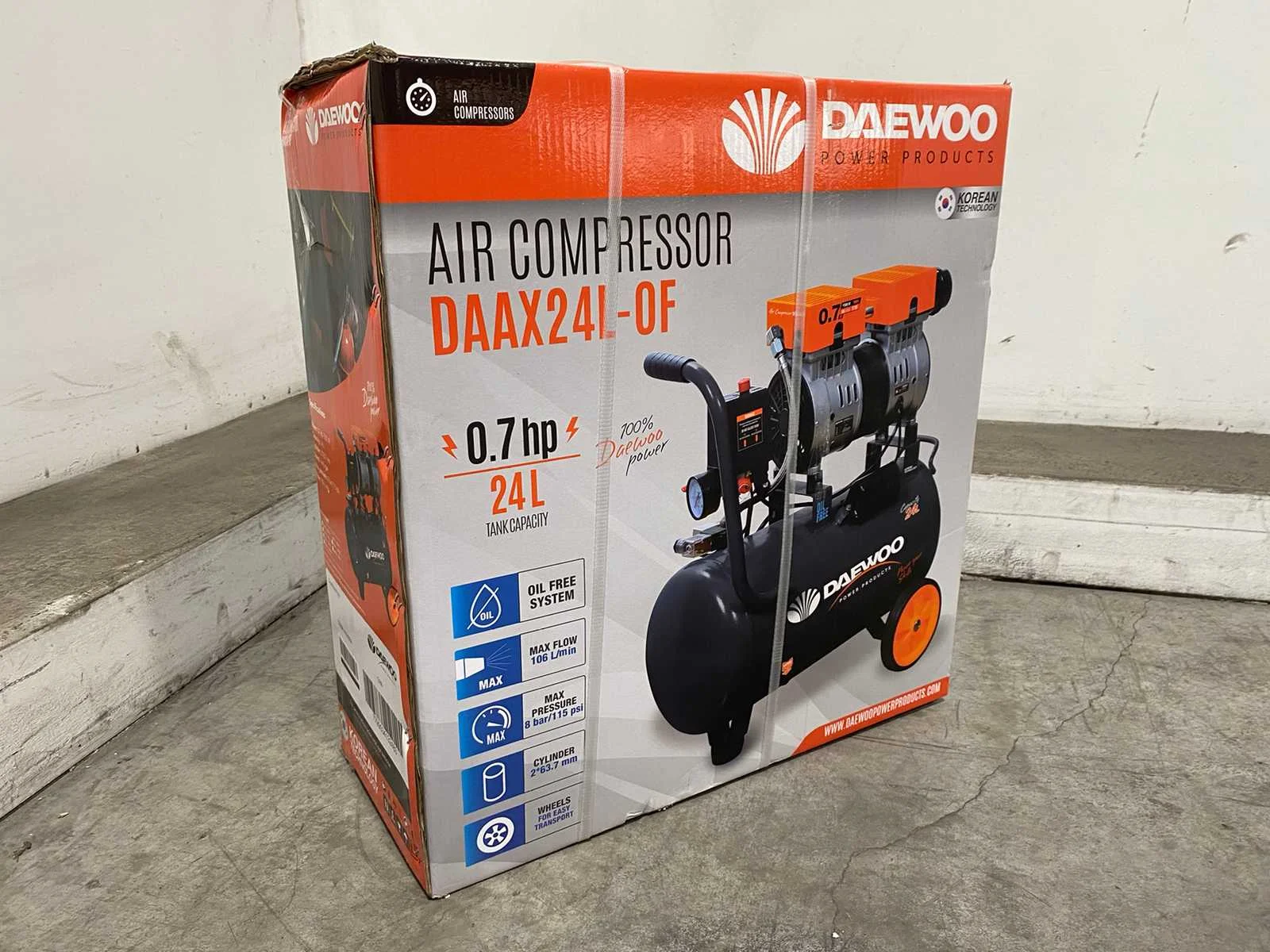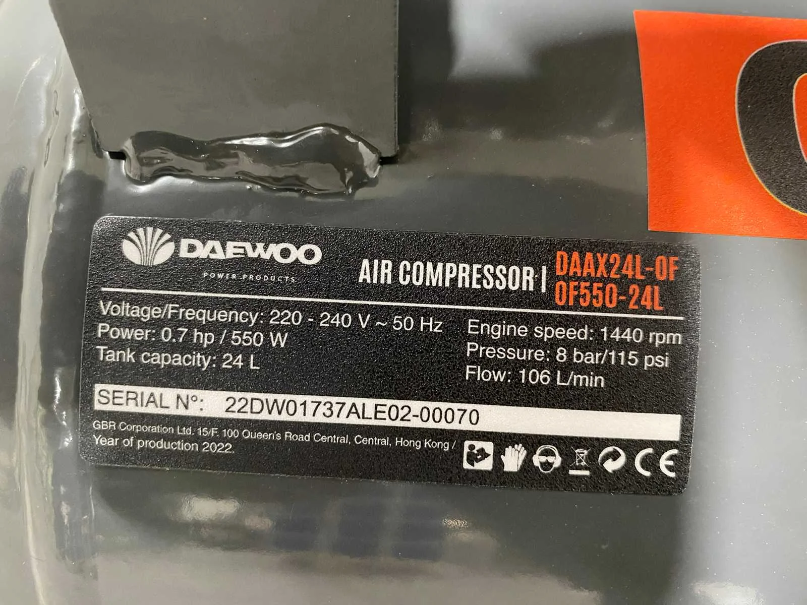 <li><b>olievrije luchtcompressor</b></li> <li><b>merk:</b> Daewoo</li> <li><b>type:</b> DAAX24L-OF</li> <li><b>buffertank:</b> 24 liter buffertank</li> <li><b>luchtstroom:</b> 106 liter per minuut</li> <li><b>capaciteit:</b> 8 bar / 115 psi</li> <li><b>motorvermogen:</b> 0.7 pk</li> <li><b>aansluiting:</b> 230 volt</li> <li><b>handleiding:</b> inclusief handleiding</li> <li><b>staat:</b> ongebruikt, in de originele verpakking</li> Nee Merk: Daewoo Type: DAAX24L-OF