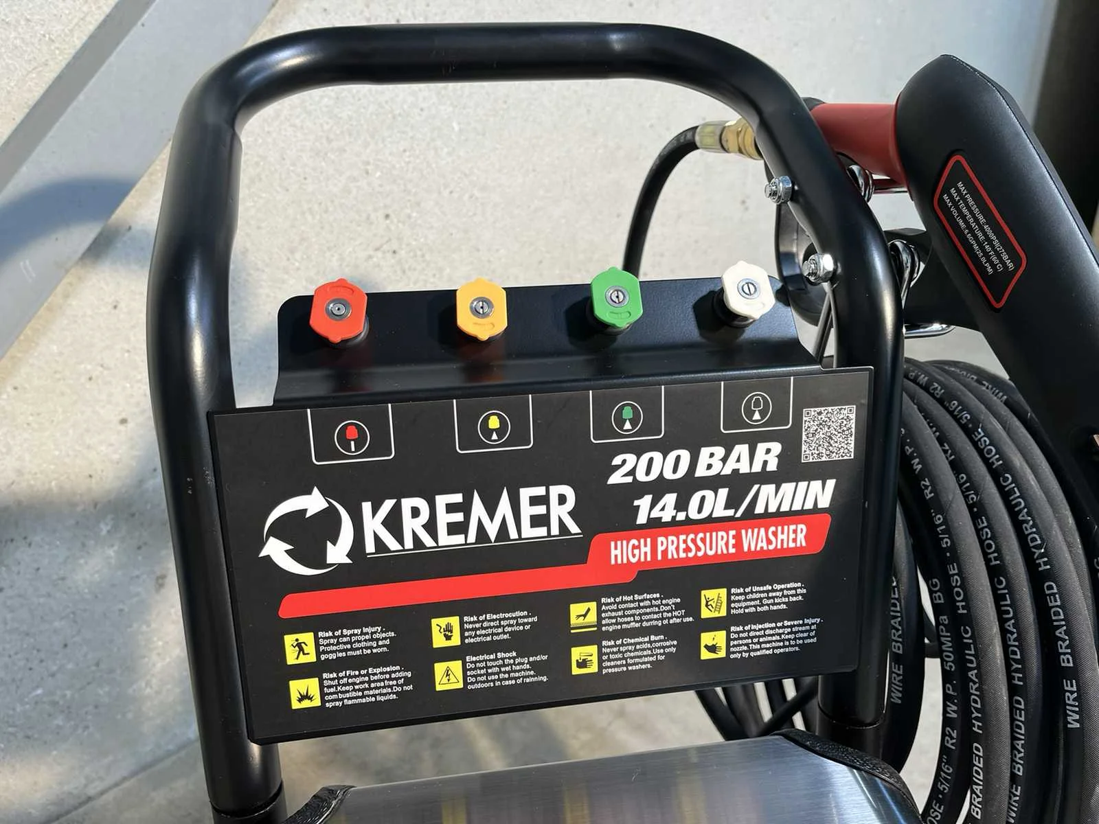 <li><strong>Merk:</strong> Kremer</li> <li><strong>Type:</strong> KR2900-4</li> <li><strong>Werkdruk:</strong> 200 bar</li> <li><strong>Hogedrukslang:</strong> 10 meter slang met snelkoppelingen</li> <li><strong>Capaciteit:</strong> 840 liter per uur</li> <li><strong>Motor:</strong> driefasige elektromotor</li> <li><strong>Stekker:</strong> 400 Volt / 16A (CEE 3P+N+E)</li> <li><strong>Vermogen:</strong> 4 kW</li> <li><strong>Toerental:</strong> 1450 toeren per minuut</li> <li><strong>Mondstukken:</strong> 4 mondstukken</li> <li><strong>Voorzien van:</strong> RVS behuizing</li> <li><strong>Staat:</strong> ongebruikt, in de originele verpakking</li> Nee Merk: Kremer Type: KR2900-4