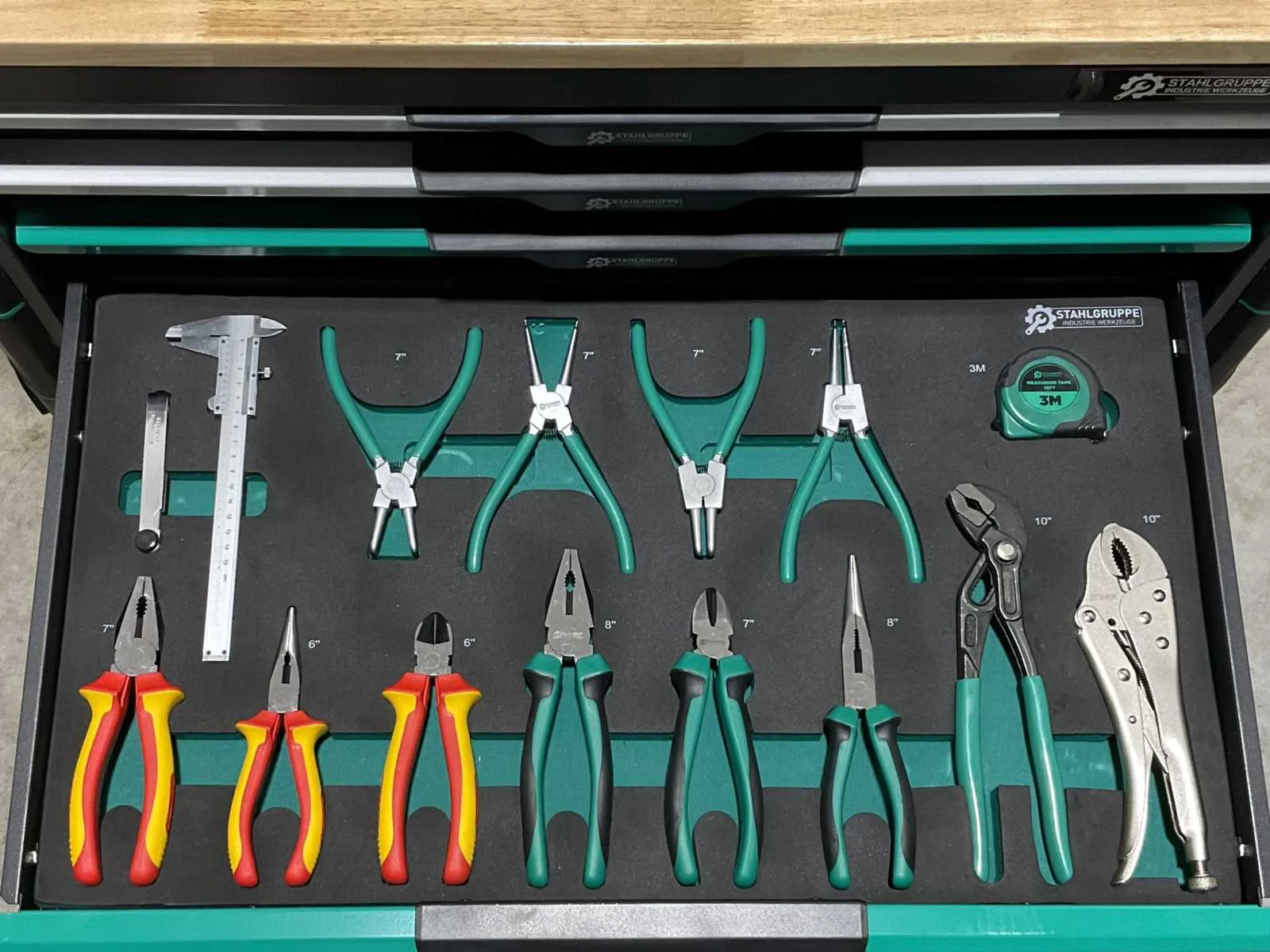 <li><strong>Merk:</strong> Stahlgruppe</li> <li><strong>Aantal laden:</strong> 7 laden</li> <li><strong>Aantal gevulde laden:</strong> 6 gevulde laden</li> <li><strong>Gereedschap:</strong> Chrome Vanadium gereedschap</li> <li><strong>Inhoud:</strong> <ul> <li>3 dopsleutelsets (1/2”, 3/8” & 1/4”)</li> <li>ring- steeksleutelset (6-32 mm)</li> <li>ringratel-steeksleutelset (8-19 mm)</li> <li>diverse tangen (12 stuks)</li> <li>schuifmaat (0-150 mm * 0,02 mm)</li> <li>schroevendraaiers (21 stuks)</li> <li>T-greep Torxsleutels (T10-T45)</li> <li>T-greep dopsleutels (8-14 mm)</li> <li>T-greep Inbussleutels (2-8mm)</li> <li>krachtdoppen (10-32 mm)</li> <li>momentsleutel (0-300 Nm)</li> <li>enzovoort...</li> </ul> </li> <li><strong>Afmetingen:</strong> 93 x 45 x 97 cm</li> <li><strong>Staat:</strong> ongebruikt, in de originele verpakking</li> No Merk: Stahlgruppe Type: SG36