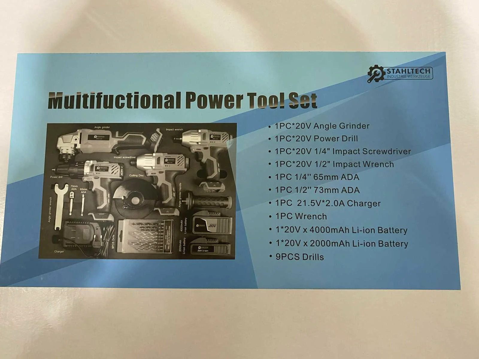 <li><b>4-delige set accu gereedschappen</b></li> <li><b>Bestaande uit:</b> <ul> <li>Accu boormachine</li> <li>Accu schroefmachine</li> <li>Accu slagmoersleutel</li> <li>Accu haakse slijper</li> </ul> </li> <li><b>Inclusief:</b> Accu’s: <ul> <li>1 x lithium-ion accu 20 volt, 2000 mAh</li> <li>1 x lithium-ion accu 20 volt, 4000 mAh</li> </ul> </li> <li><b>Inclusief:</b> acculader</li> <li><b>Inclusief:</b> 9-delige borenset</li> <li><b>Inclusief:</b> 5 slijpschijven</li> <li><b>Inclusief:</b> toebehoren</li> <li><b>Goed om te weten:</b> foam inlay voor de laden van een gereedschapswagen</li> <li><b>Afmeting:</b> 52,5 x 38,5 cm</li> <li><b>Staat:</b> Ongebruikt, in de originele verpakking</li> Nee Merk: Stahlgruppe Accu lader: true Accuspanning: 20V Aantal accu's: 2