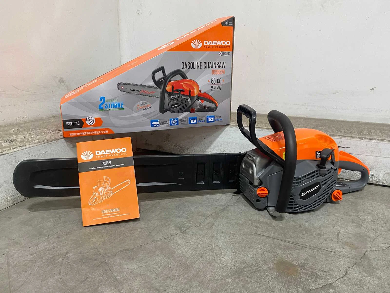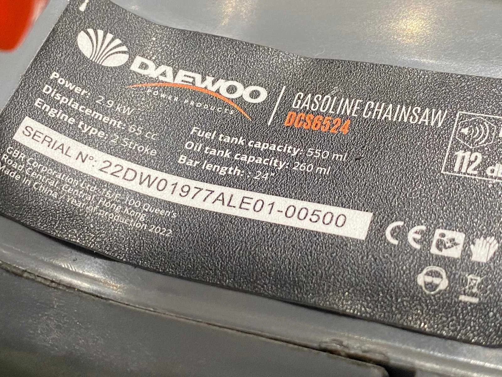 <li><strong>Merk:</strong> Daewoo</li> <li><strong>Type:</strong> DCS6524</li> <li><strong>Motorvermogen:</strong> 2.9 kW</li> <li><strong>Motorinhoud:</strong> 65 cc</li> <li><strong>Brandstof:</strong> 2-takt benzine</li> <li><strong>Voorzien van:</strong> automatische kettingsmering</li> <li><strong>Lengte zaagblad:</strong> 600 mm / 24 inch</li> <li><strong>Staat:</strong> ongebruikt, in de originele verpakking</li> Nee Merk: Daewoo Type: DCS6524