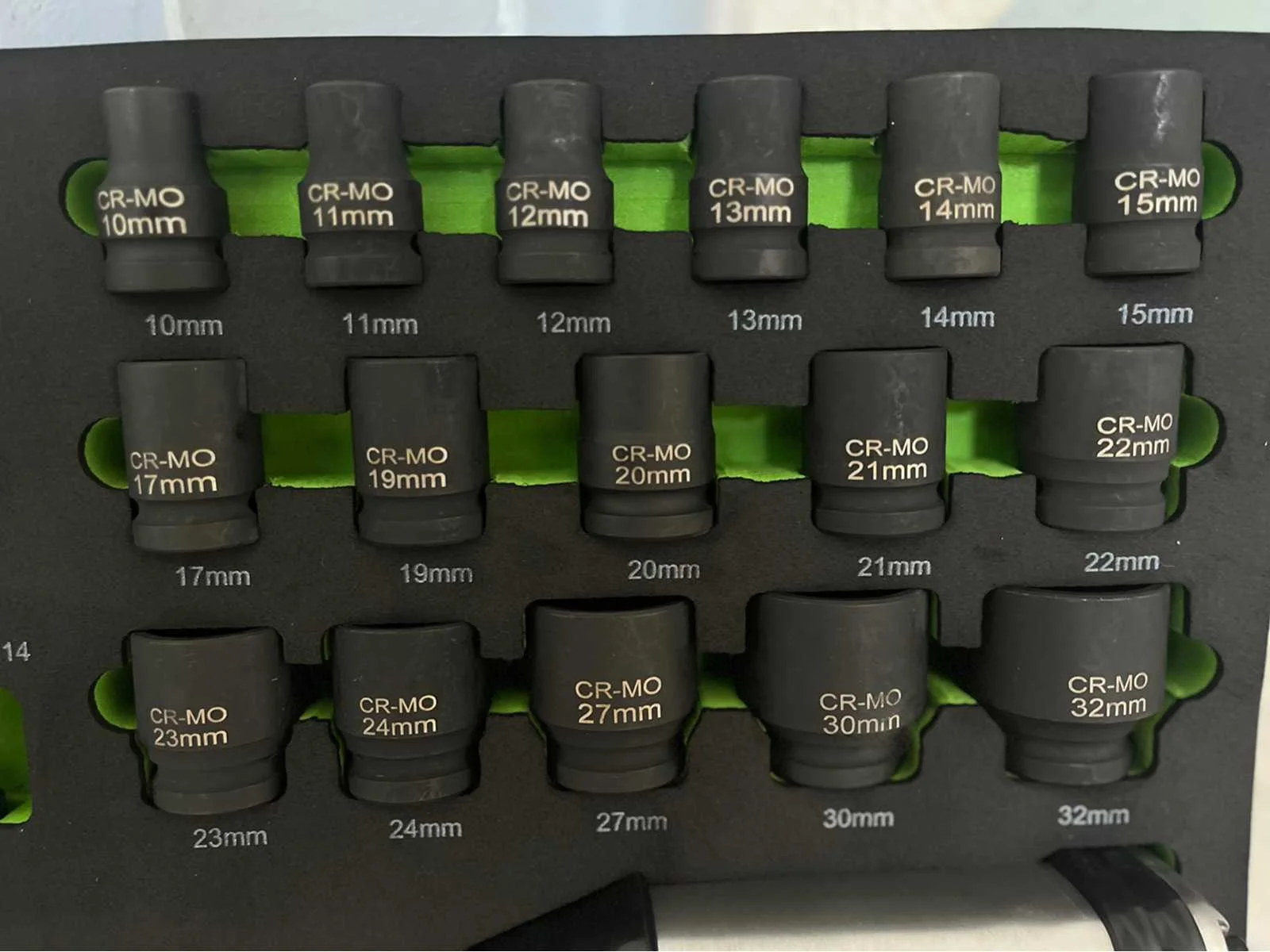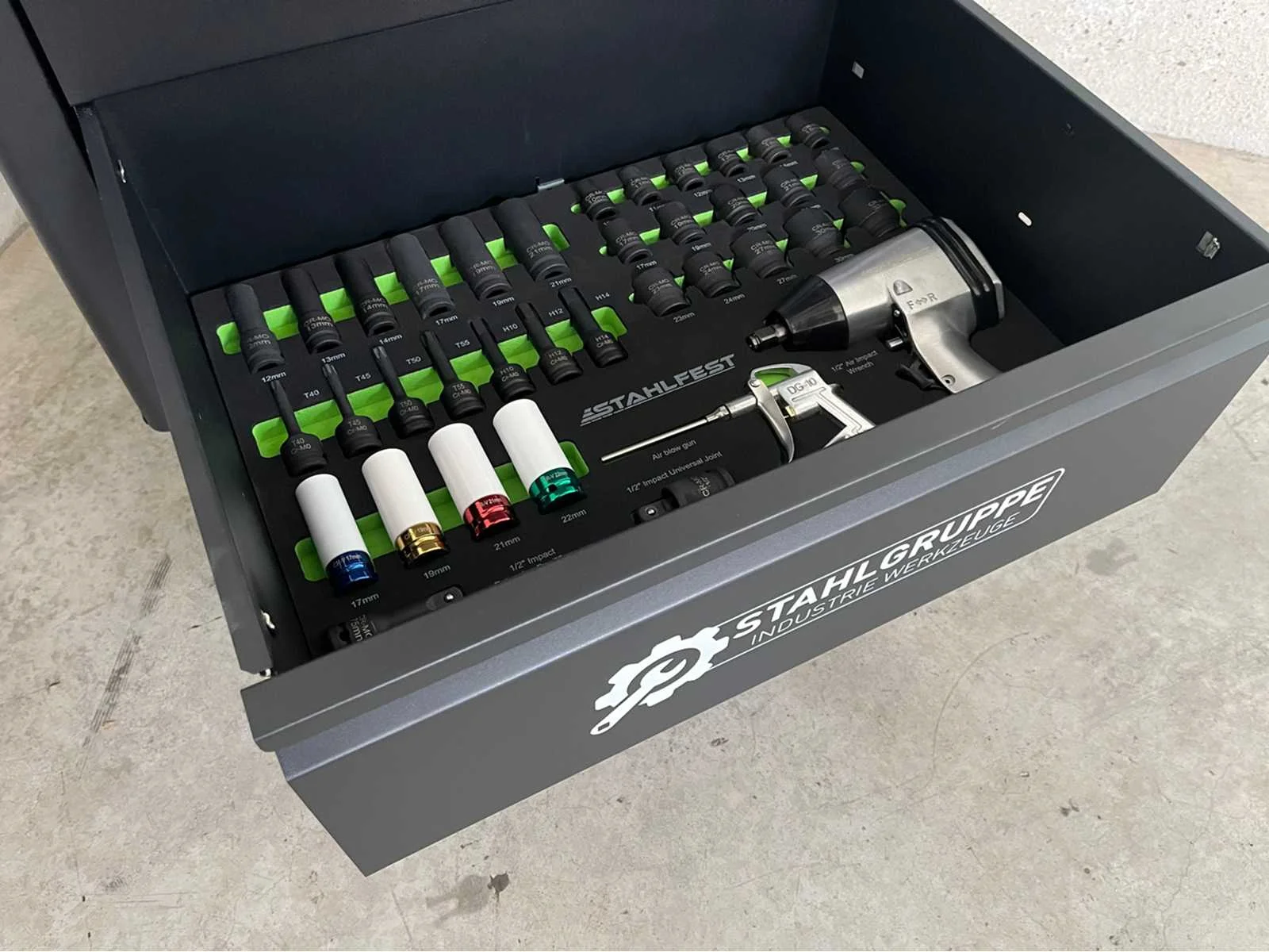 <li><b>pneumatische slagmoersleutel set</b></li> <li><b>Bestaande uit:</b> <ul> <li>pneumatische slagmoersleutel</li> <li>16 stuks Cr-Mo 6-kant doppen (10-32 mm)</li> <li>6 stuks Cr-Mo 6-kant doppen extra lang(12-21 mm)</li> <li>4 stuks Torx Cr-Mo doppen (T40-T45-T50-T55)</li> <li>3 stuks inbus Cr-Mo doppen (H10-H12-H14)</li> <li>4 stuks Cr-V 6-kant doppen (17-19-21-22)</li> <li>3 stuks Cr-Mo verlengstukken (75-125-250 mm)</li> <li> Cr-Mo kniestuk</li> <li> Cr-Mo verloopstuk (3/8”Mx1/2”F)</li> <li>persluchtpistool met accessoires</li> </ul> </li> <li><b>Goed om te weten:</b> foam inlay voor de laden van een gereedschapswagen</li> <li><b>Afmeting:</b> 52,5 x 39 cm</li> <li><b>Staat:</b> Ongebruikt, in de originele verpakking</li> Nee Accu lader: true Accuspanning: 20V Aantal accu's: 2