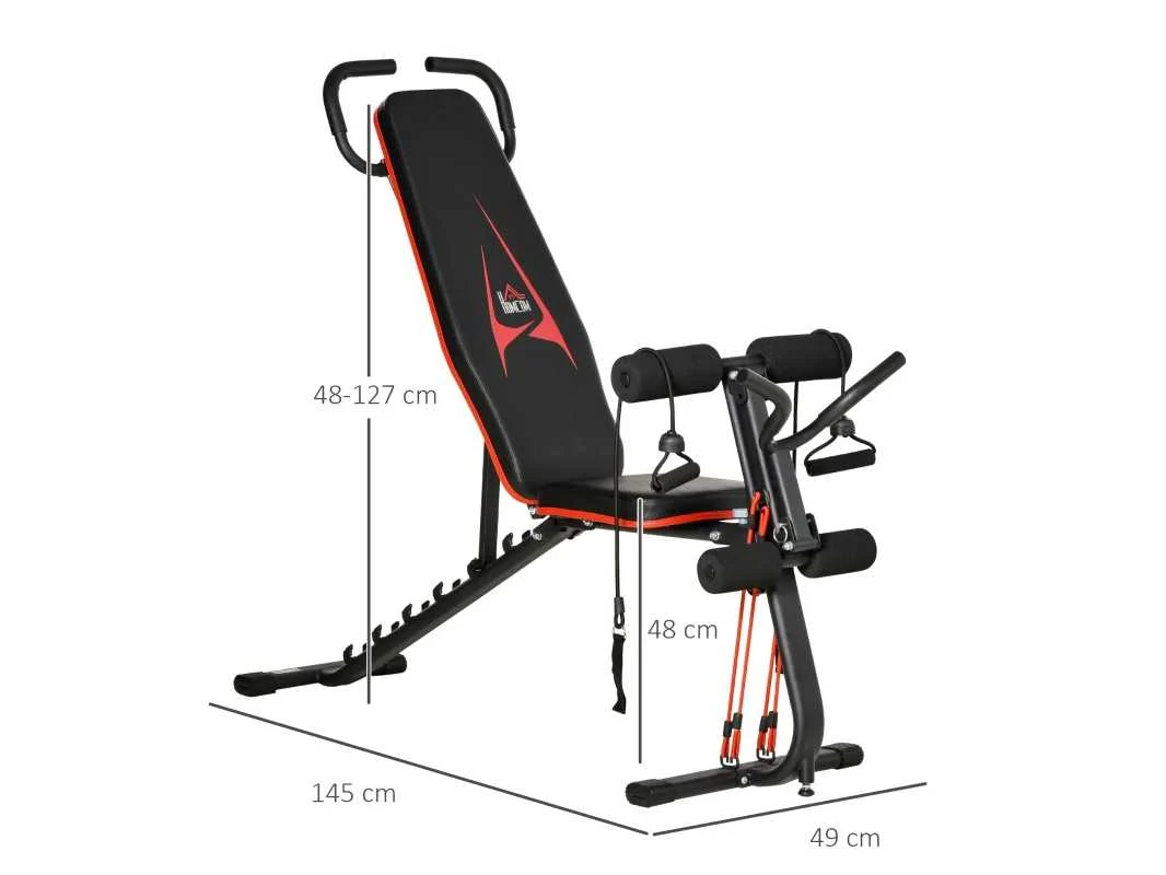 Specificaties: - Kleur: Zwart - Materiaal: staal, imitatieleer - Totale afmetingen: 145L x 49B x 48-127H cm - Afmetingen zitting: 33L x 30W cm - Afmetingen rugleuning: 78L x 28B cm - Verstelbaar rugleuningkussen: 100°, 120°, 130°, 145°, 160°, 180° - Aanpassing enkelkussen: 48-70 cm vanaf de vloer - Draagvermogen: 150 kg Non